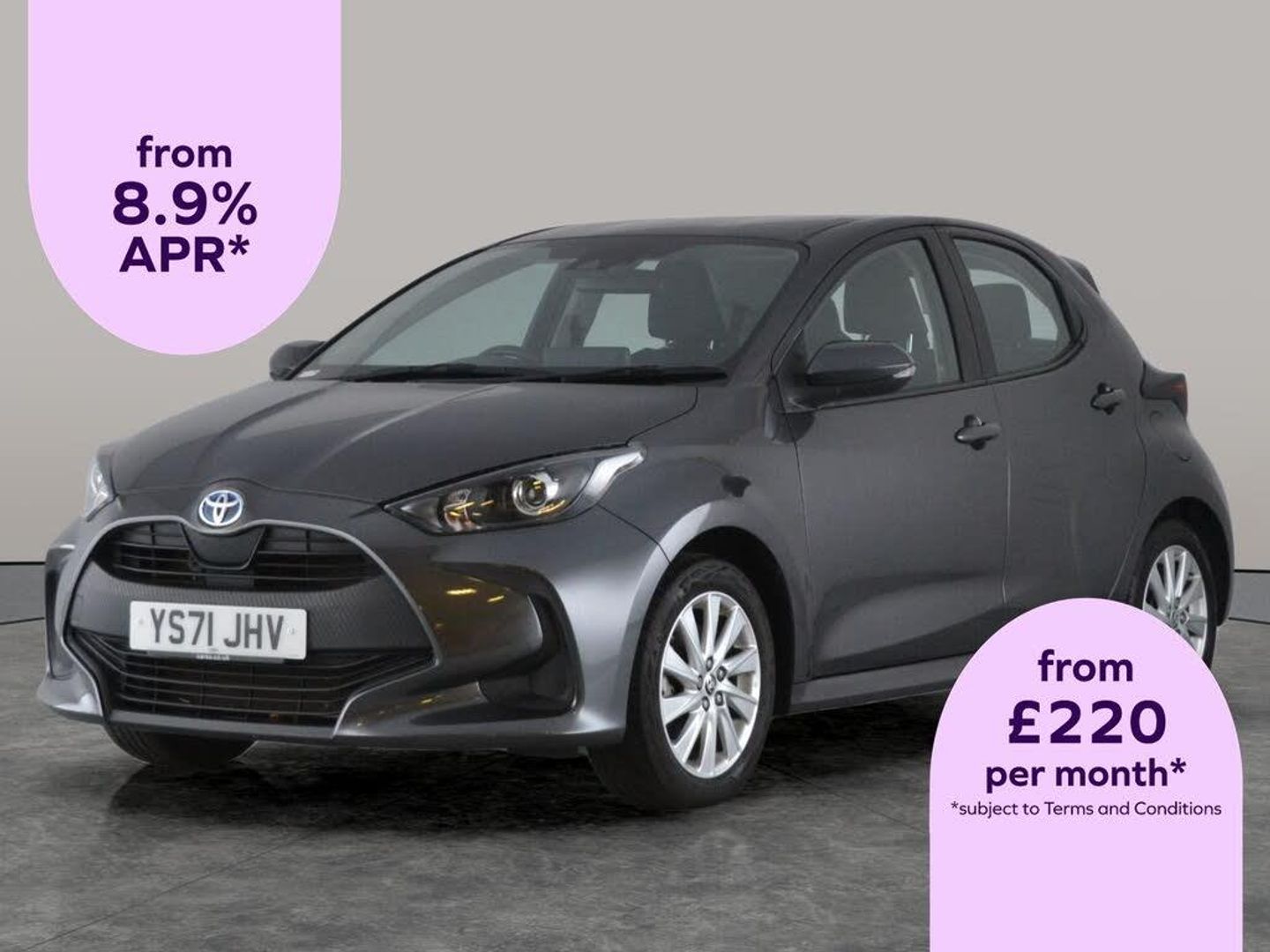 Discover the Toyota Yaris Hybrid in stylish grey, perfect for urban adventures. Enjoy optional adaptive cruise control for stress-free driving, a reversing camera for easy parking, and digital climate control for year-round comfort. Stay connected with Bluetooth audio streaming and experience added safety with lane trace assist. Eye-catching LED daytime running lights and sleek 16in alloy wheels complete the package, making this automatic Yaris a fantastic choice for any journey. 2 services recorded, last serviced on 03/07/2025 at 18,503 miles. MOT to 18/01/2026. Visit our website for service history, online valuation, full vehicle specification plus multiple images. This vehicle is VAT qualifying. Any feature/option specified here is from 3rd party data. We cannot guarantee the accuracy of any specification supplied by a 3rd party. We recommend that you physically check the specification of the vehicle on site prior to purchase. This information does not form part of the buying contract. Terms & Conditions apply. We have over 2,000 cars available from our 10 national branches, check our website to see all our stock. Our Trustpilot rating is 4.4/5 with over 9,000 reviews.