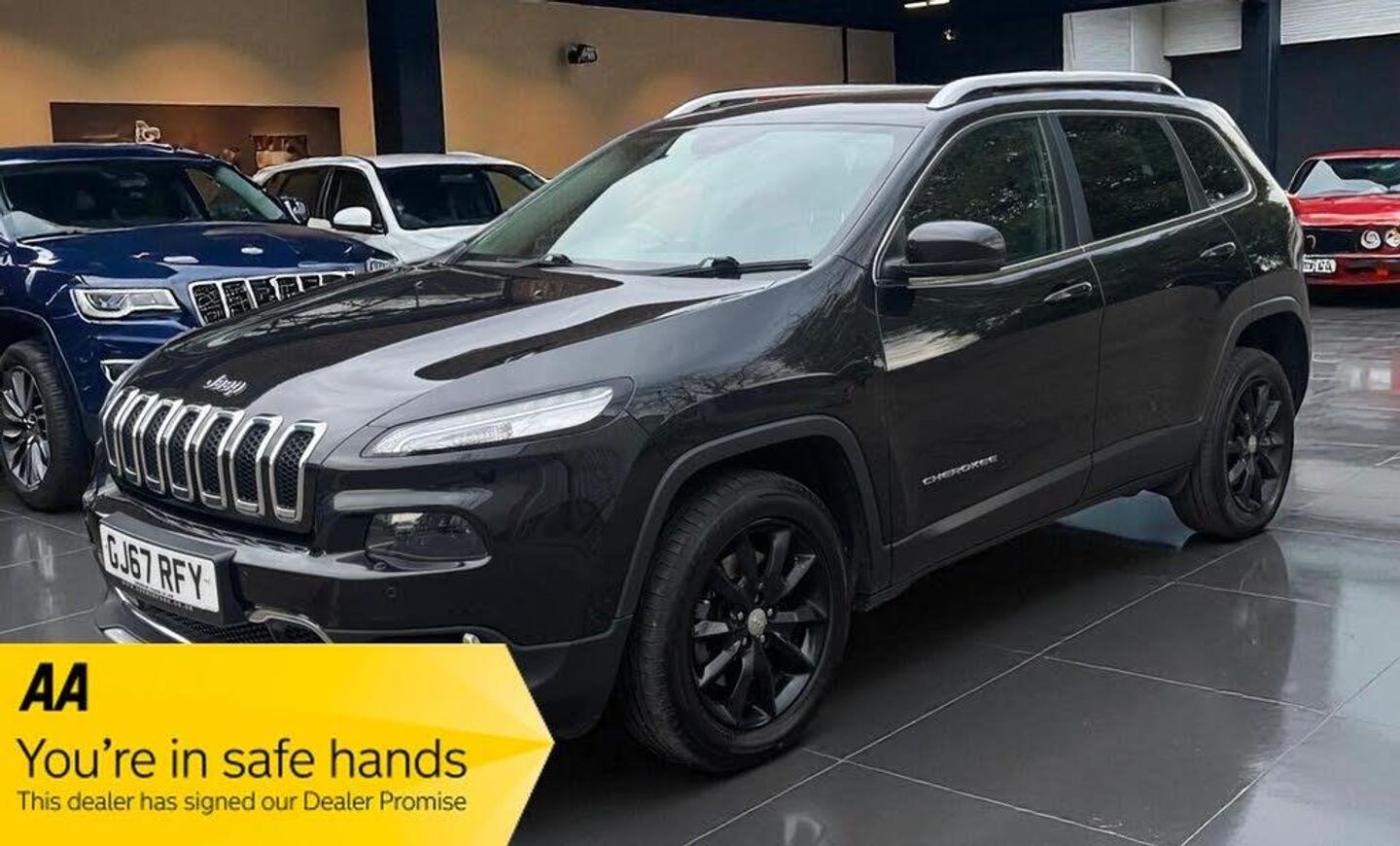 12V Auxiliary Power Outlet - Front, 12V Cargo and Auxiliary Power Outlet, 18in Alloy Wheels - Polished Aluminium, 7 Airbags - Next Generation, 8 Way Power Passenger Seat with 4-Way Lumbar Support, Alarm - Thatcham Category 1, Ambient LED Interior Lighting, Anti Lock 4 Wheels Disc Brake - ABS, Armrest - Rear with Cupholders, Audio Jack Input, Automatic Air Conditioning Dual Zone with Humidity Sensor, Body Coloured Door Handles, Body Coloured Shark Fin Antenna, Brake Stability Control, Cargo Net, Cargo Tie Down Loops, Child Seat Anchor System-Latch Ready - ISOFIX, Chrome Side Roof Rails, Chrome Window Surrounds, Cigar Lighter, Courtesy Lamp - Rear, Cruise Control, Deep Tint Sunscreen Glass, Door Mirrors - Body Coloured, EARS - Emergency Accident Response System, ESC - Electronic Stability Control, Electric Park Brake, Electric Power Steering, Electric Windows - Front One Touch, Electronic Vehicle Information Centre, Floor Mats - Front and Rear, Front Fog Lights with Cornering Lights, Front Overhead Map Lamps, Front and Rear Climate Control Outlets, Grille - Chrome Surrounds, Headlights - Automatic Levelling System, Headlights - Automatic On, Headlights - Black Bezels, High Intensity Discharge Headlamps - HID Bi-Xenon with Headlamp Washer, Hill Start Assist, Illuminated Front Cupholders, Jeep Active Drive I, Jeep Cargo Management System, Keyless Enter-N-Go, LED Taillamps and LED Daytime Running Headlamps, Leather Wrapped Automatic Gear Knob, Leather Wrapped Steering Wheel, Limited Trim Interior Accents, Luggage Compartment - Light, Microphone in Rear View Mirror, Parcel Shelf Cover, Park Assist Pack, ParkSense Front and Rear Park Assist with Rear Stop, ParkView Rear Back Up Camera, Personal Memory Settings for Radio - Driver Seat - Mirrors And Heating-Ventilation-Climate Control, Power Locking Fuel Cap Door, Power Multi-Functional Fold Away Mirrors, Power Tailgate, Premium Instrument Cluster with 7in TFT Colour Display, Rain Sensitive Windscreen Wipers, Rear 60-40 Split Folding, Rear Power Outlet, Rear View Autodimming Mirror with Microphone, Remote SD Card Slot, Remote USB Port, Removable Ashtray, Safety and Security Pack, Seats - Drivers 4-Way Electric Lumbar Adjustment, Seats - Drivers 8-Way Electric Adjustment, Selec-Terrain System, Speed Sensitive Power Locks, Steering Column - Electronic Shaft Lock, Steering Column - Tilt and Telescopic, Steering Wheel - Mounted Audio Controls, Sun Visors - Sliding with Vanity Mirrors, Traction Control, Trailer Sway Damping - Control, Tyre Pressure Monitoring - Warning Display, Tyre Service Kit, UConnect Bluetooth, UConnect Phone with Voice Command, USB Port in Media Centre, Uconnect 8.4in DAB Radio with Touchscreen, Ventilated Front Seats, Spare Wheel - Full Size, Nappa Leather - Morocco Black