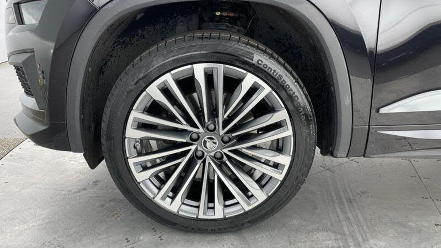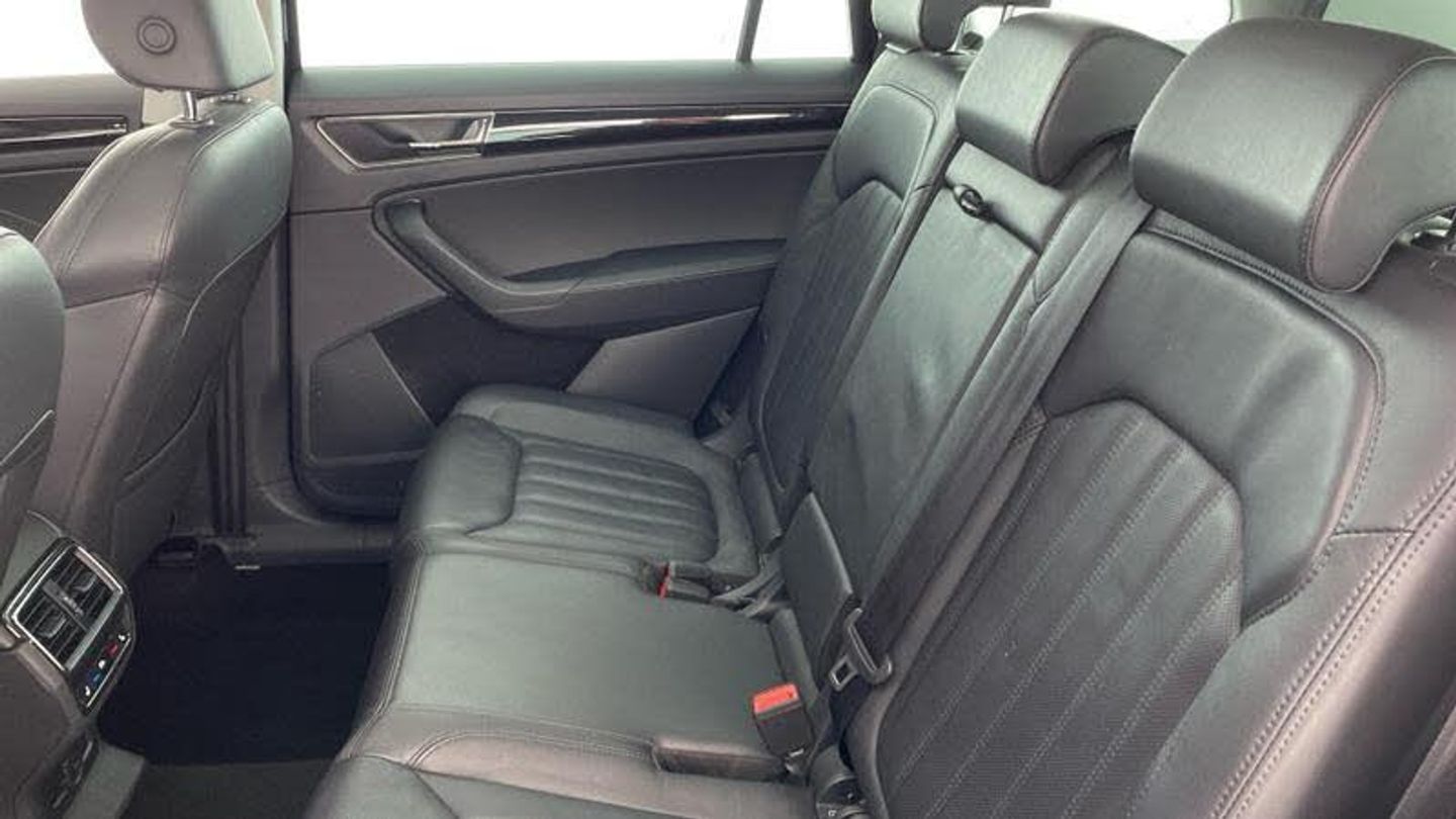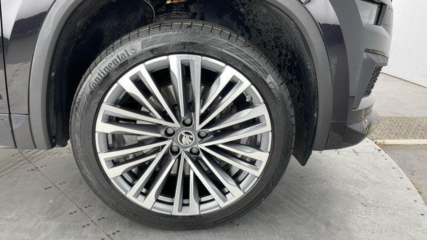 Leather upholstery with ventilated electrically adjustable front seats, massage function, memory function and lumbar support, Winter pack with heated front and rear seats - Kodiaq L&K, Electric front and rear windows, Rain and light sensors, Black wheel arch surrounds, Body colour bumpers, Body colour door mirrors and handles, Body colour door panels, Chrome front grille, Chrome roof rails with chrome window surround, Off-road style lower front bumper element, Rear side wing doors, Full LED matrix headlights with AFS (adaptive front light system), cornering function and AWL (all weather lighting system), Headlight washers, LED daytime running lights, LED rear fog light, Light assistant (coming/leaving home/tunnel light), Rear LED lights (high functionality) with welcome effect and dynamic indicators, Emergency rear braking signal, ESC (incl. ABS+MSR+ASR+EDS+HBA+DSR+RBS+MKB), Front assist with autonomous emergency braking, Hill hold control, Rear disc brakes, Area view, Blind spot detection system, Electric adjustable/heated/folding door mirrors, driver side auto dimming with boarding sports and memory function, Child locks on rear doors, Driver and front passenger airbag with knee airbag and front passenger airbag deactivation, Front side airbags with curtain airbags, Fuel cut off safety device, Height adjustable front 3 point seatbelts + pretensioners, Three point rear seat belts, Tyre pressure monitor, Bluetooth system, e call+, Smartlink wireless for apple carplay and wired for android auto, DAB Digital radio, ECO Stop/start function, Columbus satellite navigation with 9.2 touchscreen, integrated Wi-Fi, web radio, Virtual Cockpit - 10.25 digital display, Piano black decorative inserts, Plaquette L&K front fenders, 2 seat bench in 3rd row, 3 seat bench in 2nd row, 60:40 foldable rear seat with sliding adjustment and backrest angle adjustment, Height adjustable front headrests, Isofix child seat fittings in outer rear seats with top tether, Single front passenger seat, Three rear height adjustable headrests, 12V socket in boot, 4 foldable roof handles with rear coat hooks, Bottle holders in door panel in the 1.5 litre front and 1 litre rear, Cargo storage compartments, Chrome interior door handles, Covered storage compartment on driver side, Decorative door sill covers, Front centre armrest with storage compartment, cup holder and 12V socket, Grey stitching in front and rear armrests and door armrests + door inserts, Illuminated and cooled glovebox, Net programme in boot (1x horizontal Net, 2x vertical Nets), Rear centre armrest with cupholders, Small Bags on the inner sides of the front backrests, Umbrella in door panel, Front courtesy lights, Illuminated luggage com, [Audio and Communications]Wireless charging, Canton sound system, USB C Port x 2 in front centre console, [Drivers Assistance]Exterior temperature indicator, [Exterior]20in Alloy Wheels - Merope Anthracite, Heated rear window, Privacy glass, Extended rear spoiler with finlets in gloss black, Invisible tailpipe, L&K front and rear bumpers including lower rear chrome strip, Panoramic sunroof, Window control switches with black trim, [Illumination]Front fog lights, LED third brake light in rear spoiler, [Interior]Winter Pack - Heated Front and Rear Seats, Aero front windscreen wipers with intermittent function, Safety reflectors on front and rear doors, Without engine designation, Auto dimming rear view mirror, Safety vest holder in door, Tailgate unlocking from outside, Digital voice enhancement, Grey stitching in dashboard, Pollen filter, 2 rails with 2 hooks, Aluminium pedals, Chrome headlight control button, Coat hooks on B pillar, Front and rear door armrest with black adductor trim, Gear shift lever with chrome frame and black gloss insert, Manually adjustable steering column, Overhead glasses storage compartment, Sliding trunk cover, Ticket holder on A Pillar, Variable boot floor, [Performance]Progressive steering, Speed limiter, [Safety and Security]Aero