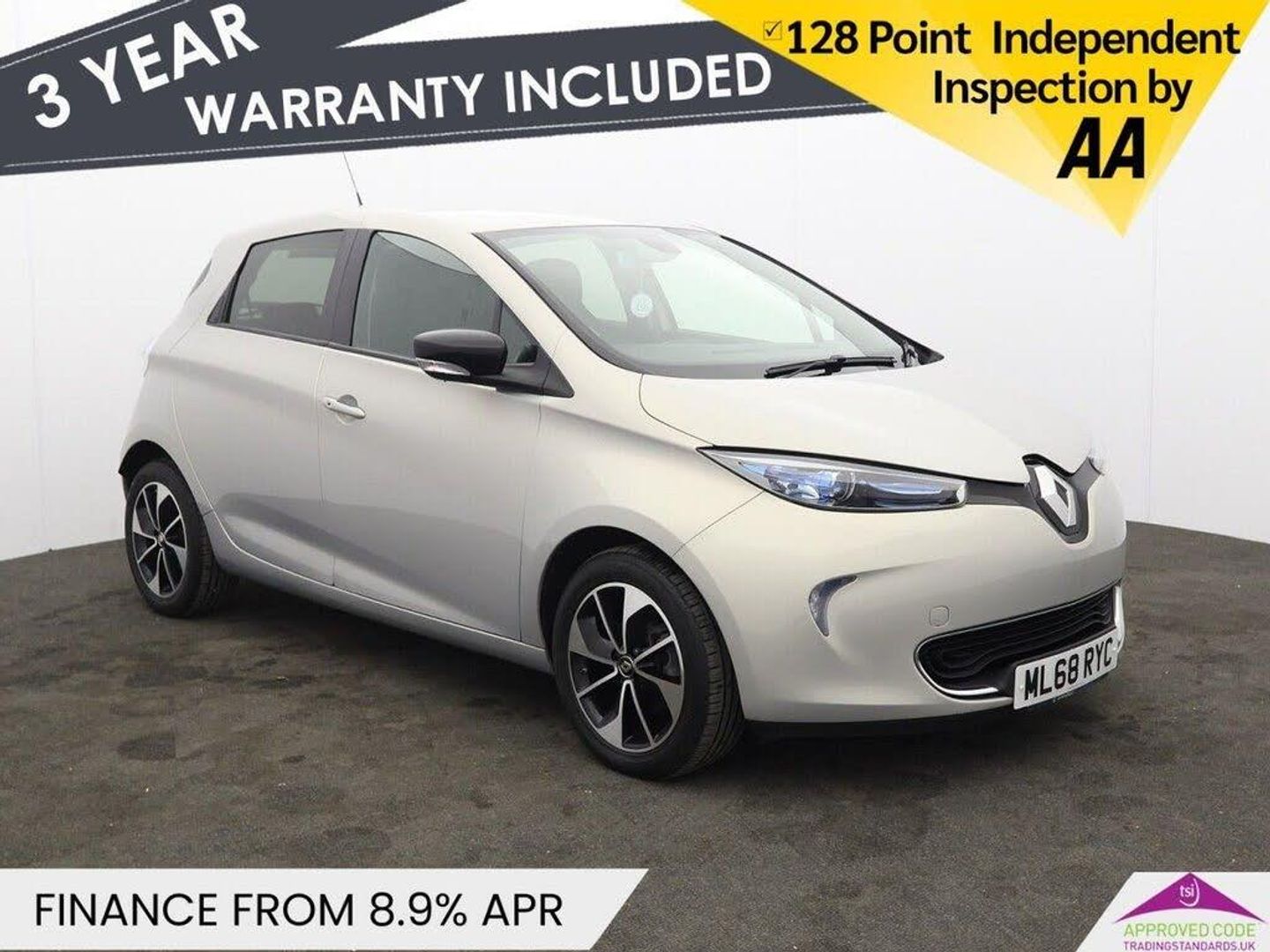 12V Power Socket, 4x35W Speakers with 3D Sound and FM-DAB Tuner, Discovery Pack, R-Link Voice Controlled TomTom Satellite Navigation with 7in Touchscreen Embedded Tablet, TCU - Telematic Control Unit, TFT Display Screen, USB Connection, Z.E Digital, 16in Alloy Wheels - Black Shadow, Bumpers - Body Coloured, Door Handles - Body Coloured - Front, Door Mirrors - Electrically Adjustable - Manual Folding and Heated, Door Mirrors - Gloss Black Housing, Electric Windows - Front with Anti Pinch, Electric Windows - Rear, Front Charger Socket - Charging Flap Under The Renault Logo, Front Grill - Black, Heated Rear Windscreen, Invisible Rear Door Handles, Side Indicators on Door Mirror, Windows - Privacy Glass on Rear, Z.E. Chrome Blue Headlight Surrounds, Z.E. Signature - Renault Logo, 2x Front Cupholders, Climate Control with Temperature and Humidity Sensors, Combined Filter, Door Handles - Interior Chrome, Foldable Rear Bench, Front Door Bottle Storage - 1.5 ltr, Gear Knob - Leather, Glovebox - 7 litres, Headrests - Integrated Front, Headrests - Outer Rear Height Adjustable, Portable Storage - Ash Tray, Range Optimizer, Seats - Rear One Piece Folding, Single Rear Fog Light, Steering Wheel - Height and Depth Adjustable, Steering Wheel - Leather, Storage - Front Centre Console, Storage - Front Seat Back Pockets - Passenger, Sun Visor - Driver and Passenger - Vanity Mirror, Z.E. Connect, Automatic Wipers with Rain Sensors and Front Lights, Chameleon Charger, Cloth - Black, Daytime Running Lights - LED, Electric Power Steering, Headlights - Bi-Halogen Optical Projector, Highland Grey, Speed Limiter, ABS with EBD - Electronic Brake Distribution and Emergency Brake Assist, Airbags - Driver, Airbags - Front Passenger, ASR - Traction Control, Automatic Hazard Warning Lights, Battery Charge Indicator, Cruise Control, CSV - Understeer Control, Deadlocking, Eco Mode Button, Econometer, Electronic Engine Immobiliser, ESC - Electronic Stability Control, Fixed 3 Point Seat Belt on Central Rear Seat, Fixed 3 Point Seat Belts with Load Limiters on Outer Rear Seats, Front Side Body and Head Airbag for Driver and Passenger, Height Adjustable 3-Point Front Seatbelts with Pretensioners, HSA - Hill Start Assist, ISOFIX - Child Seat Fixing Points - Outer Rear Seats and Front Passenger, Keycard - Hands Free, Parking Sensors - Rear, RAID - Renault Anti Intruder Device, Range Indicator, Seatbelt Warning Sound, Z.E. - Voice - Low Speed Pedestrian Warning