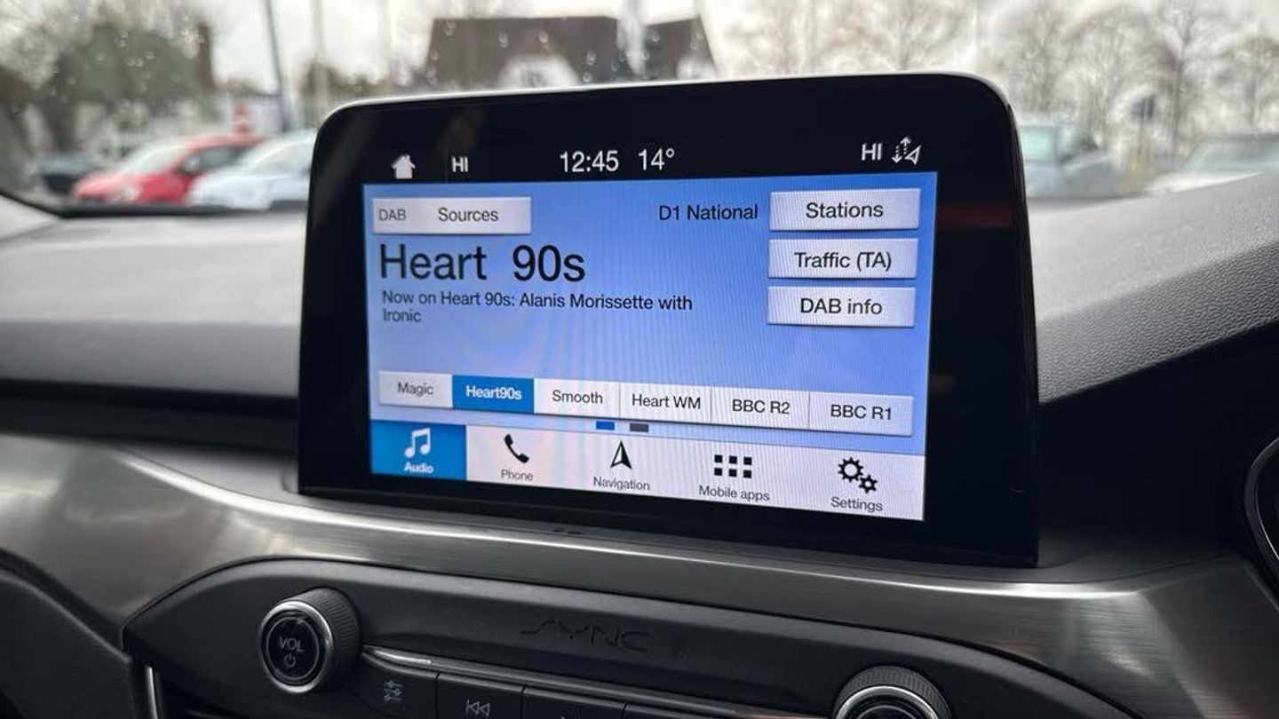 16in Alloy Wheels - 15 Spoke - Sparkle Silver, 4.2in TFT Instrument Cluster Screen, 8in Touchscreen Colour Display, Airbags - Driver and Front Passenger, Airbags - Front Side Impact, Airbags - Front and Rear Side Curtain, Anti-Lock Braking System - ABS with Electronic Brake Force Distribution - EBD, Automatic Dimming Rear View Mirror, Body Colour Bumpers, Centre Console with Armrest, Courtesy Light - Front and Rear Passengers - LED Overhead and Load Compartment, Courtesy Lights - Ambient LED Courtesy Lighting - Single Colour, Cruise Control with Speed Limiter, DEATC - Dual-Zone Electronic Automatic Temperature Control, Door Handles - Body Colour, Drivers Seat Lumbar Adjust, EPAS - Electric Power Assisted Steering, Electric Parking Brake, Emergency Brake Warning, Enhanced Electronic Stability Control - ESC with Traction Control - Emergency Brake Assist - EBA - Hill Start Assist - HSA, Floor Mats - Front and Rear, Ford Easy Fuel - Capless Refuelling System, Ford Eco Mode - Driver Information System, Ford Key Free System - Keyless Entry with Keyless Start, Ford SYNC3 DAB Navigation System, FordPass Connect, Front Fog Lights with Cornering Function, Front Passenger Airbag Deactivation Switch, Front Seat - Drivers Manual Height and Fore-Aft Adjustment, Front Seat - Passenger Manual Height Fore-Aft Adjustment, Front Seat - Passengers Manual Lumbar Support Adjustment, Front Seats - Sports Style, Front Suspension - Independent with MacPherson Struts and Anti-Roll Bar, Front Upper Grille - Chrome - Horizontal Bars, Front and Rear Seatbelt Minder, Gear Knob - Leather, Headlights - Halogen, Heated Front Seats, IPS - Intelligent Protection System, Intelligent Speed Assistance, LED Daytime Running Lights, Lane Keeping Aid with Lane Departure Warning, Leather-Trimmed Handbrake, Locking Wheel Nuts, MyKey, Parking Sensor - Front and Rear, Post Collision Braking, Power Folding Door Mirrors with Puddle Lights, Pre-Collision Assist with Autonomous Emergency Braking and Pedestrian-Cyclist Detection, Pre-Collision Assist with Pedestrian Detection, Quickclear Heated Windscreen, Rain Sensitive Windshield Wipers, Rear Centre Headrest, Rear Lights - LED, Rear Seat - Folding Centre Armrest with Two Integrated Cup Holders, Remote Central Locking and Engine Immobiliser, Scuff Plates - Front Aluminium Finish with Ford logo, Seats - ISOFIX Mounting Provision for Child Seats, Selectable Drive Mode, Spare Wheel - Mini Steel, Steering Column - Rake and Reach Adjustment, Steering Wheel - 3-Spoke Leather Trimmed with Audio Controls, Thatcham Category 1 Alarm, Trailer Sway Control, Trip Computer, Tyre Pressure Monitoring System, Windows - Electrically Operated Front and Rear with One Touch Opening and Closing