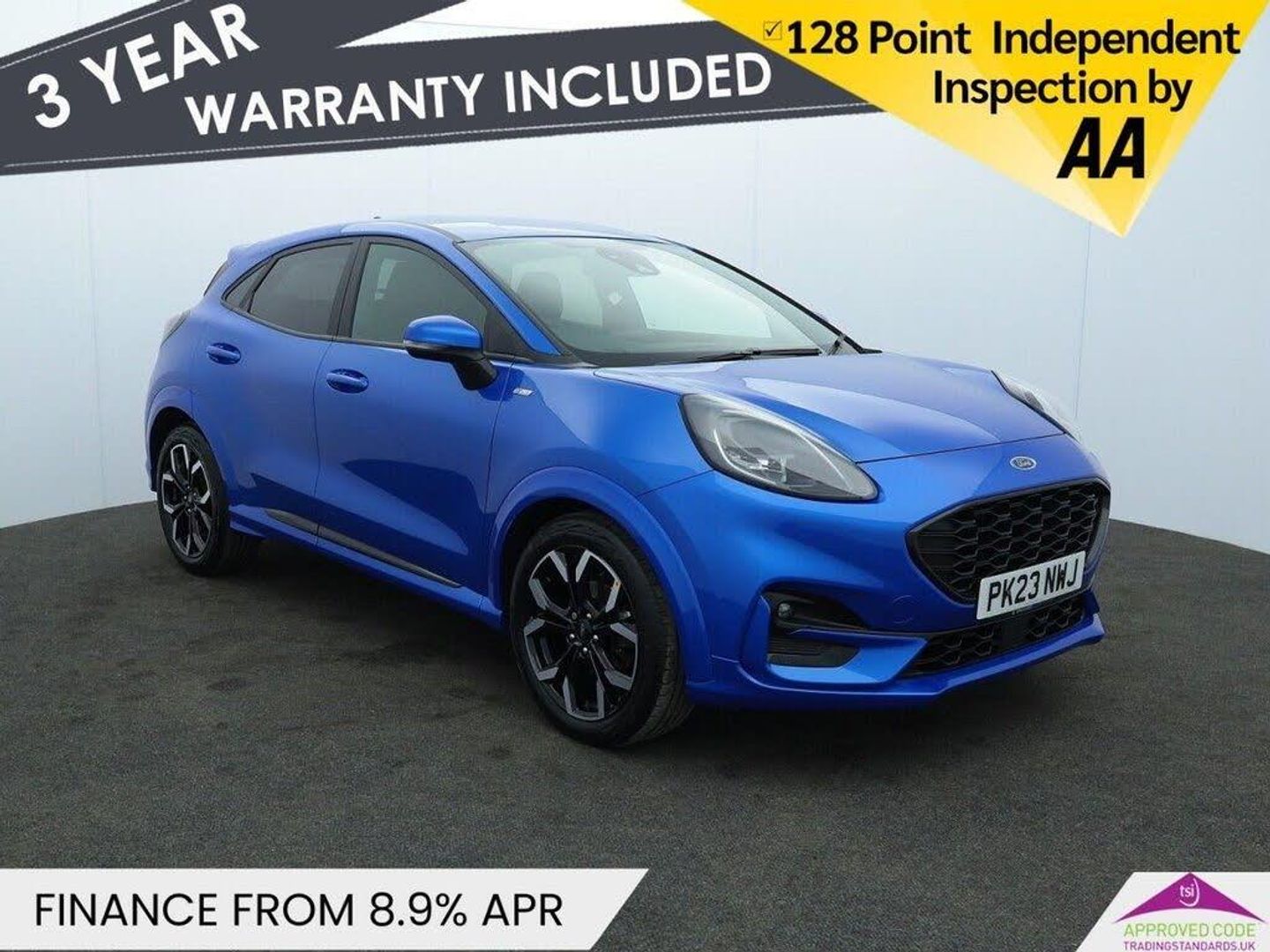 Oakwood Motor Company are delighted to offer this Ford Puma 1.0T EcoBoost MHEV ST-Line X, finished in the eye-catching Desert Island Blue. This sporty and efficient mild hybrid crossover combines bold styling with intelligent technology, offering a confident and connected driving experience. The ST-Line X trim brings striking exterior features including 18in matt black machined alloy wheels, a body-coloured rear spoiler, ST-Line body styling kit, and power-fold heated door mirrors with puddle lamps. Privacy glass and projector headlamps with LED daytime running lights complete the athletic look, while the Quickclear heated windscreen ensures clear visibility all year round. Inside, you'll find a premium cabin featuring partial Sensico upholstery with red stitching, a flat-bottomed leather steering wheel, sports front seats, and a full digital 12.3in instrument cluster. Comfort and convenience are taken care of with automatic air temperature control, front and rear electric windows, and a wireless charging pad. Technology is at the heart of this Puma, boasting a Ford SYNC 3 navigation system with B&O premium audio for immersive sound and seamless connectivity. Drive modes including Eco, Sport, and Slippery adapt to your environment, while safety systems such as Pre-Collision Assist, Lane Keeping Aid, and rear parking sensors ensure peace of mind on every journey. With the added practicality of the Ford MegaBox extended bootspace, this Puma is built to handle daily life with style. Call our team today to arrange your viewing or test drive! Oakwood Motor Company are an established family run dealership, home of the best used cars in Bury! We have hundreds of cars currently in stock from all your favourite brands including our specialist selection of Audi VW Group vehicles. Our fantastic rates are available on both HP and PCP finance, and we have extended warranties available for up to 3 years for complete peace of mind. Our experienced sales team are on hand to help you every step of the way, so give us a call today to reserve your new car with a refundable £100 deposit. Visit our used car dealership in Bury! We take all reasonable steps to ensure the accuracy of the information supplied in our advertising materials, however on occasion errors may occur. Images used are for illustrative purposes only. Please ensure you take the time to fully inspect your vehicle for specification/features which are important to you, and raise any queries with your Sales Executive.