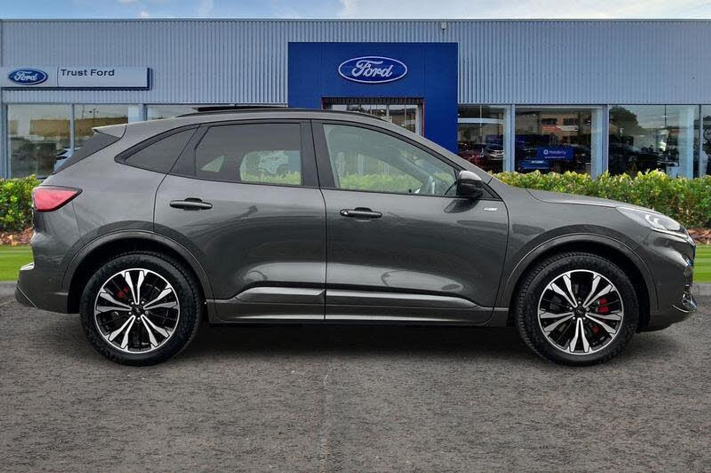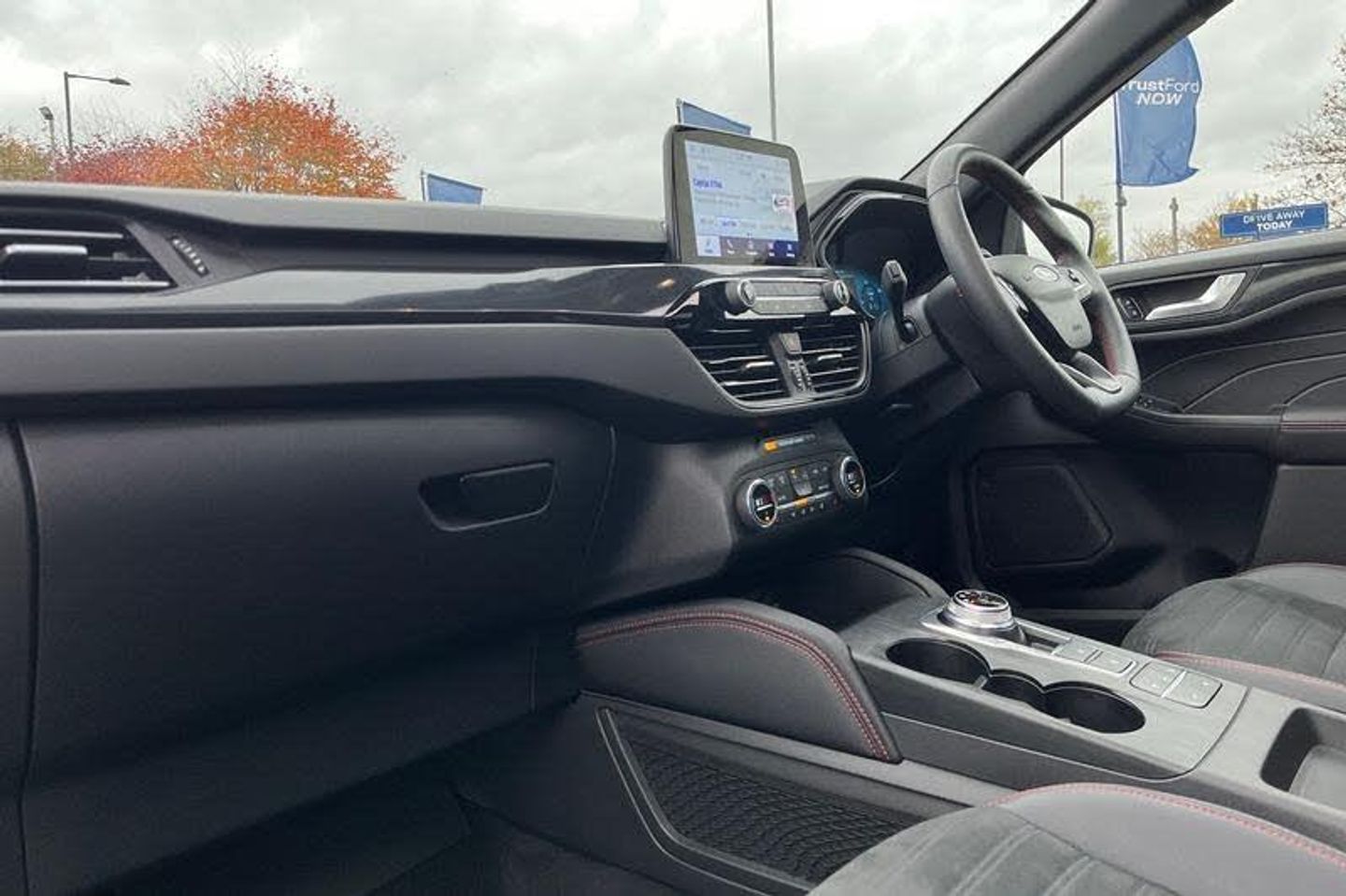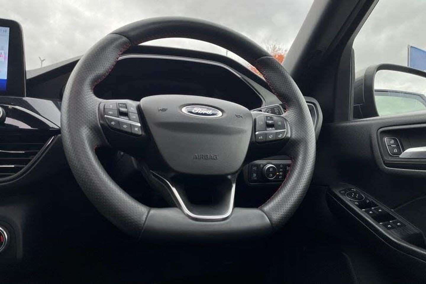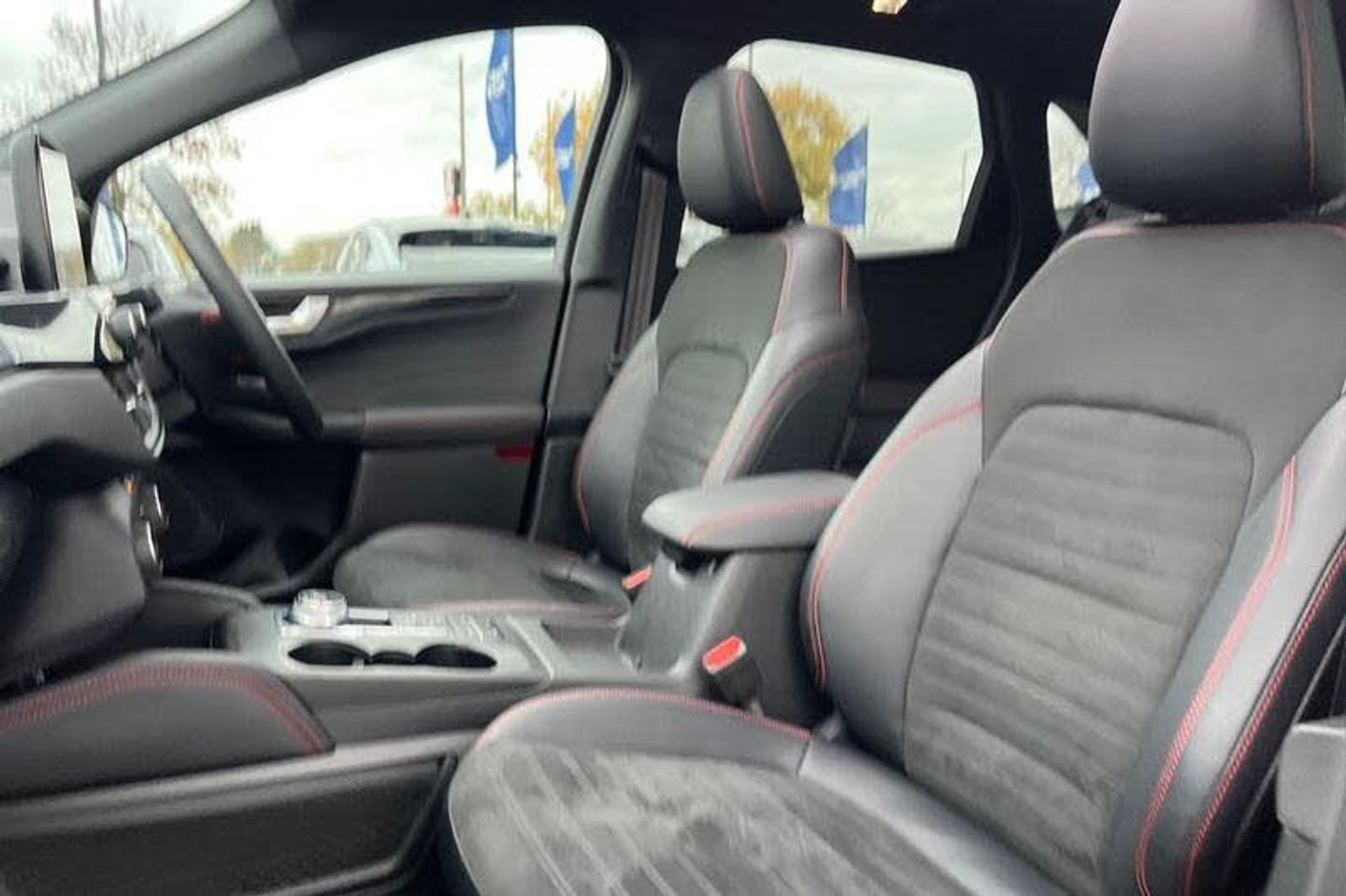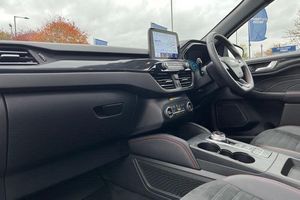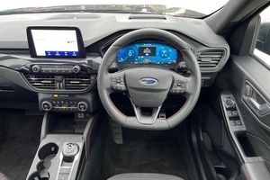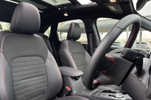 12.3 digital colour instrument cluster, Ford easy fuel, Ford SYNC 3 with 8 TFT LCD touchscreen, App Link, andriod auto/apple carPlay, emergency assistance and navigation with Ford pass connect, Front and rear parking sensors, Geo awareness, Hands free power tailgate, Lane keeping aid with lane departure warning, Power assist steering, Rear view camera, Selectable drive modes, Service interval indicator, Auto headlamps with high and low beam, Black roof rails, Body colour bumpers, Day/night rear view mirror, Front LED fog lamps, Large rear roof spoiler, LED daytime running lights, LED rear lights, Power folding, electrically adjustable and heated door mirrors with puddle lights, Power front/rear windows with global close, Power opening panoramic roof, Quickclear heated windscreen, Rain sensing wipers, Rear privacy glass, Rear side wing doors, Rear wiper, ST Line body styling kit with unique front and rear fascia and bumper, rear painted diffuser, front painted skid plates, dark mesh upper grille, ST Line front scuff plates, Third brake light, Twin exhausts, 2nd row sliding seats with 60:40 split, Alloy pedals, Centre console with electronic parking brake, Dark headlining and pillars, Electronic automatic temperature control (EATC), Flat bottomed leather steering wheel in sensico with red stitching, Front and rear head restraints, Heated passenger and driver seats, Heated rear seats, Heated steering wheel, Partial premium touch Sensico with black cloth inserts and red stitching, Rear centre head restraint, Single front passenger seat, Sports seats, ST Line front and rear floor mats, 3x3 point rear seatbelts, Airbags - front driver/passenger, front and rear curtain, Drivers knee airbag, Electronic stability control (ESC) and ABS, Ford MyKey Gen 2 safety system, Manual child proof rear door locks, Post collision braking, Pre collision assist with autonomous emergency braking, Rear seat Occupancy alert, Red brake calipers, Tyre pressure monitoring system