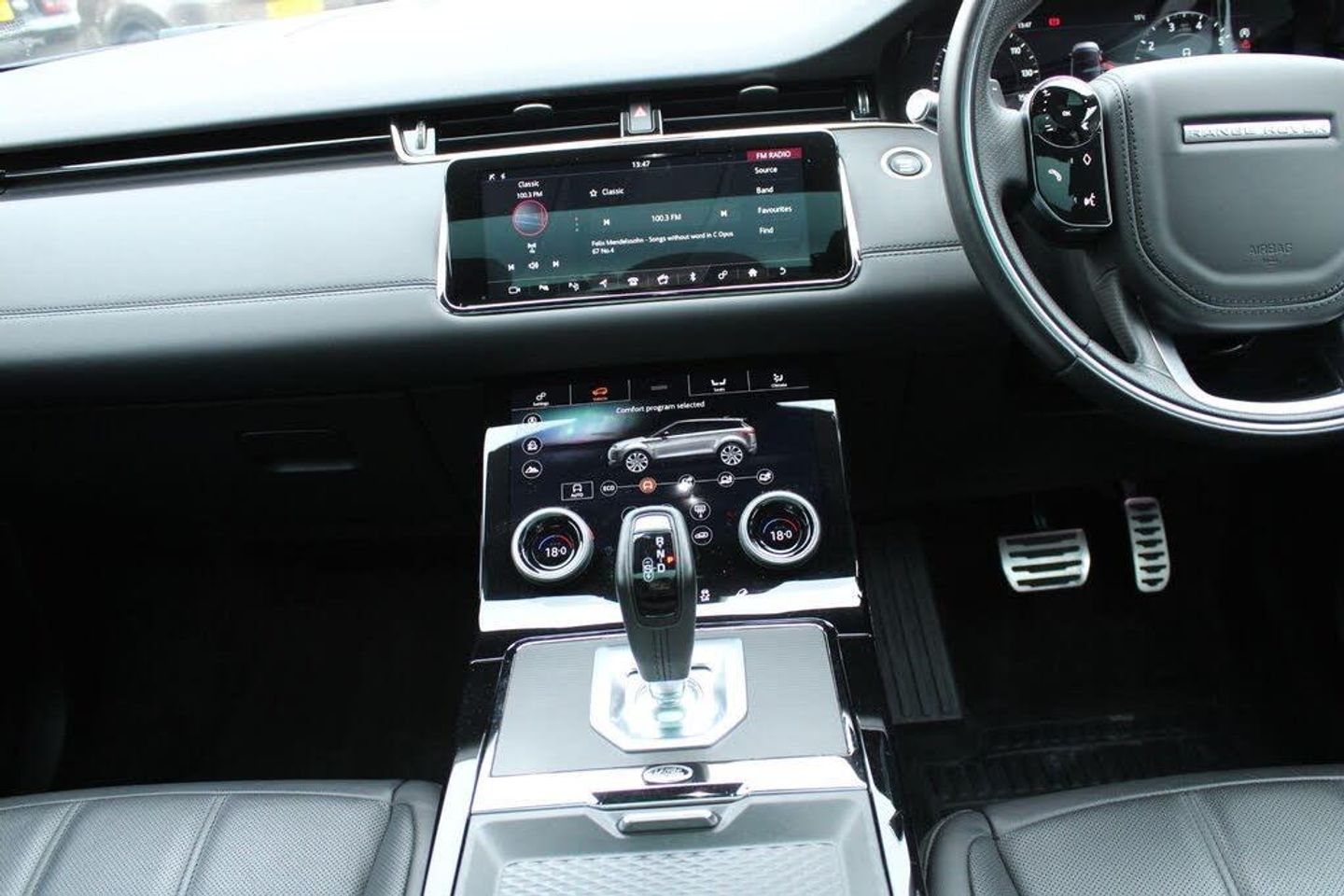 14-way - Heated Electric Memory Front Seats, 20in Alloy Wheels - 5 Split-Spoke - Style 5079 - Gloss Sparkle Silver, 360 Degree Parking Aid, 40-20-40 Split Fold Rear Seat, ABS - Anti Lock Braking System, ATPC - All Terrain Progress Control, Airbags - Driver Knee, Airbags - Front - Driver and Front Passenger, All Season Tyres, Android Auto, Apple CarPlay, Auto-Dimming Interior Rear View Mirror, Auto-Dimming Power Fold - Heated Door Mirrors with Memory and Approach Lights, Automatic Headlight Levelling, Autonomous Emergency Braking, Black Gearshift Paddles, Bluetooth Connectivity, Body Coloured Roof, Brake Pad Wear Indicator, Bright Metal Pedals, Carpet Mats, Chrome Treadplates, Clear Exit Monitor, Climate Control - Rear Vents, Cruise Control and Speed Limiter, Customer Configurable Autolock, DAB - Digital Audio Broadcast, DSC - Dynamic Stability Control, Driver Condition Monitor, EBA - Emergency Brake Assist, EBD - Electronic Brake-Force Distribution, EPAS - Electronic Power Assisted Steering, ETC - Electronic Traction Control, Efficient Driveline, Electric Parking Brake, Electric Windows with One-Touch Open-Close and Anti-Trap, Evoque and R-Dynamic Badge, Flush Deployable Door Handles, HDC - Hill Descent Control, Headlights - Automatic High Beam Assist, Headlining - Ebony Morzine, Heated Rear Window with Timer, Hill Launch Assist, InControl - Remote App, InControl Apps, Interactive Driver Display, Interior Lighting, Intrusion Sensor, Lane Keep Assist, Locking Wheel Nuts, Low Traction Launch, Manually Adjustable Steering Column, Navigation Pro, Overhead Lighting Console, Overhead Stowage for Sunglasses, P200 Badge, Park Assist, Passive Front Headrests, Passive Suspension, Perforated Leather Steering Wheel, Power Operated Child Locks, Power Socket Pack 1, Powered Tailgate, Premium LED Headlights with Signature DRL, Pro Services and Wi-Fi Hotspot, Push Button Start, R-Dynamic Exterior Pack, RSC - Roll Stability Control, Rain Sensing Windscreen Wipers and Automatic Headlights - Automatic, Rear Fog Lights, Rear ISOFIX, Rear Traffic Monitor, Rear View Camera, SE Badge, Seat Belt Reminder, Seats - Rear Centre Head Restraint, Shadow Atlas - RANGE ROVER - Bonnet and Tailgate Script, Side Curtain Airbags and Thorax, Smart Settings, Sound System, Sun Visors - Illuminated Vanity Mirrors, TPMS - Tyre Pressure Monitoring System, Tailgate Spoiler, Terrain Response 2, Torque Vectoring, Touch Pro Duo, Traffic Sign Recognition and Adaptive Speed Limiter, Trim Finish - Gradated Linear Dark Aluminium, Twin Front Cupholders with Cover, Twin Sliding Front Centre Armrest, Two-Zone Climate Control, Tyre Repair System, Voice Control, Windscreen - Heated, Windscreen Washer Jets - Heated