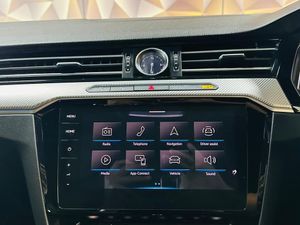 12V Socket in Centre Console in Storage Area, 12V Socket in Storage Compartment with Soft-Touch Opening Cover, 12V Socket on Rear of Front Centre Armrest, 20in Alloy Wheels - Rosario Black, 3 Rear Head Restraints - Height Adjustable, 3 Rear Three-Point Seat Belts with Tensioners on Outer Seats, ABS - Anti-Lock Braking System, Active Bonnet, Active Info Display, Adaptive Cruise Control - ACC with Predictive Cruise Control, Airbags, Alarm with Interior Protection, Aluminium Trim On Upper and Lower Air Vents Extending Across Cockpit, Ambient Lighting, Analogue Clock in Dashboard, Area View and Rear-View Camera, Automatic Coming-Leaving Home Lighting Function, Automatic Dimming Interior Rear View Mirror, Automatic Hazard Lights Activation Under Emergency Braking, Black Exterior Mirror Housings, Brushed Aluminium Interior Door Handles, Car-Net App Connect, Car-Net Security and Service, Carpet Mats - Front and Rear, Chrome Effect Trapezoid Dummy Exhaust Tailpipe Surrounds - Left and Right, Climate Control, Coasting Function, Cup Holders - Front x2, DCC - Dynamic Chassis Control, Discover Navigation Pro Touch-Screen Navigation-DVD Infotainment System with Integrated Voice Activation - Gesture Control and Car-Net Guide and Inform Plus, Door Mirrors - Electrically Adjustable-Heated and Folding, Driver Alert System - Fatigue Detection, Driver Personalisation Profile, Drivers and Passengers Safety Optimised Head Restraints, Driving Profile Selection, Dusk Sensor - Automatic Driving Lights, ESC - Electronic Stability Control, Electric Windows - Front and Rear, Electronic Engine Immobiliser, Electronic Parking Brake with Auto Hold Function, Emergency Release Function in Rear Tailgate, Frameless Side Windows with One-Touch and Convenience Opening and Closing Functions, Front Centre Armrest - Longitudinally Adjustable with Storage Compartment and Two Rear Air Vents, Full Size Alloy Spare Wheel and Tyre - Tool Kit and Jack, Glovebox - Cooled and Lockable, Heated Front Seats, Heated Rear Windscreen, Heated Windscreen Washer Jets, Height Adjustable Front Three-Point Seat Belts with Tensioners, High Level 3rd Brake Light - LED, Interior LED Lighting, Isofix Child Seat Preparation - Easy-Fit - For 2 Outer Rear Seats, Keyless Entry - with Start-Stop Button on Centre Console, LED Luggage Compartment Lights x2 - Left and Right, LED Rear Number Plate Lights, LED Self-Levelling Headlights, LED Tinted Rear Light Clusters with Dynamic Indicators, Lane Assist, Leather Trimmed Three-Spoke Multifunction Steering Wheel with Aluminium Inserts and R-Line Logo with Paddle Shift, Load Lashing Points x4 in Luggage Compartment, Load Through Provision with Two Cup Holders when Folded Down, Luggage Compartment Bag Hooks x 2 - Left and Right, Luggage Compartment Cover - Removable, Parking Sensors - Front and Rear, Partially Galvanised Body, Passengers Seat with 6-Way Adjustment, Pedals - Stainless Steel, Pedestrian Monitoring, Piano Black Decorative Inserts in Centre Console, Premium USB Cable, Press and Drive - Keyless Start, Proactive Occupant Protection, Progressive Steering, R-Line Logo on Door Sill Protectors, R-Line Styling Pack, Rain Sensor, Rear Tinted Glass from B Pillar Backwards, Remote Central Locking with 2 Remote Folding Keys, Remote Tailgate Unlocking via Key Fob, Rigid Safety Cell with Front and Rear Crumple Zones, Seats - Drivers 6-Way Electric Adjustment, Side Assist Plus with Rear Traffic Alert, Silver Rise Decorative Inserts in Dash and Door Panels, Speedo and Rev Counter - Electronic Odometer - Trip - Service Interval Display and Fuel Gauge, Split Folding Rear Seat Backrests 60-40 with Centre Armrest, Stainless Steel Door Sills - Front and Rear, Steering Wheel - Height and Reach Adjustable, Storage Compartment in Drivers and Front Passenger Door, Storage Compartment in Rear Doors, Storage Compartment with Soft Touch Opening Cover in Centre Console, Storage Compartments in Luggage Area - Left and Right, Titan Black Rooflining, Two-Tone Horn, Tyre