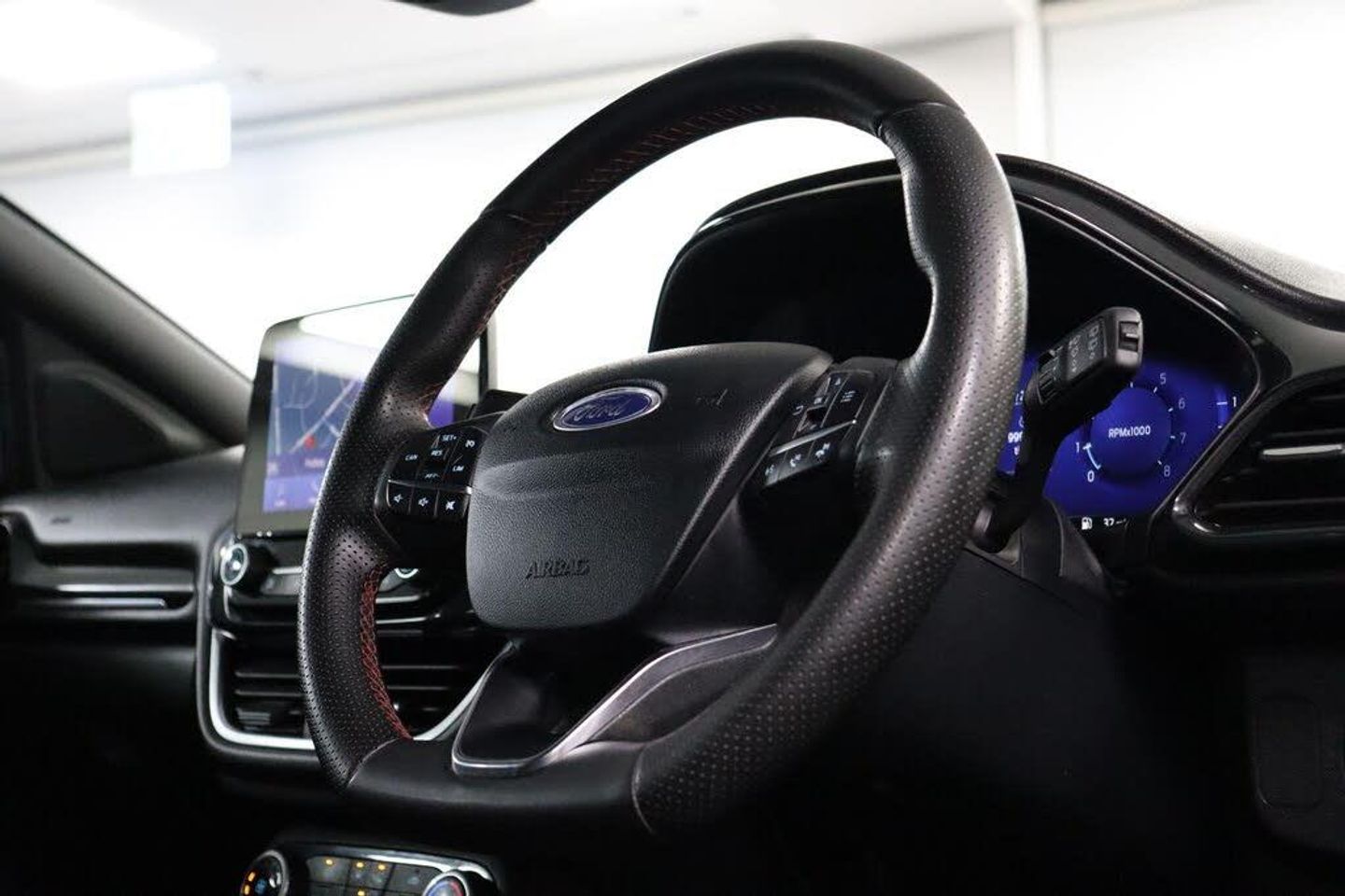 8in Colour Touchscreen Infotainment System, Ford SYNC 3 Navigation, Cruise Control and Speed Limiter, Bluetooth Connection, DAB Radio, Pre-Collision Assist with Autonomous Emergency Braking and Pedestrian-Cyclist Detection, Rear Parking Sensors, Wireless Charging, Post Collision Braking, 17in Alloy Wheels - 5x2 Spoke - Black Machined Finish, Power-Foldable Heated Door Mirrors with Puddle Lamps, Quickclear Heated Windscreen, Automatic Dimming Rear View Mirror, Ford Power Starter Button, Manual Air Conditioning, Selectable Driving Modes - Normal - Eco - Sport - Slippery and Trail, Apple CarPlay - Android Auto, Digital Cockpit, Stop/Start, Lane Keeping System, ISOFIX Child Seat Anchorage, Cloth - Ebony with Red Stitching