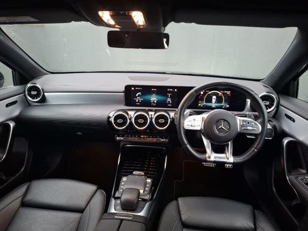 18" AMG 5 twin spoke design bicolour alloy wheels, AMG performance suspension, AMG bodystyling - Front apron with splitter in chrome, rear apron with chrome trim and chrome visible trim elements in tailpipe, AMG Sports exhaust system with two round tailpipes measuring 90 mm in diameter attached in rear apron, AMG lettering plus ribbing on the inside of the, Wider wheel arches for AMG wheels, Hey Mercedes Voice activation, 10.25" media display, 180 degree rear view camera with parking guidelines, Mercedes me connect including emergency call system, accident recovery, breakdown and maintenance management, Active parking assist with visual and audible warning of detected obstacles, Auto Mercedes-Benz child seat recognition sensor, 7" colour screen in instrument panel, Preinstallation for Mercedes Benz link, Privacy glass, Floor mats with stitched edging and AMG lettering, Touchpad on center console, Front brake calipers with AMG lettering, Urban guard vehicle protection system with immobiliser and interior protection