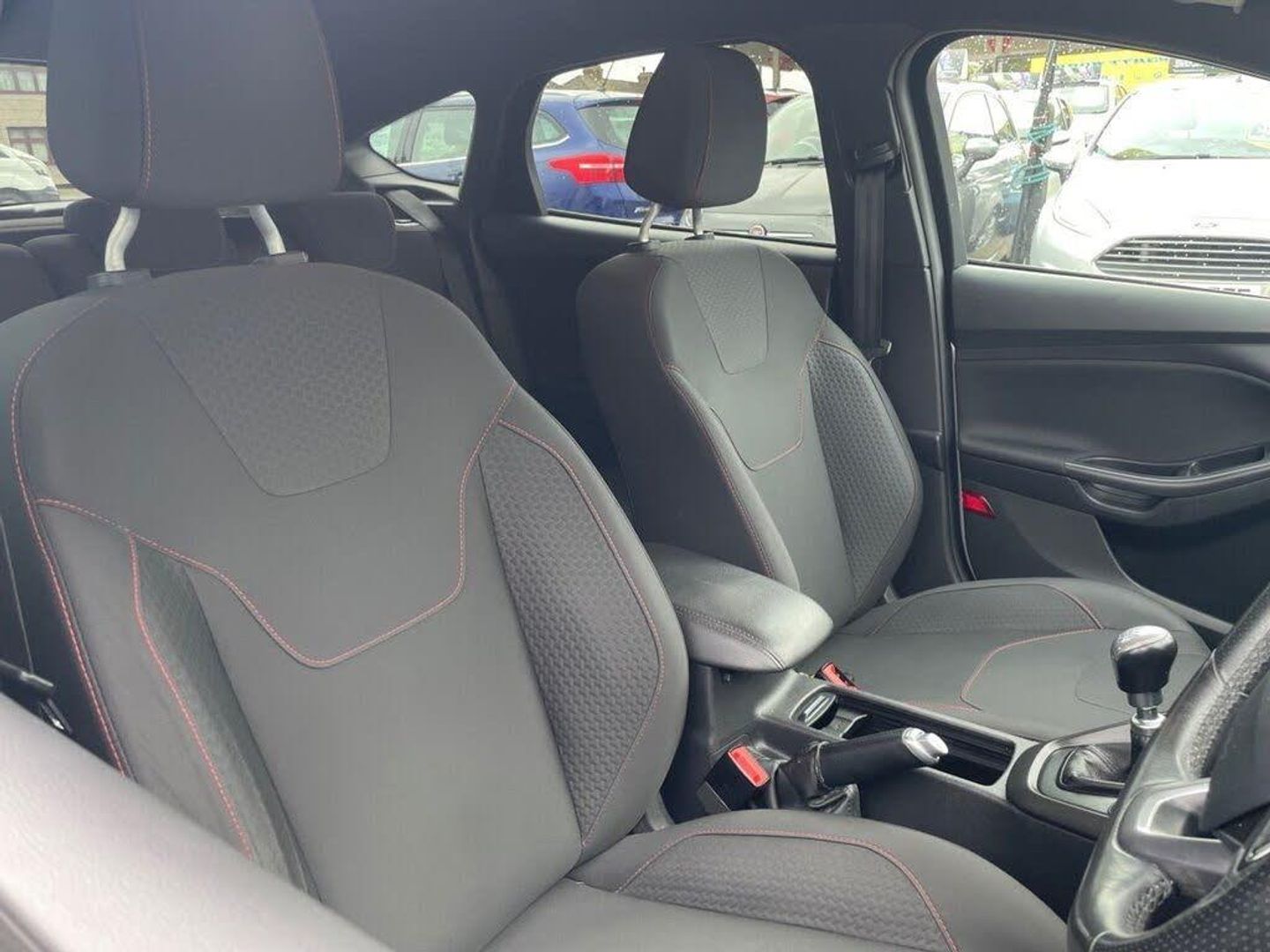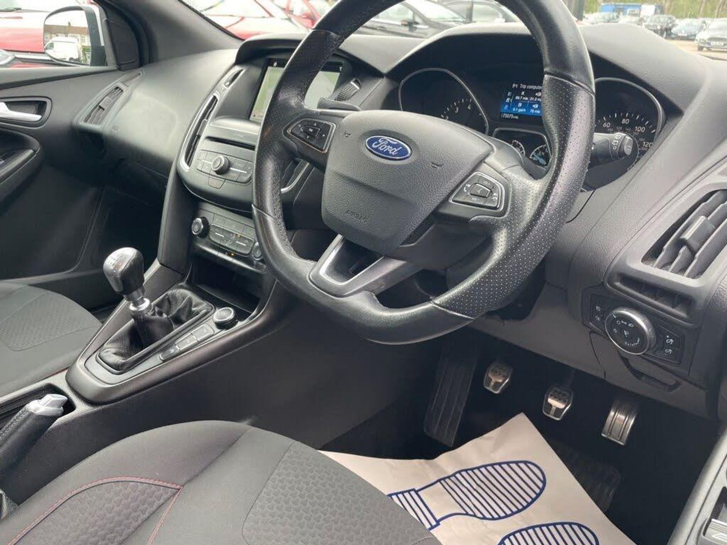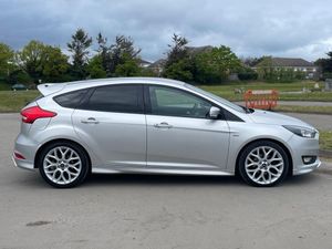 17in Alloy Wheels - Rock Metallic Finish, Air Conditioning - Manual, Alarm - Thatcham Category 1 with Volume Sensing and Perimeter, Black Exterior Trim Detailing including Upper Door Line and Headlamp Surround, Body Colour Large Rear Spoiler and Side Skirts, Body Coloured Front Styling Kit with Centre Aero Foil, Colour TFT Instrument Cluster Display, Courtesy Light - Front and Rear Passengers - Overhead Halogen and Load Compartment, Door Mirrors - Heated - Electric - Integrated Side Indicators - Body Coloured, Drivers Seat Lumbar Adjust, Electronic Stability Programme - ESP - with Traction Control and Emergency Brake Assist - EBA, EPAS - Electric Power Assisted Steering, Ford Easy-Fuel Capless Refuelling System, Ford Eco Mode - Driver Information System, Ford SYNC3 DAB Navigation System, Front Floor Mats, Front Fog Lights, Front Seat - Drivers Manual Height and Fore-Aft Adjustment, Front Seat - Passenger Manual Fore-Aft Adjustment, Front Seats - Sports Style, Front Suspension - Independent with MacPherson Struts and Anti-Roll Bar, Gearshift Knob - Leather, Halogen Headlights with Black Surround, Headliner - Black Woven, Interior Door Lever - Chrome Finish, IPS - Intelligent Protection System, Keyless Start, Leather-Trimmed Handbrake, LED Daytime Running Lights, Locking Wheel Nuts, MyKey, Premium Centre Console - Sliding Armrest, Quickclear Heated Front Windscreen with Heated Washer Jets, Rear Bumper with Integral Body Coloured Diffuser and Honeycomb Mesh in High-Gloss Black, Rear Lights - LED, Rear Seat - 60-40 Split Back and Cushion, Rear Suspension - Independent Control Blade Multi-Link System and Anti-Roll Bar, Remote Central-Double Locking, Spare Wheel - Mini Steel, Sports Style Pedals - Gear Knob and Steering Wheel, ST Line Stainless Steel Scuff Plates, Steering Column - Rake and Reach Adjustment, Steering Wheel - 3 Spoke - Leather Trimmed, Suspension - Sports, SYNC3 with 8in Touchscreen DAB Audio System, Trip Computer, TVC - Torque Vectoring Control, Tyre Pressure Monitoring System, Upper and Lower Grille - High Gloss Black Honeycomb Design, Windows - Electrically Operated Front with One Touch Lowering on Drivers Side, Wipers - Standard with 6 Speed Interval Settings