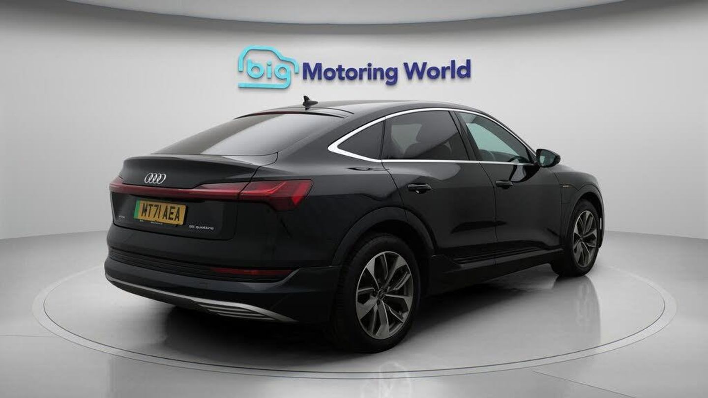 FREE £750 towards your finance-Our Audi e-tron is finished in Black. Specification includes a range of fantastic features including FREE £750 towards your finance Deposit, All Wheel Drive, Leather Seats, Air Suspension, Apple CarPlay, Electric Seats, Lane Assist, Android Auto, Satellite Navigation, Privacy Glass Specification information is supplied by CAPHPI and may vary to the actual car. This data does not form any part of a buying contact. Please check specification prior to purchase in-store. The MOT is valid until November 2026, visit bigmotoringworld.co.uk for more photos, a 360 tour, service history and a free HPI report.Were BIG on peace of mind and this Black Audi e-tron has completed our comprehensive 200 point inspection and passed all checks. Its ready for you to drive away with immediate collection in-store. We include a 90-day warranty as standard plus an option to extend for up to 3 years.Reserve this car exclusively for you, safely and securely at bigmotoringworld.co.uk, with a fully refundable £99 deposit. Test drive before you buy, with no commitment, no hassle and a completely haggle free experience. Still searching and want to see thousands more cars? We are BIG on choice with over 8000 cars to choose from.Visit our award winning web site bigmotoringworld.co.uk.Were Big Motoring World and were BIG on what matters to you.