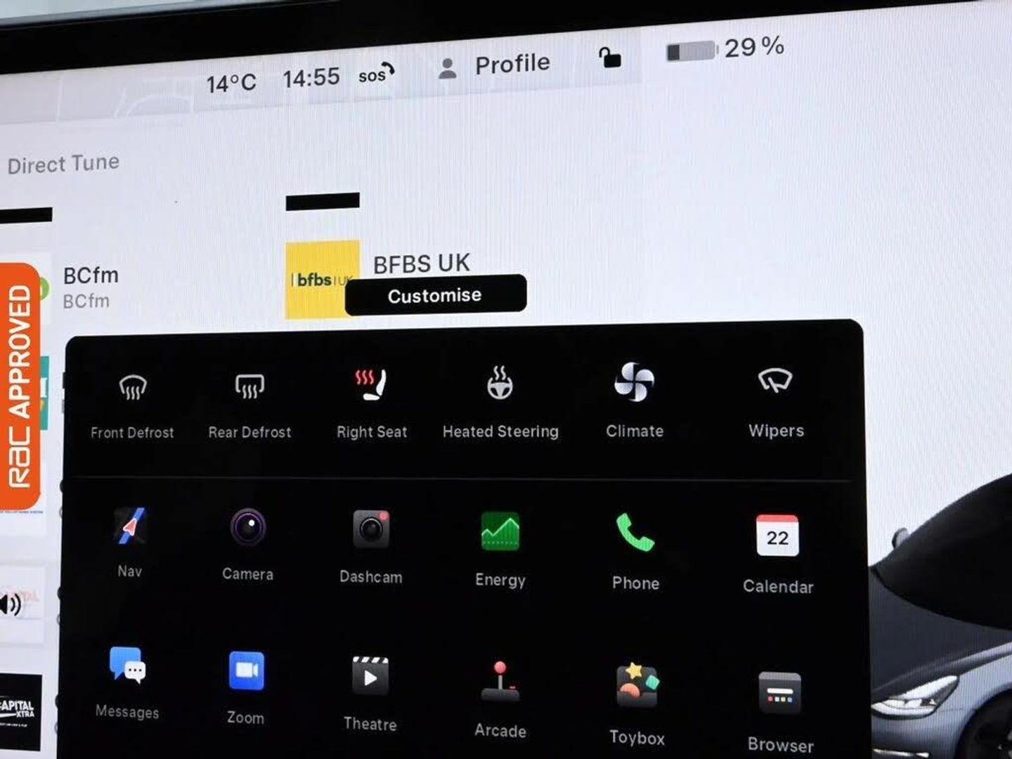 12-Way Power Adjustable Front and Rear Heated Seats,2 Zone Climate Control,60-40 Split Folding Rear Seats,Air Conditioning,Ambient - Interior Lighting,Centre Console with Storage - 4 USB Ports and Docking for 2 Smartphones,Electrically Adjustable Drivers Seat,Electrically Adjustable Passenger Seat,Electrically Adjustable Steering Column - Tilt-Telescopic,Front Armrest,Front Head Restraints,Graphite Finish Seat Controls,Heated Steering Wheel,Height Adjustable Drivers Seat,Interior Carpeting,Interior Floor Mats,Location-Aware Automatic Garage Door Opener,Map and Reading Lights,Matt Finish Trim,Metalised Scroll Wheels - Steering Wheel,Powerlift Trunk,Rear Headrests,Satellite-View Maps with Live Traffic Visualisation and Navigation,Satin Black Sill Plates,Seat Belt Reminders,Seats - Heated Front,Seats - Heated Rear,Software Updates over WIFI,Steering Wheel Mounted Controls,Sunvisors with Vanity Mirror and Illumination - Driver and Passenger,Telephone,15in Touchscreen with Onboard Maps and Navigation,Additional USB-A Port - Glove Compartment,Audio Remote Control,Bluetooth Connection,DVD,Digital Radio,In-Car Internet Streaming Music and Media,Inductive Charging Mats - Two Smartphones,Internet Browser,Internet Connection,Media Storage,Mobile Phone App Interface,Navigation System,Non-Safety-Critical Software Updates over Cellular,OEM Sound System,Premium Audio - 14 Speakers - 1 Subwoofer - 2 Amps and Immersive Sound,Radio - AM-FM - Internet Streaming,Two Additional USB-C Port,USB-iPod Interface,Wi-Fi and LTE Internet Connectivity,18in Alloy Wheels - Aero,Auto Dimming - Power Folding - Heated Side Mirrors,Body Coloured Bumpers,Electric Hinged Side Doors - Front,Electric Hinged Side Doors - Rear,Exterior Satin Black,Fixed Panoramic Glass Roof,Front Electric Windows,Rear Electric Windows,Rear Taillights - LED,Tinted Glass Roof with Ultraviolet and Infrared Protection,3x3 Point Rear Seat Belts,ABS - Anti-lock Braking System,Adaptive Steering,Airbags - Curtain,Airbags - Driver,Airbags - Passenger,Airbags - Side,Automatic Emergency Braking,Electronic Stability Control and Traction Control,Front Cross Traffic Camera,Isofix Child Seat Anchor Points,Keyless Entry and Remote Control with App,Keyless Go,Rear Cross Traffic Camera,Remote Central Locking,Steer-By-Wire Technology,Adaptive Cruise Control,Blind Spot Information,Collision Avoidance,Lane Departure Warning,Park Assist Camera,Service Indicator,Traffic Sign Recognition,Trip Computer,Tyre Pressure Monitoring System,Voice Activated Controls,Automated High-Beam Assist,Daytime Running Lights - LED,LED Foglights,LED Headlights,Rear Light - LED,Autopilot Function,Custom Driver Profiles,Heat Pump,Power Steering - Speed Sensitive,Type 2 Public Charging Connector