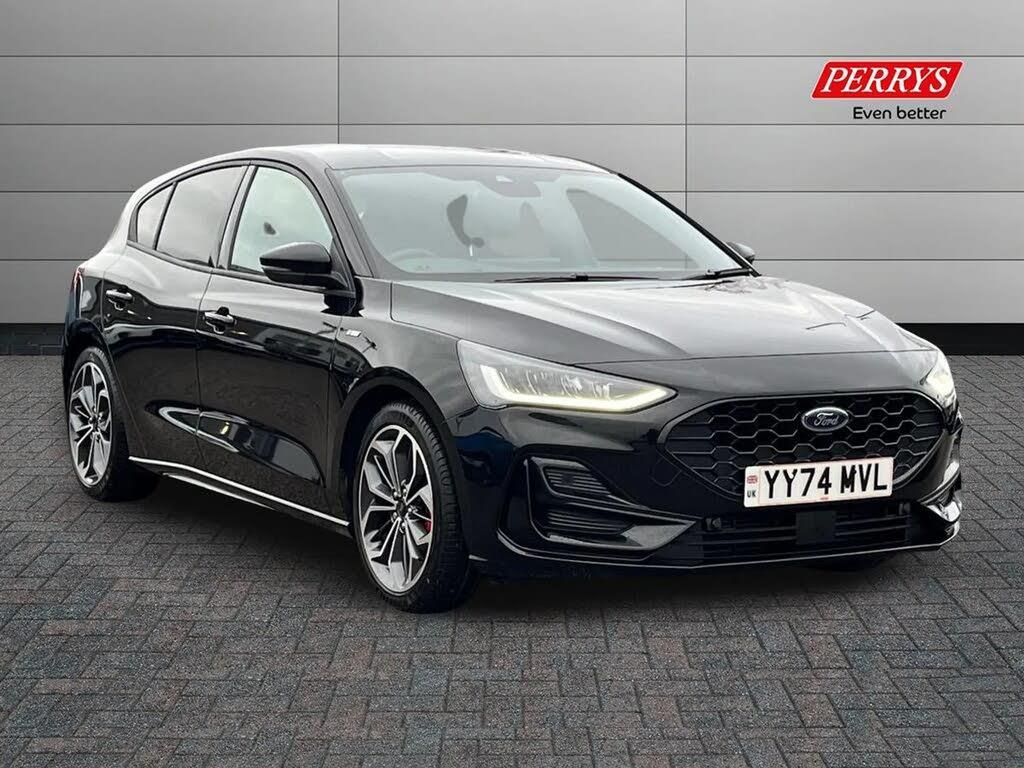 12.3" Digital instrument cluster,Bluetooth system,Digital clock,Easy fuel capless refuelling system,Eco mode,Ford SYNC4 Nav with 13.2'' touchscreen, DAB, Emergency Assistance, Apple Carplay & Android Auto, B&O Premium Audio with 10 speakers, FordPass Connect,Lane keeping system - lane keeping alert and lane keeping aid,PAS,Rev counter,Selectable drive mode,Service interval indicator,Trip computer,Wireless charging pad,Sports tuned suspension,2 USB ports,Auto headlamps (on/off),Body coloured door handles,Electrically operated front and rear windows with one touch opening and closing,Electrically operated heated power fold door mirrors with puddle lamp with side indicators,Front variable intermittent wipers with electric wash,Heated rear window,LED daytime running lamp,LED rear lamps,LED third brake light,Polished twin tailpipe,Privacy glass,Quickclear heated windscreen,Rain sensor,Rear side wing doors,Tailgate wash/wipe,Unique ST-Line grille, full bodystyling kit, and large body coloured rear roof spoiler,3 rear headrests,3 seat bench in 2nd row,Dual zone electronic air temperature control,Full sensico premium upholstery,Height adjustable front headrests,Isofix child seat preparation,Load through ski hatch,Manual 2-way passenger seat adjust,Power 4-way driver seat adjust, with power lumbar adjust,Reach + rake adjustable steering column,Single front passenger seat,ST-Line Design pack - Focus,Winter pack - Focus,3x3 point rear seatbelts,ABS+Electronic Brake force Distribution,Auto hold function,Driver airbag,EDL traction control,Electronic parking brake,Electronic stability control,Front and rear seatbelt reminder,Front inertia reel height adjustable seatbelts with pre-tensioners,Front passenger airbag,Front side airbags,Passenger airbag deactivate switch,Post collision braking,Pre collision assist with autonomous emergency braking and pedestrian/cyclist detection,Remote/power child rear door locks,Side curtain airbags,Three rear inertia reel lap/diagonal seatbelts,Tyre pressure monitoring system,Keyless entry and keyless start,MyKey system,Remote central locking & engine immobiliser,Thatcham alarm with power door dead locks,18" 5x3 spoke pearl grey high gloss machined finish alloy wheels with mini spare wheel,Agate Black,Full Sensico - Ebony with Red Stitching
