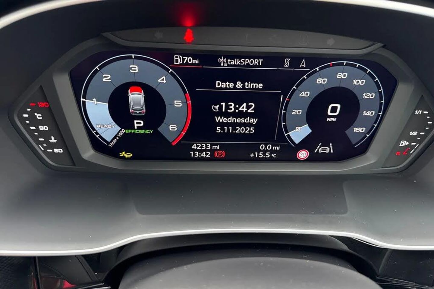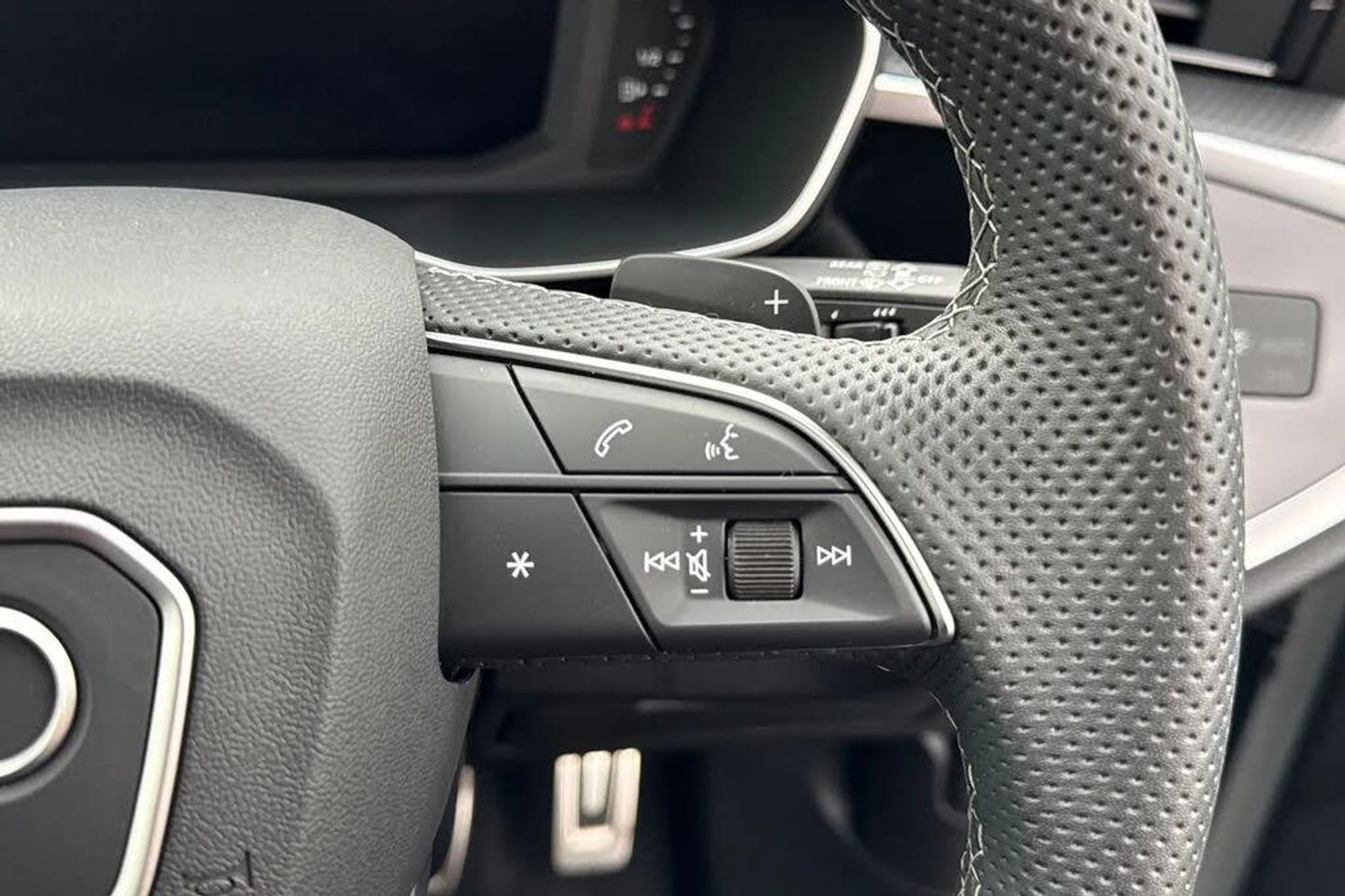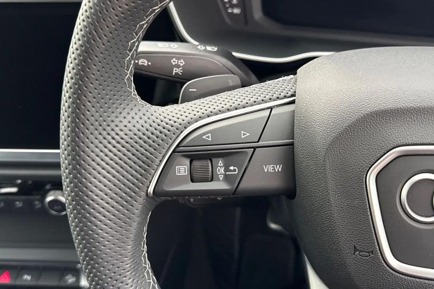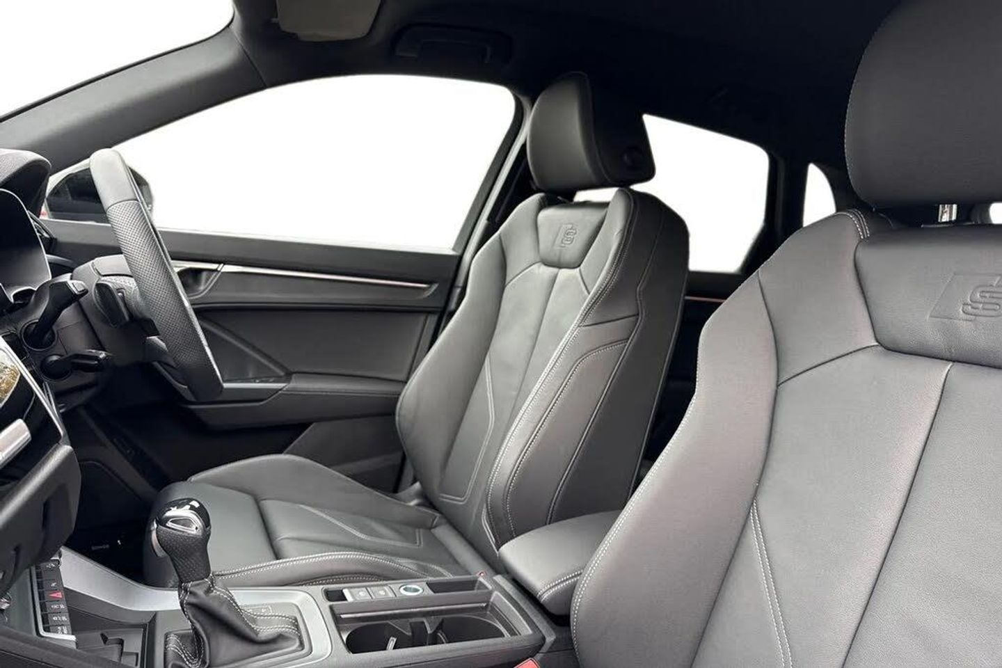 Rear-view camera,Extended Ambient Lighting Pack - multi-coloured,WBI,Technology Pack,Internal control code,Audi Beam - Front door puddle illumination,Contrast bumpers in Manhattan grey - paint finish,Flat-bottomed 3-spoke leather multi-function Sport steering wheel with gear-shift paddles,Black roof rails,Heated front seats,Black Styling Pack with Audi Rings and model designation in Black,Inlays in Piano black,20" x 8.5J '5-V-spoke star' matt grey Audi Sport alloy - gloss turned finish - with 255/40 R 20 tyres,Black door mirrors,Door mirrors - electrically adjustable - folding - heated and auto-dimming,4-way electric lumbar support,Parking System Plus,SONOS Premium Sound System,Audi Phone Box with wireless charging,Equipment options subset for Great Britain,Extended Ambient Lighting Pack - Multi-Coloured,Technology Pack