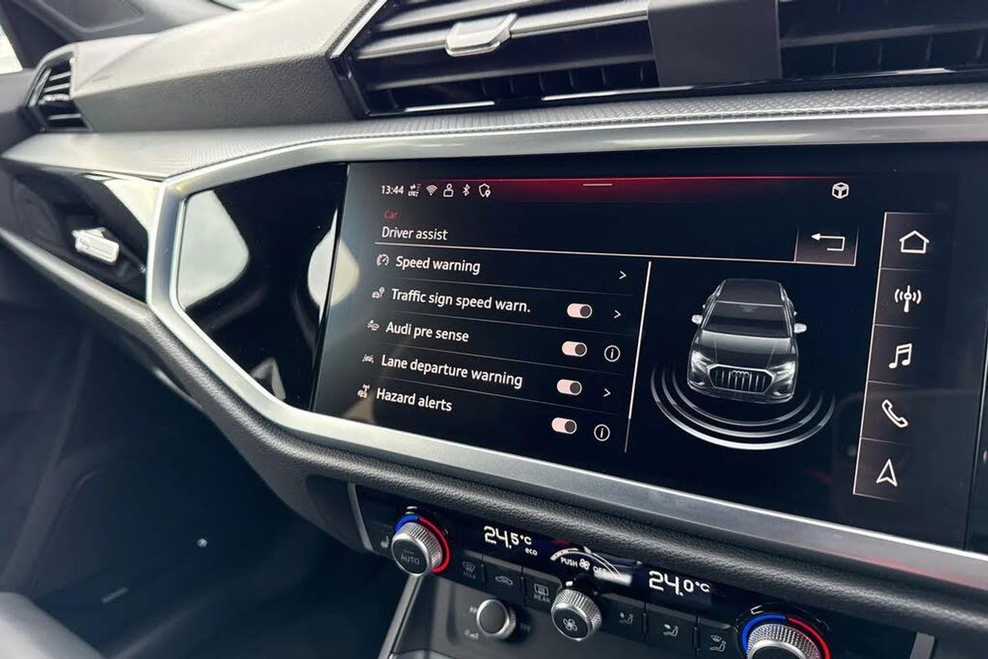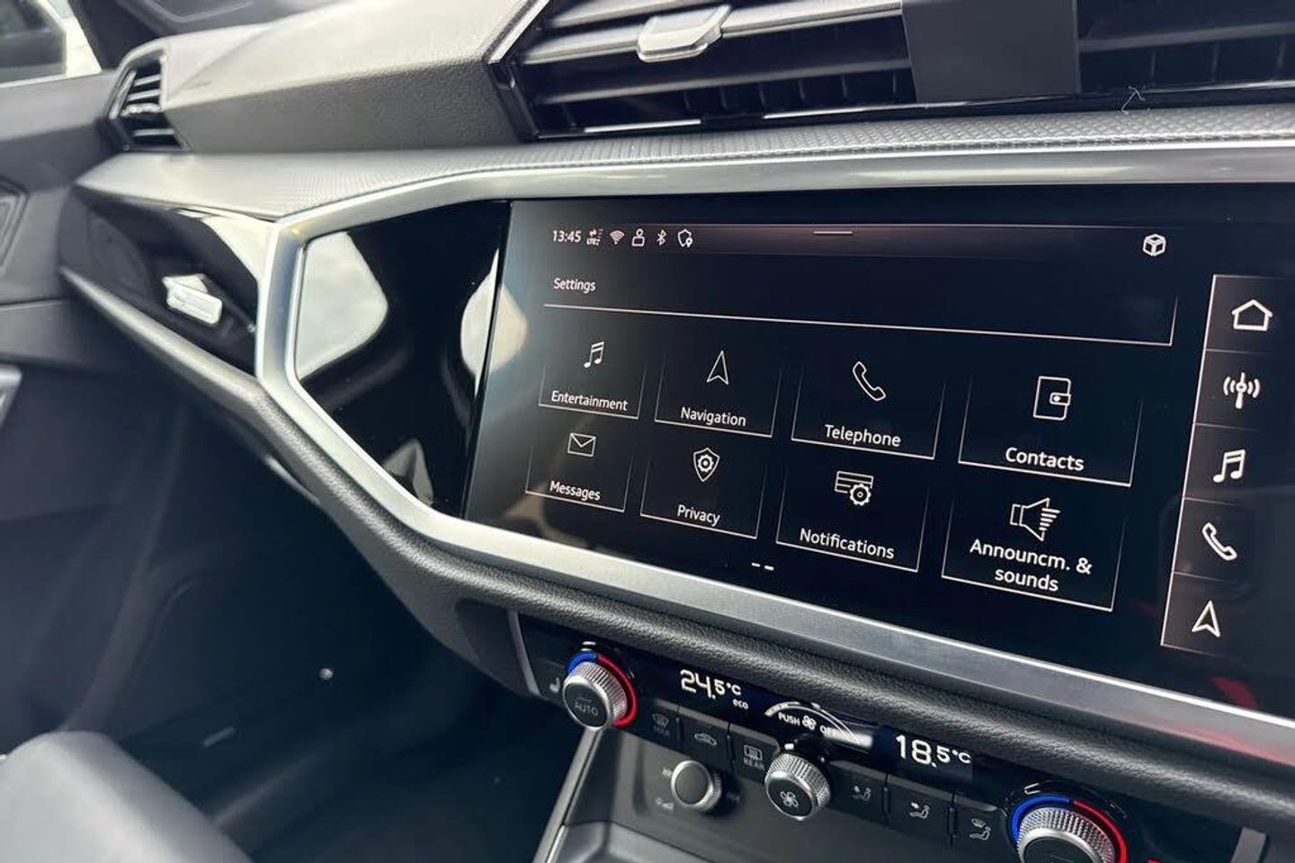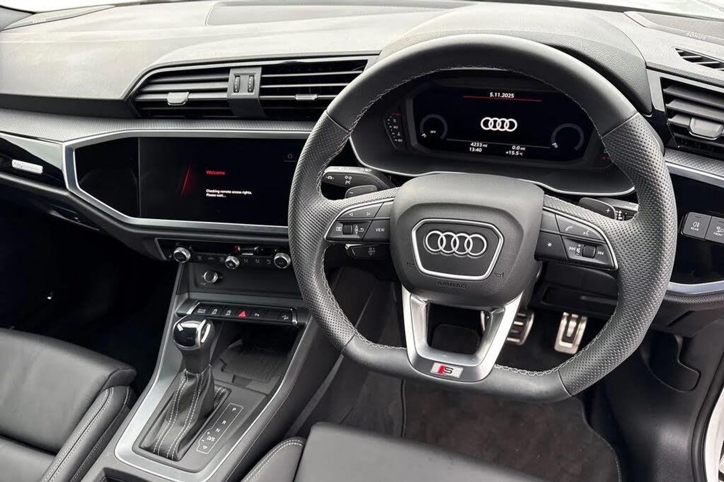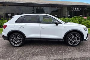 Ambient Lighting, Puddle Lights, Heated Seats, Alloys;Take a look at this Audi Approved Q3 Black Edition 35 TDI in Glacier white with its 20" 5-V-spoke star design alloy wheels which look superb out on the roads. The LED headlights with LED rear lights create that strong visibility in all weather conditions. The Black Edition trim ensures a striking presence, complemented by the comprehensive Technology Pack which includes front and rear parking sensors, a rear camera for effortless manoeuvring, heated seats for comfort, and wireless phone charging. It also includes the Sonos premium sound system for that excellent sound experience. Further enhancing your driving experience, this Q3 features an extended multi coloured ambient lighting pack, creating a sophisticated cabin atmosphere. The Light and Rain Sensor automatically manages headlights, for that added convenience. Enjoy a premium sound system and dual zone electronic climate control for personalised comfort. With its generous boot space and low CO2 emissions, this Audi Q3 TDI Black Edition offers a superior blend of practicality, technology, and efficiency compared to other vehicles in its class. The Multimedia interface allows you to access different media, such as Apple Carplay and Android Auto, allowing you to use apps like Spotify, Google Maps, Apple Music and other apps also. The Audi drive select feature allows you to choose your prefered drive mode on any journ...