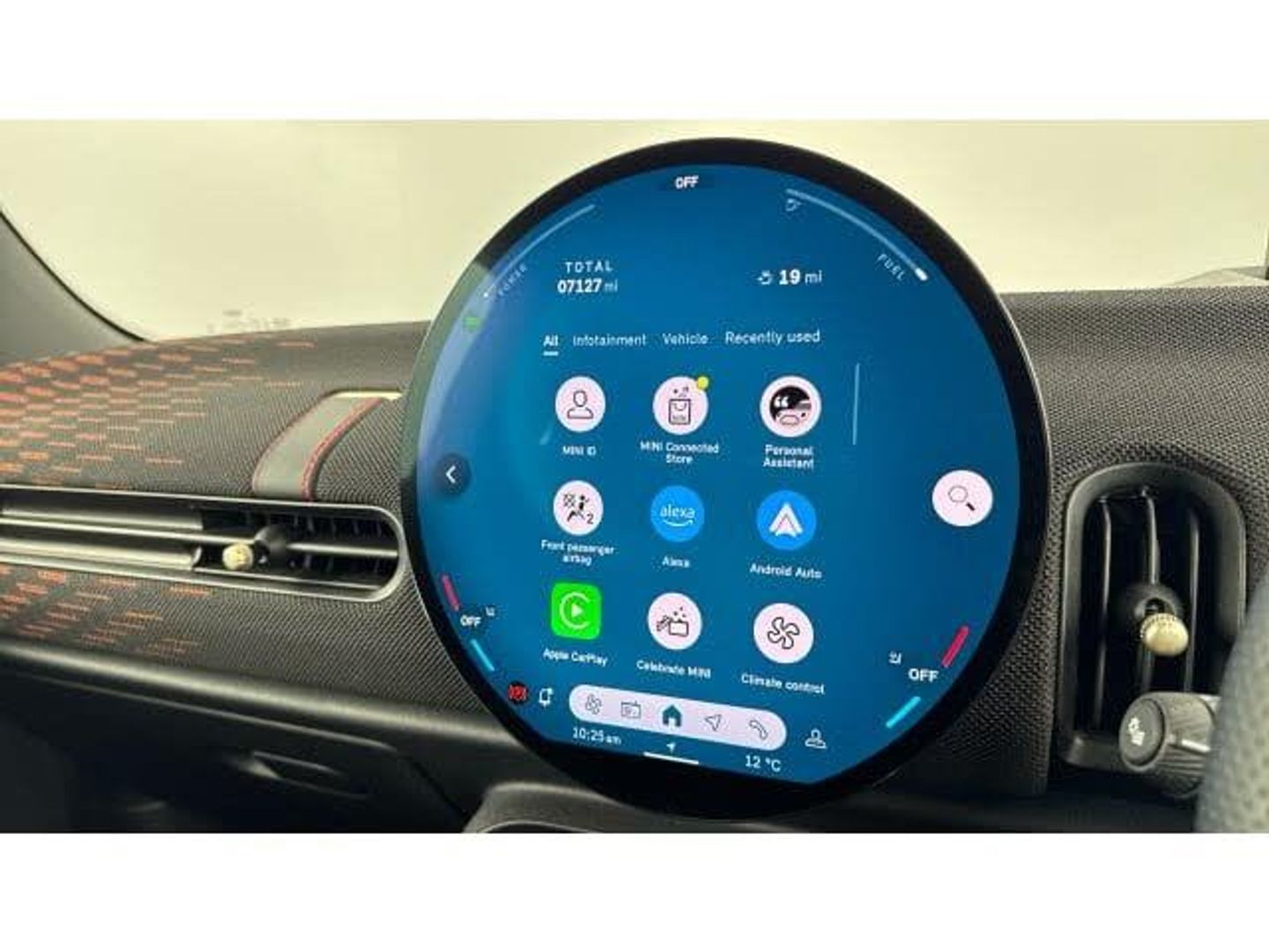 Air Conditioning, Metallic Paint, Cruise Control, Satellite Navigation, Alloy Wheels, Heated Seats, DAB Radio, Bluetooth, Parking Sensors, Stop Start, Low Mileage, Full Service History, USB, Park Assist, Manufacturer Approved, Keyless Entry-Push Button Start, Apple-Android Play, Rear Camera, Auto Lights& Rain Sensors, Floor mats, Heated rear window, Heated windscreen washer jets, Rear window wiper, Rain sensor window wipers, Electric front windows, Traction control, DSC - Dynamic Stability Control, Electronic parking brake, Anti-lock Braking System (ABS), Front and rear disc brakes, Compatible mobile phone bluetooth with audio streaming, Cruise control, Electro-mechanical speed dependant steering assistance, MINI Experience Modes, Central toggle bar, Gaming controller with intelligent personal assistant voice update, On board computer, Service interval indicator, Digital instrument cluster, Emergency call service, Mini navigation system, Circular OLED Screen