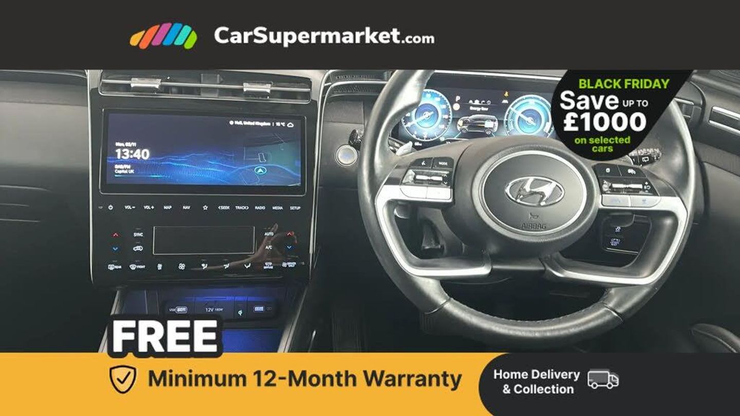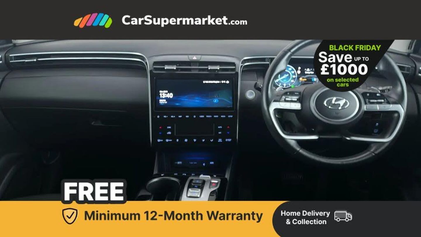Sat Nav, Android Auto, Apple CarPlay, Blind Spot Monitoring, Bluetooth, Cruise Control, Parking Sensors, Wireless Phone Charging, Digital Radio, Privacy Glass, Heated Front Seats, Heated Steering Wheel, Keyless Entry, 19" Alloy Wheels;This 2022 Hyundai TUCSON h T-GDi Premium boasts a clear vehicle history and has had only one owner, with its last service completed on 20 November 2024 at 15,614 miles. This Euro 6 compliant model features a 1.6 litre petrol hybrid engine and comes equipped with a range of notable features designed for comfort and convenience. These include heated front seats, a heated steering wheel, and cruise control with a smart adaptive speed control function that includes stop and go. For added safety and ease of use, it also offers blind spot collision avoidance assist and a wireless phone charging pad. The Hyundai TUCSON h T-GDi Premium offers a compelling driving experience, highlighted by its impressive acceleration of 0-62mph in just 8.0 seconds. This performance, combined with its low insurance group and generous boot space, positions it favourably against other vehicles in its class. These attributes indicate a vehicle that is not only efficient and practical but also provides an enjoyable and cost effective ownership proposition.