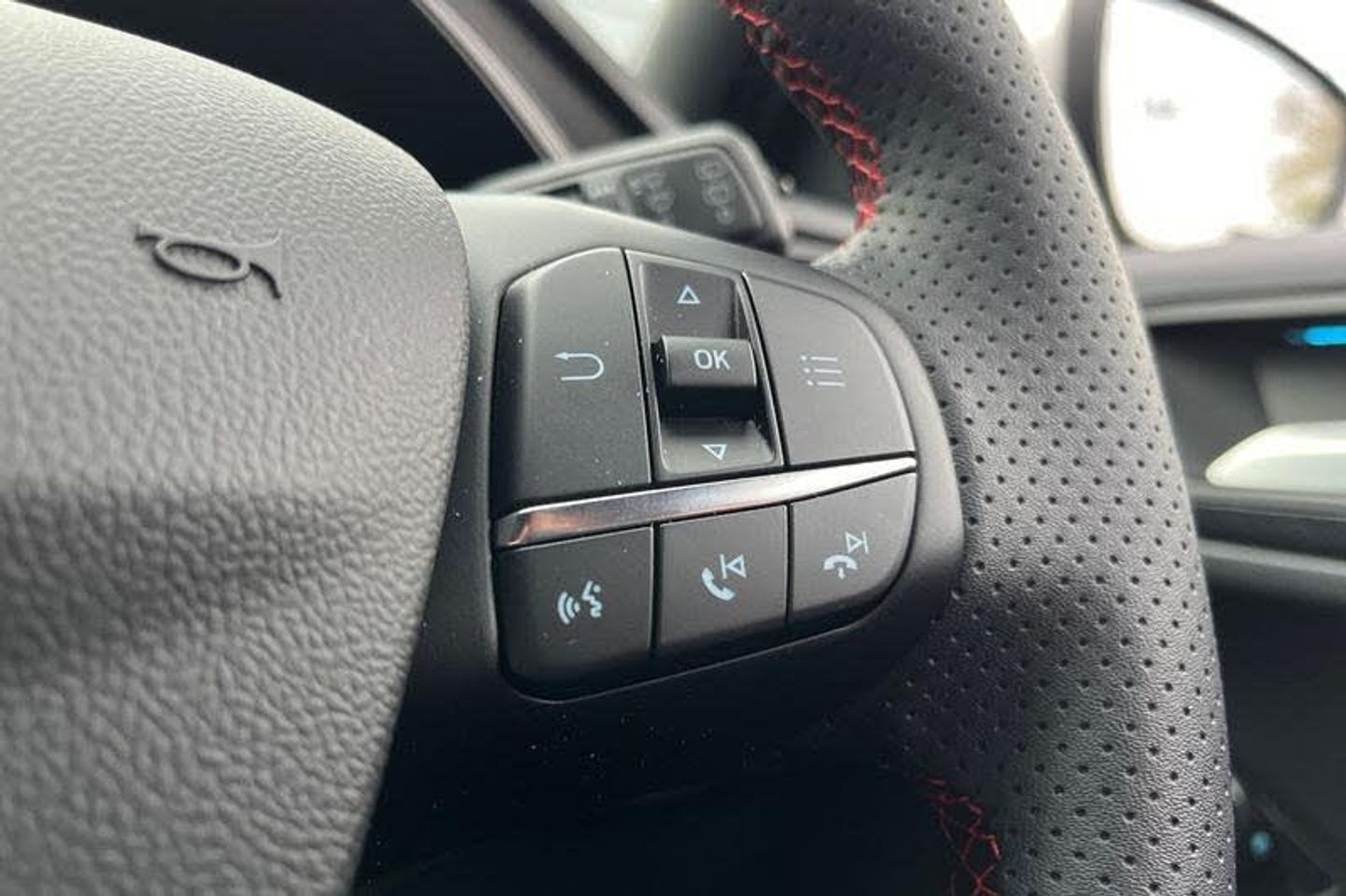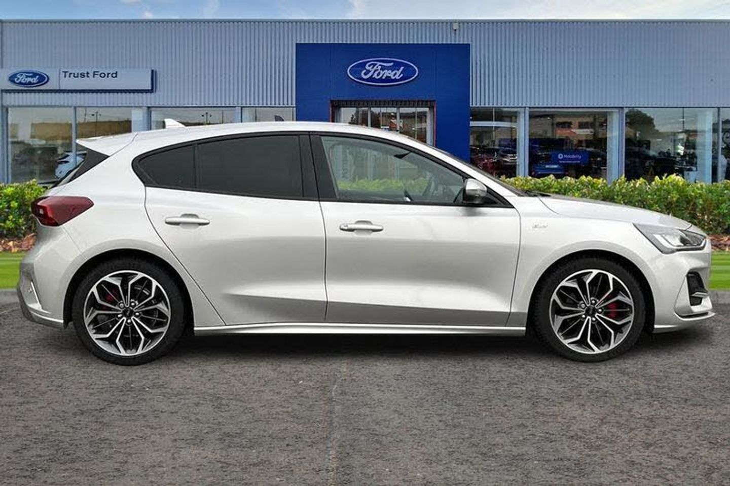 12.3 Digital instrument cluster, Bluetooth system, Digital clock, Easy fuel capless refuelling system, Eco mode, Ford SYNC4 Nav with 13.2'' touchscreen, DAB, Emergency Assistance, Apple Carplay & Android Auto, B&O Premium Audio with 10 speakers, FordPass Connect, Lane keeping system - lane keeping alert and lane keeping aid, PAS, Rev counter, Selectable drive mode, Service interval indicator, Trip computer, Wireless charging pad, Auto headlamps (on/off), Body coloured door handles, Electrically operated front and rear windows with one touch opening and closing, Electrically operated heated power fold door mirrors with puddle lamp with side indicators, Front variable intermittent wipers with electric wash, Heated rear window, LED daytime running lamp, LED rear lamps, LED third brake light, Polished twin tailpipe, Privacy glass, Quickclear heated windscreen, Rain sensor, Rear side wing doors, Tailgate wash/wipe, Unique ST-Line grille, full bodystyling kit, and large body coloured rear roof spoiler, 3 rear headrests, 3 seat bench in 2nd row, Dual zone electronic air temperature control, Full sensico premium upholstery, Height adjustable front headrests, Isofix child seat preparation, Load through ski hatch, Manual 2-way passenger seat adjust, Power 4-way driver seat adjust, with power lumbar adjust, Reach + rake adjustable steering column, Single front passenger seat, 3x3 point rear seatbelts, ABS+Electronic Brake force Distribution, Auto hold function, Driver airbag, EDL traction control, Electronic parking brake, Electronic stability control, Front and rear seatbelt reminder, Front inertia reel height adjustable seatbelts with pre-tensioners, Front passenger airbag, Front side airbags, Passenger airbag deactivate switch, Post collision braking, Pre collision assist with autonomous emergency braking and pedestrian/cyclist detection, Remote/power child rear door locks, Side curtain airbags, Three rear inertia reel lap/diagonal seatbelts, Tyre pressure monitoring system