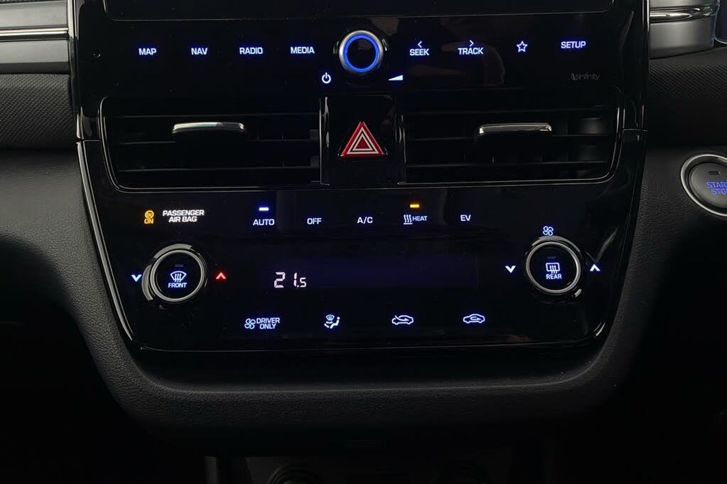 10.25in Widescreen Navigation with Bluelink and Mapcare 100 Percent MapCare Programme - 10 Years of Map Updates 12V Power Outlet 16in Alloy Wheels ABS - Anti-Lock Brake System Air Conditioning - Driver-Only Mode Air Conditioning - Single Zone Climate Control Airbags - Front - Front Side - Curtain and Drivers Knee Arm Rest - Front with Storage Automatic De-Fog System for Front Windscreen Automatic Dimming Rear View Mirror Automatic Headlights with Dusk Sensor Automatic Windscreen Wipers with Rain Sensor Autonomous Emergency Brake Blind Spot Detection System - BSD Bluetooth Connectivity Bumper Accents CCS Combo Rapid Charge Port - 50kW Centre Console - Tablet Storage Charging Cable - 7 Pin Type 2 Charging Cable - Emergency 3 Pin Connector - ICCB Cruise Control - Smart Adaptive Speed Control with Stop and Go Function Cup Holders - Front Daytime Running Lights - LED Deadlocks Door Mirror Puddle Lights Door Mirrors - Body Coloured Door Mirrors - Electric Adjustment and Heated with Power Fold Door Scuff - Chrome with IONIQ Logo Drive Mode Select - Button Driver Attention Alert - DAA Drivers Seat - Ventilated Drivers Seat Electric Adjustments Drivers Seat with Memory Function Drivers Supervision Instrument Cluster with TFT Display - 7in Electric Parking Brake with Auto Hold Function Electric Power Steering with Variable Drive Modes Electric Windows - Front and Rear Electric Windows - Front with Anti-Trap and One Touch Controls Electronic Stability Control - ESC Exterior Door Handles - Body Coloured with Chrome Insert Fog Lights - LED Rear Front Head Restraints - Vertical and Horizontal Adjustment Front Passenger Airbag De-Activation Switch Front Passengers Seat - Heated Front Passengers Seat - Ventilated Front Seat Back Pockets - Drivers Seat Front Seat Back Pockets - Passengers Seat HAC - Hill-Start Assist Control Head Restraints - Rear with Vertical Adjustment Headlights - Full LED Heated Rear Windscreen Heated Steering Wheel High Beam Assist Indicator Lights - Door Mirror - LED Interior Door Handles - Chrome Effect Interior Light - Centre Interior Light - Luggage Compartment Interior Light - Map Reading Lights Lane Departure Warning System with Lane Keeping Assist Leather Wrapped Steering Wheel Luggage Net Parking Sensors - Front and Rear Parking System - Rear Camera and Guidance System Passenger Seat Height Adjustment - Manual Phone Connection - Android Auto Phone Connection - Apple CarPlay Positioning Lights LED Privacy Glass Radiator Grille - True Grey Dedicated Grille Radio - RDS and Digital Radio - DAB Rear Air Vents in Centre Console Rear Bumper - Two-Tone Rear Cross Traffic Alert - RCTA Rear Lights - LED Rear Seats Outer - Heated Rear Spoiler with Integral LED Brake Light Rear View Monitor Regenerative Brake Shift Paddles Remote Central Locking Seats - Drivers Electric Lumbar Support Seats - Heated Drivers Side Sill Moulding Smart Key - Keyless Entry with Engine Start-Stop Button Solar Glass with Windscreen Shade Band Speakers - Infinity Sound System - 1 Centre - 2 Tweeters - 2 Front - 2 Rear - 1 Subwoofer and 1 Ext. Amp Split Folding Rear Seats - 60-40 Steering Wheel with Audio - Phone and Cruise Controls Sun Visors with Driver and Passenger Illuminated LED Vanity Mirrors Sunglasses Holder Tyre Pressure Monitoring System with Individual Tyre Display Tyre Repair Kit USB - Drivers Arm Rest - Charging Only USB Connection - Centre Console Window Surround - Chrome Finish Windscreen Washer Fluid Sensor and Warning Indicator Wireless Phone Charging Pad eCall