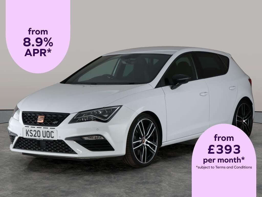 Experience thrilling drives with this dynamic white Seat Leon Cupra. Enjoy luxury with Alcantara heated seats, keyless entry, and adaptive cruise control. Stay connected via Apple CarPlay and Bluetooth audio, while wireless charging keeps your devices powered up. The advanced digital display and driving modes put you in control, and LED headlights ensure clear visibility. Parking made easy with front and rear sensors. Discover excitement and innovation every time you get behind the wheel. 4 services recorded, last serviced on 07/09/2025 at 19,748 miles. MOT to 10/08/2026. Visit our website for service history, online valuation, full vehicle specification plus multiple images. Any feature/option specified here is from 3rd party data. We cannot guarantee the accuracy of any specification supplied by a 3rd party. We recommend that you physically check the specification of the vehicle on site prior to purchase. This information does not form part of the buying contract. Terms & Conditions apply. We have over 2,000 cars available from our 10 national branches, check our website to see all our stock. Our Trustpilot rating is 4.4/5 with over 9,000 reviews.