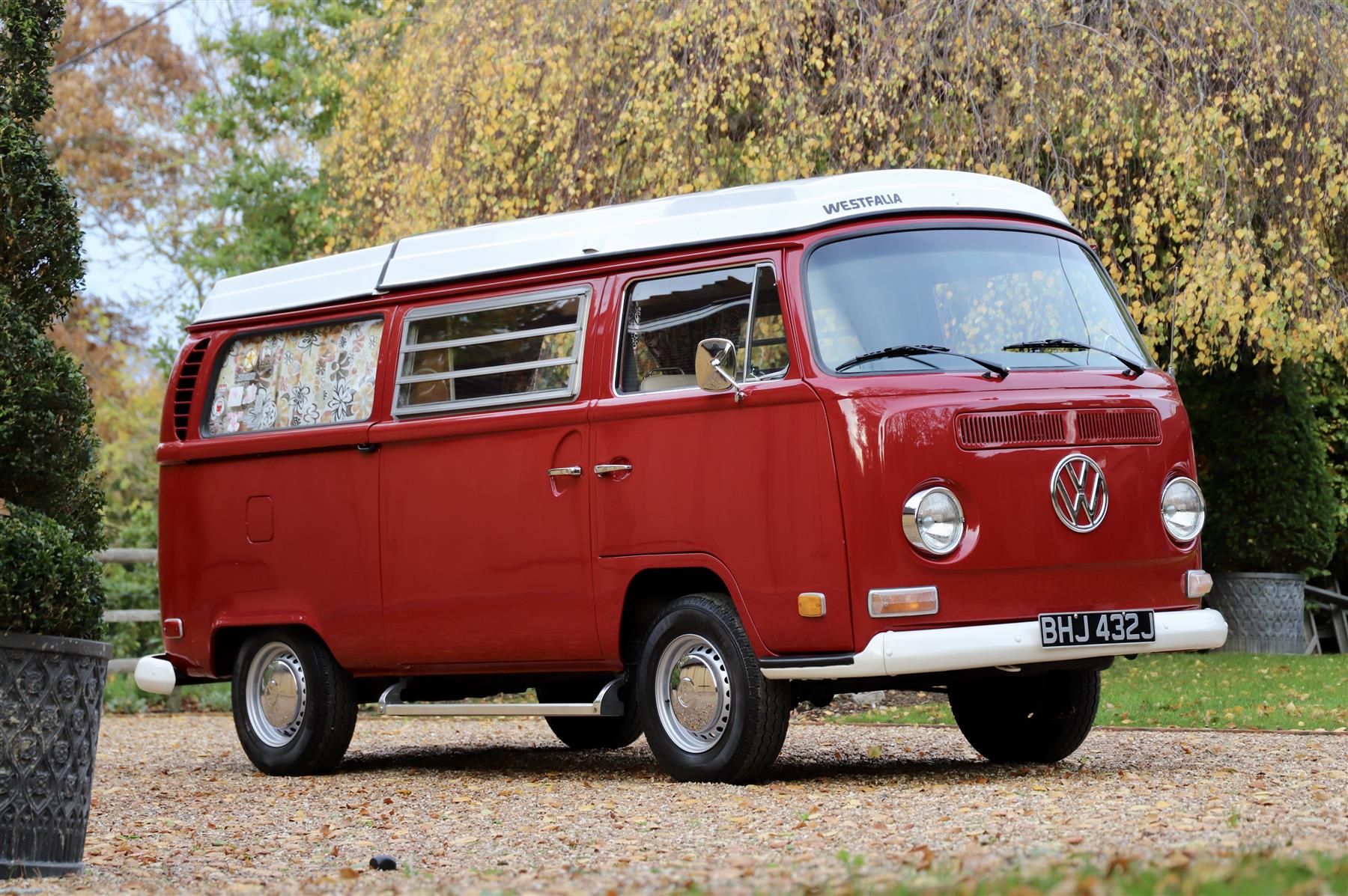 This bus is no exception to the rule and formed the perfect basis for a gentle restoration and repaint in what has to be the most beautiful colour of all time, Chianti Red. This bus is a genuine Westfalia featuring the fibre glass front elevating roof and rear roof rack. This has all been completely stripped and repainted by us including a brand-new roof canvas November 2025. The roof is better than it would have been from factory.