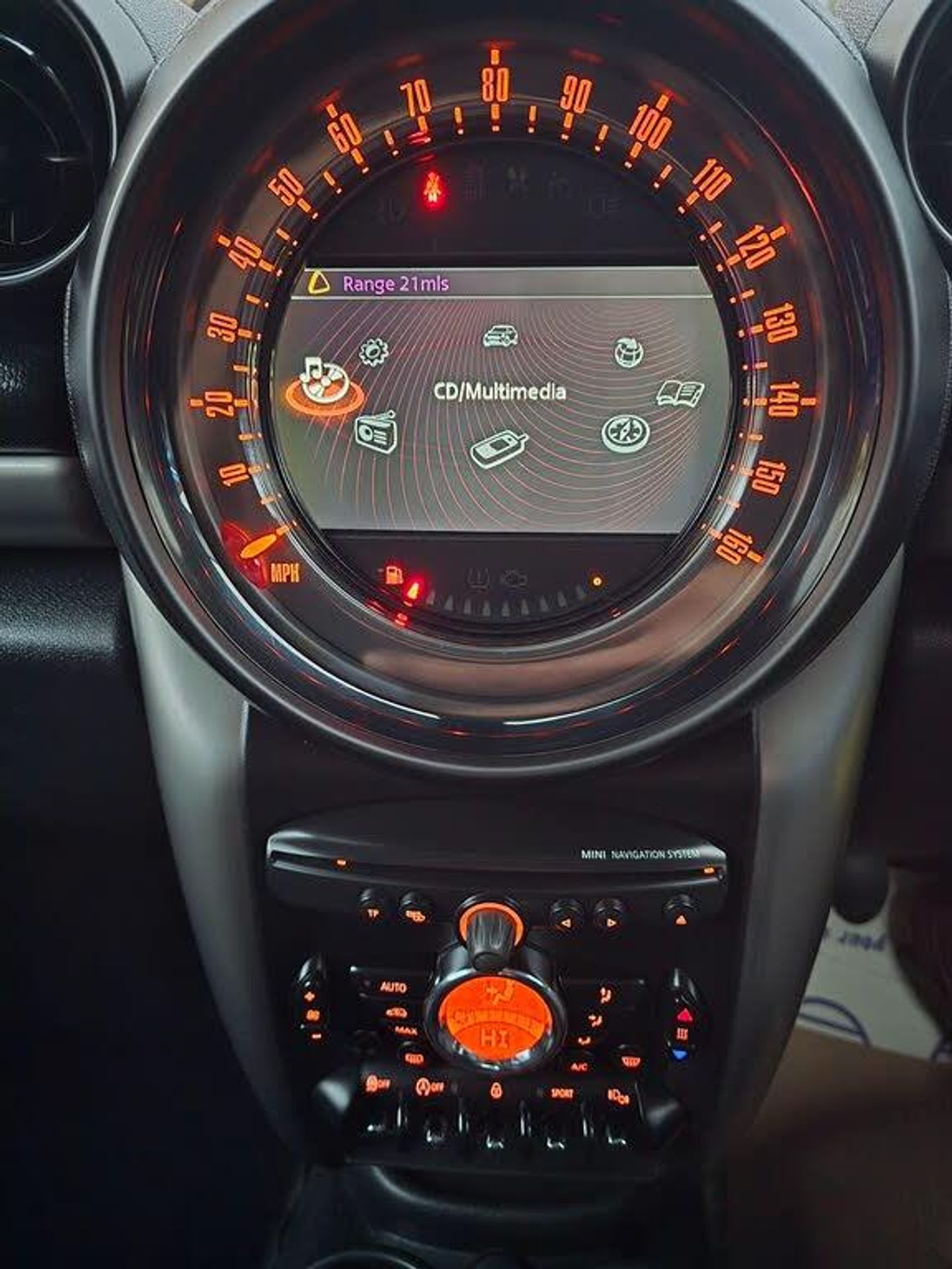 12V Socket - Luggage Compartment, 17in Alloy Wheels - 5-Star Double Spoke Light, 3rd Brake Light, 6.5in High-Resolution Colour Liquid-Crystal Display, ASC+T - Automatic Stability Control and Traction, Air Conditioning - Automatic, Airbags - Driver, Airbags - Front Passenger, Airbags - Front Passenger with Deactivation Switch, Airbags - Front Side, Airbags - Head, Alarm - Thatcham CAT1, Anti-Lock Braking System - ABS, Aux-In Connection, Basic Bluetooth Function with USB Audio, Bike Rack Preparation at Rear, Brake Assist, Brake Pad Wear Indicator, CBC - Cornering Brake Control, Central Bass Hi-Fi System, Central Locking - Activated At 10mph, Central Locking - Remote, Centre Rail, Child Seat ISOFIX Attachment, Cooled Glovebox, Cupholders - Two in Front, DAB Tuner, Door Ellipse and Downtubes - Dark Silver, Door Handles - Chrome Plated, Door Handles - Interior - Chrome Plated, Door Mirrors - Electrically Adjustable and Heated, Dynamic Stability Control - DSC, EBD - Electronic Brake-Force Distribution, Electric Windows - One Touch Up and Down Front and Rear, Electronic Power Steering, Embellisher at Bottom Edge of All Windows - Chrome Plated, Floor Mats - Velour, Frame Chrome-Plated Radiator-Grille Bars Silver, Front Fog Lights, Grab Handles, Halogen Lights for Low Beam and High Beam Headlights, Headlight - Beam-Throw Control Electrical with Manual Adjustment, Headlights - Automatic Lights-On, Headlights - Chrome Bezels, Headlights - Follow Me Home, Headlining - Beige, Heated Front Windscreen Washer Jets, Hill Assist, Interior Light Pack, Interior lights - Integrated into Centre Front Headliner including Two Reading Lights, Lashing Eyes in Luggage Compartment, MINI Mobility System, MINI Navigation System, MINIMALISM Fuel Saving Technology, Microfilter, Mirror Caps in Body Colour, On-Board Computer, PDC - Park Distance Control - Rear, PEPPER Pack, Passenger Seat Height Adjustable, Radio VISUAL BOOST, Rain Sensor, Rain Sensor and Automatic Headlight Activation, Roof Rails - Silver, Roof in Body Colour, Seats - 40:20:40 Split Rear Backrests, Seats - Height Adjustable Drivers, Second Radio Remote Key, Security Locking Wheel Bolts, Shift Point Display, Side Scuttles with Integrated Indicators, Steering Column Height and Length Adjustment, Steering Wheel - 2-Spoke Leather, Storage Compartment Pack, Storage Net in Footwell on Passenger Side, TPWS - Tyre Pressure Warning System, White Direction Indicators Lights, CHILI Pack, Seats - Sports Front, Multifunction Controls for Steering Wheel, 3-Spoke Sport Leather Steering Wheel, Interior World - Carbon Black, Cloth-Leather Parallel Lines - Light Tobacco