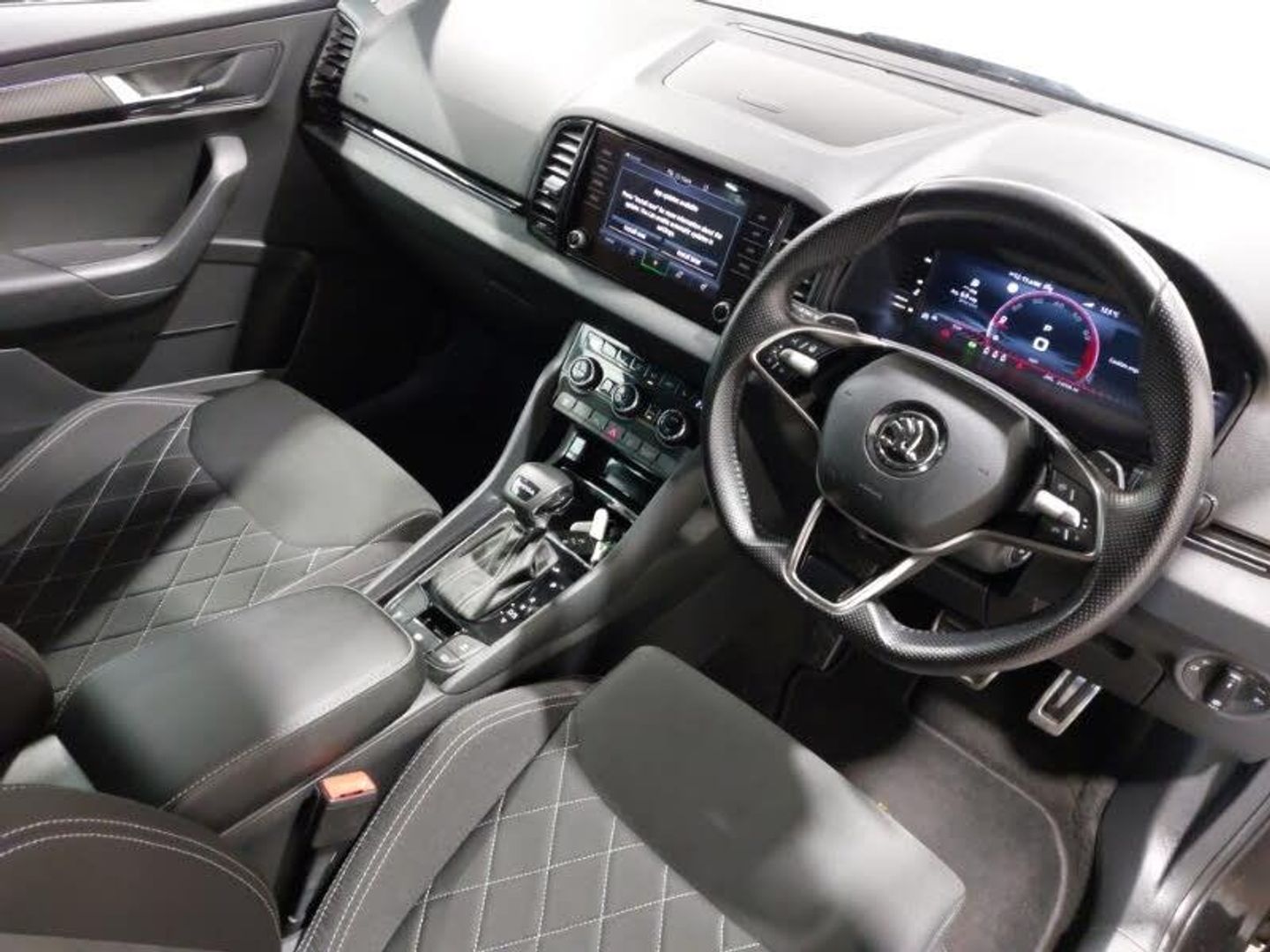 19" Sagittarius anthracite alloy wheels, 8" Digital display, SmartLink wireless for Apple and wired for Android, Virtual Cockpit - 10.25" digital display, Virtual pedal with electrically operated boot door, Wireless smartphone charging, DAB radio with Bluetooth, Privacy glass, Isofix child seat preparation outer rear, LED Interior lighting pack with Skoda welcome logo - Karoq, Light Pack - Karoq, Non Smokers pack