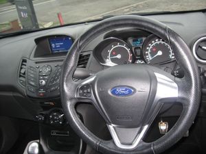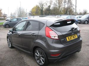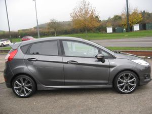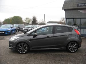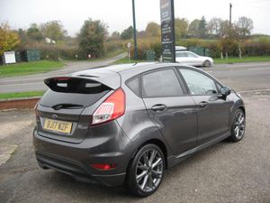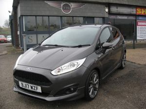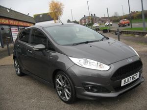 ZERO DEPOSIT FINANCE AVAILABLE SUBJECT TO STATUS. FINANCE AVAILABLE AND ARRANGED, FREE 6 MONTHS WARRANTY T+CS APPLY. PART EXCHANGE WELCOME. ONLY 33768 MILES FROM NEW WITH 7 FORD SERVICES, MOT 11-08-2026, STOP START FIESTA 1.0 TURBO ECO BOOST ST-LINE 5 DOOR. Finished in metallic grey with ST-Line colour coded body kit and roof spoiler, 17 grey alloy wheels, daytime running lights, front fog lights, tinted rear windows, black pattern cloth upholstery with red stitching, monitor display with sat nav, DAB radio, cd stereo, usb socket, voice command system, air conditioning, front electric windows, electric door mirrors, heated front screen, trip display, steering wheel controls, remote central locking, power steering, abs, traction control, tyre pressure monitor, front and side airbags, iso fix rear seat fasteners, looks and drives really well, must be seen. PART EXCHANGE, FINANCE AND WARRANTY AVAILABLE. AWAITING PREPARATION.