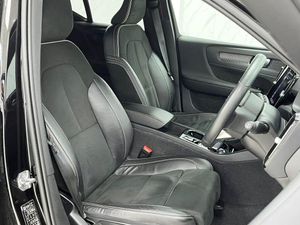 12.3in Active TFT Crystal Drivers Information Display, 12V Socket - Front Tunnel Console and Cargo Compartment, 19in Alloy Wheels - 5 Double Spoke - Diamond Cut - Matt Black, 2-Zone Electronic Climate Control and Rear Air Vents, 7m 10amp Charge Cable with 3-Pin Plug and 7m 1-Phase 16amp Type 2-Mode 3 Charge Cable, 9in Centre Console Portrait Touch Screen, A-Pillar Parking Ticket Holder, Adaptive Brake Lights including High Level LED Brake Light, Adjustable Steering Force, Ambient Door and Instrument Panel Lighting, Anti-Theft Alarm including Immobiliser - Volume Sensor and Level Sensor, Autodimming Interior Mirror, Autofolding Heated Power Door Mirrors, Automatic Headlight Levelling System, Automatic LED Headlights with Active High Beam incorporating Day Running Lights, Black Stone Door Mirrors, Black Stone Roof, Bluetooth Handsfree System, Care Key with User Defined Top Speed, Centre Console Cupholders and Storage, City Safety, Cruise Control, Cutting Edge Aluminium Inlays, DAB - Digital Audio Broadcasting Radio, Dark Tinted Windows - Rear Side Windows and Cargo Area, Drive Mode Settings, Driver Knee Airbag, Dual Stage Driver and Passenger Airbags, Electric Front Axle Drive, First Aid Kit, Front Aluminium Tread Plates, Front Door Pocket and Front Cupholder Illumination, Front Footwell Illumination, Front Reading Lights and Theatre Lighting, Front Seat Cushion Extensions, Front Tunnel Net Pocket and Integrated Waste Bin, Front and Rear Power Windows, Gear Knob - Leather, Glovebox Bag Hook, Glovebox Compartment Illumination, Height and Reach Adjustable Steering Column, Height and Tilt Adjustable Driver Seat, High Gloss Black Deco Lower Front Bumper, High Gloss Black Front and Rear Skid Plate, High Gloss Black Mesh Front Grille with Surround, High Gloss Black Window Trim Surround, High Gloss Centre Tunnel Deco, Hill Descent Control, Hill Start Assist, Home Safe and Approach Lighting, IC - Inflatable Curtains - Full Length, ISOFIX Attachment - Outer Rear Seats, Illuminated Vanity Mirrors, Key Integrated Remote Control Central Locking including Fuel Flap with Deadlocking System and Auto Open-Close Power Windows, Keyless Start, Lane Keeping Aid with Driver Alert Control, Load Protection Net, Locking Wheel Nuts, Low Speed Exterior Sound Speaker, Luggage Compartment Illumination, Mechanical Child Locks - Rear Doors, Multi-Directional Lumbar Support, Multicolour Theatre Lighting, Oncoming Lane Mitigation, P-SIM Card - Access to 1 Year - 100GB of Data, Passenger Airbag Cut-Off Switch, Power Operated Tailgate, Power Parking Brake with Auto Hold Function, Private Locking for Tailgate, Rain Sensor - Automatic Windscreen Wiper Activation, Rear Armrest with Storage and Cupholders, Rear Clothes Hook, Rear Park Assist, Rear Reading and Courtesy Lights, Recharging Port Located in Nearside Front Wing, Road Sign Information Display, Roof Antenna, Roof Rails - Integrated High Gloss Black, Roof Spoiler, Run-Off Road Mitigation, Run-Off Road Protection, SIPS - Side Impact Protection System, SIPS Airbags - Front Seats, Seatbelt Reminder and Pretensioners, Seats - Passenger Height Adjustment, Sensus Connect with High Performance Sound, Sensus Navigation, Slippery Road and Hazard Light Alert, Speed Limiter, Speed Sensitive Steering, Sports Chassis, Sports Floor Mats, Sports Pedals, Sports Tailored Steering Wheel, Stability and Traction Control, Steering Wheel Remote Infotainment Controls, Tailgate Illumination, Tyre Pressure Monitoring System, Tyre Sealant Kit and Compressor, Underfloor Cargo Storage, Vanity Mirrors with Ticket Holder, Vehicle Deceleration Control, Versatile Split Folding Rear Seats - 60-40, Visible VIN Plate, Voice Activated Control for Key Functions, Volvo Cars Services with App, WHIPS - Whiplash Protection System - Front Seats, Warning Triangle, Black Stone, Leather-Nubuck - Charcoal