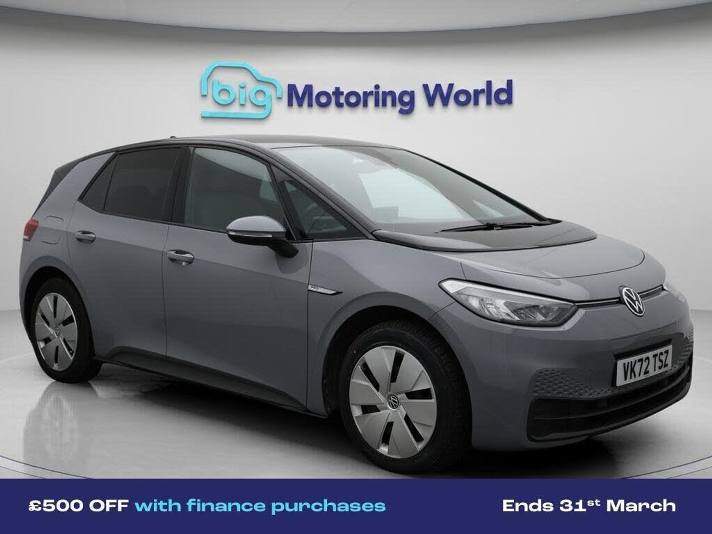 £500 towards your finance depo-Our Volkswagen ID.3 is finished in Grey. Specification includes a range of fantastic features including £500 towards your finance deposit, Apple CarPlay, Adaptive Cruise Control, Lane Assist, TV, Privacy Glass, Gesture Control, Rear View Camera, Internet, Bluetooth Specification information is supplied by CAPHPI and may vary to the actual car. This data does not form any part of a buying contact. Please check specification prior to purchase in-store. The MOT is valid until October 2026, visit bigmotoringworld.co.uk for more photos, a 360 tour, service history and a free HPI report.Were BIG on peace of mind and this Grey Volkswagen ID.3 has completed our comprehensive 200 point inspection and passed all checks. Its ready for you to drive away with immediate collection in-store. We include a 90-day warranty as standard plus an option to extend for up to 3 years.Reserve this car exclusively for you, safely and securely at bigmotoringworld.co.uk, with a fully refundable £99 deposit. Test drive before you buy, with no commitment, no hassle and a completely haggle free experience. Still searching and want to see thousands more cars? We are BIG on choice with over 8000 cars to choose from.Visit our award winning web site bigmotoringworld.co.uk.Were Big Motoring World and were BIG on what matters to you.