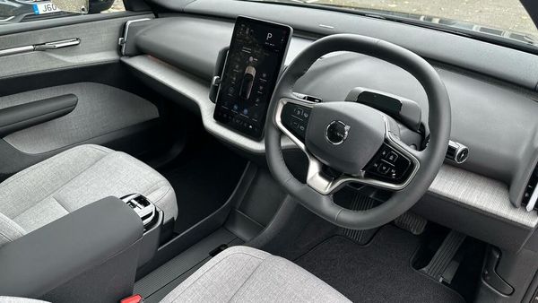 Tinted rear windows, 20? 5-spoke glossy black diamond cut, Heated front seats and steering wheel, Passenger airbag cut-off switch, Lane change assist, Sliding cupholders and storage, Seat track position sensors. driver and passenger, Rear LED lights, Air vent decor. transparent, Dual-stage airbags. passenger, Roof spoiler. high-gloss black, Intelligent Speed Assist (ISA), Park Pilot Assist, Park assist. front and rear, Harman Kardon Premium Sound, Power passenger seat, Shift-by-wire single speed transmission, ISOFIX child seat attachment, Power driver seat, Post impact braking, Temporary mobility kit, Panoramic roof, Double lock, Rear Cross Traffic Alert with Autobrake, Door mirror covers. high-gloss black, Interior illumination. high level, 12.3-inch centre display, Run-off Road Mitigation, Direct occupant sensing, Lane Departure Warning, 5 seats, Tinted rear windows, Tailored Wool Blend upholstery, Power 4-way lumbar support. driver, 22kw On-Board Charger (OBC), Humidity sensor, Heat pump, Traffic Jam Assist, Power tailgate, Digital key plus, Driver airbag, LED illumination. load compartment, Alarm, Adaptive cruise control, One pedal drive, Summer tyres, Wireless Apple CarPlay and Android Auto, Pilot Assist, Wireless phone charging, First-aid kit, Road Sign Information, Power outlet. load compartment, Speed limiter, 20? 5-spoke glossy black diamond cut, LED headlights with active high beam, Air quality measurement and remote cabin air pre-cleaning, Door mirrors with ground lighting, Vanity mirrors, Rear-wheel drive (RWD), Driver alert system, Child safety lock, Lane Keeping Aid, Hill Start Assist, Front and rear USB-C ports, Flax decor, Alcohol lock software (not available in the UK), Collision avoidance and mitigation, 360° camera. 3D view, Low speed autobrake. rear, Warning triangle, Auto-dimmed inner and door mirrors, Rear Collision Warning, LED headlights, 5G capability, Two-zone climate system, Fog lamps. rear, Heated front seats, Side impact protection, Digital Audio Broadcasting (DAB+), Heated steering wheel, Front Cross Traffic Alert, Hill Descent Control, Key tag, Air quality system, Door opening alert, Ambience themes, Rear phone storage, Large door pockets, Tailored sports steering wheel, Inflatable Curtain, Advanced sensing technology, Comfort chassis, Oncoming Lane Mitigation, Intersection autobrake, Pedestrian and cyclist steering avoidance, Rain sensor, Oncoming Mitigation by Braking, Blind Spot Information System (BLIS), Whiplash injury protection, Google Assistant. Google Maps and Google Play Store, Volvo EX30 App, Over-the-air updates (OTA), Removable rear storage box, Front storage, NFC smart card key, Front load compartment, Textile interior cabin floor mats, Charging station cable. 5m (22kW), Flexible load floor