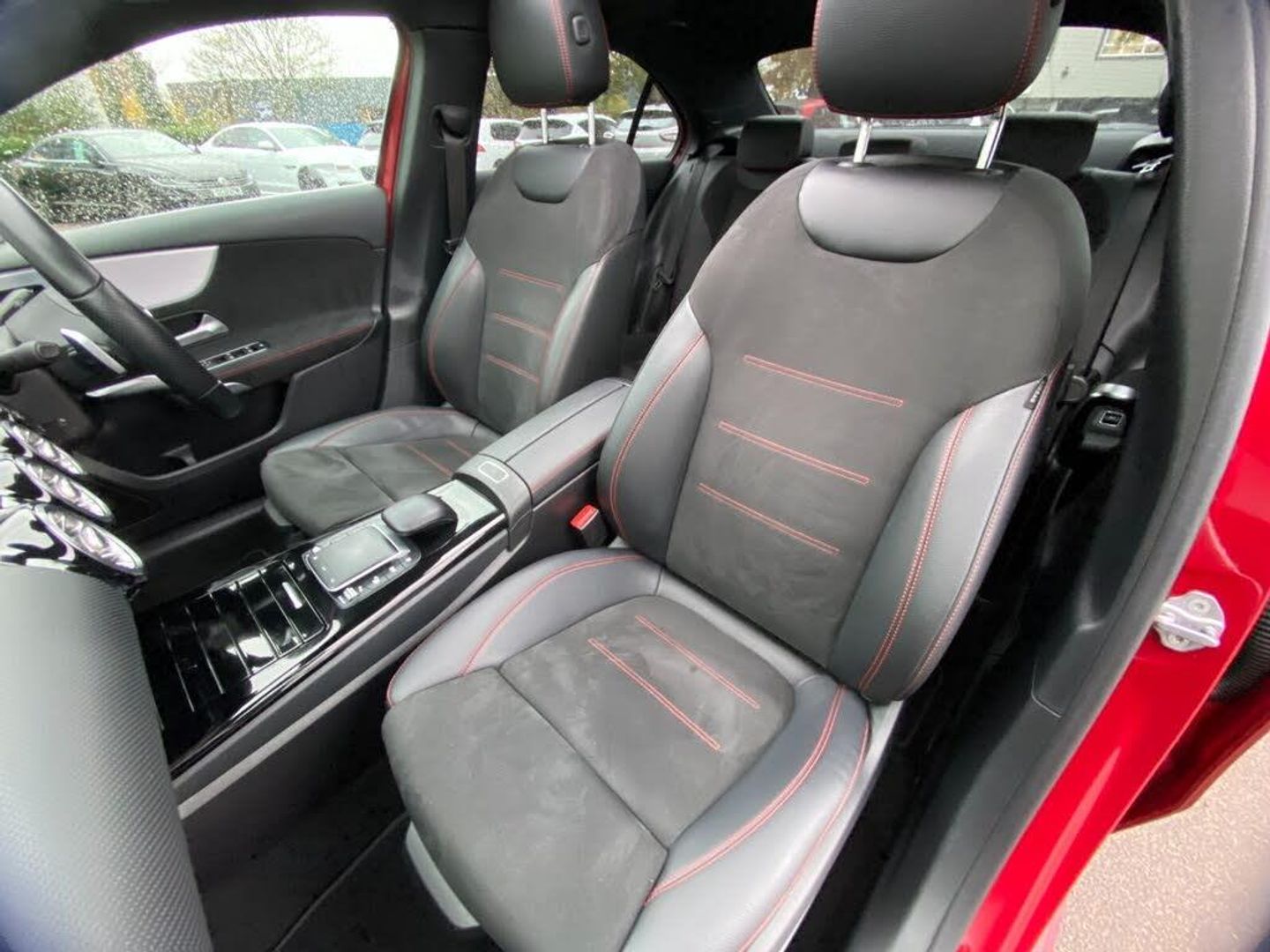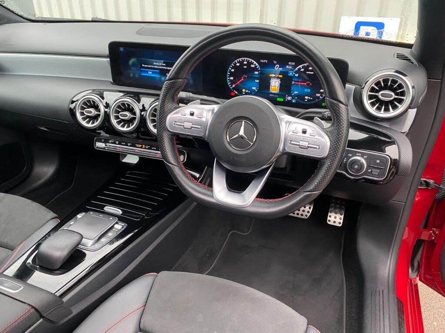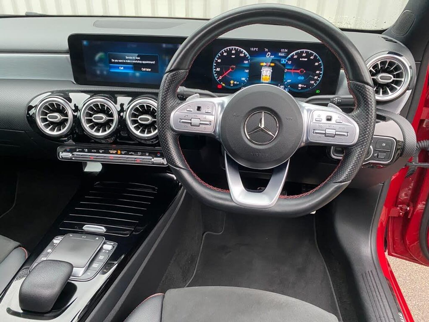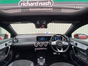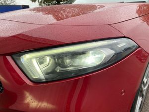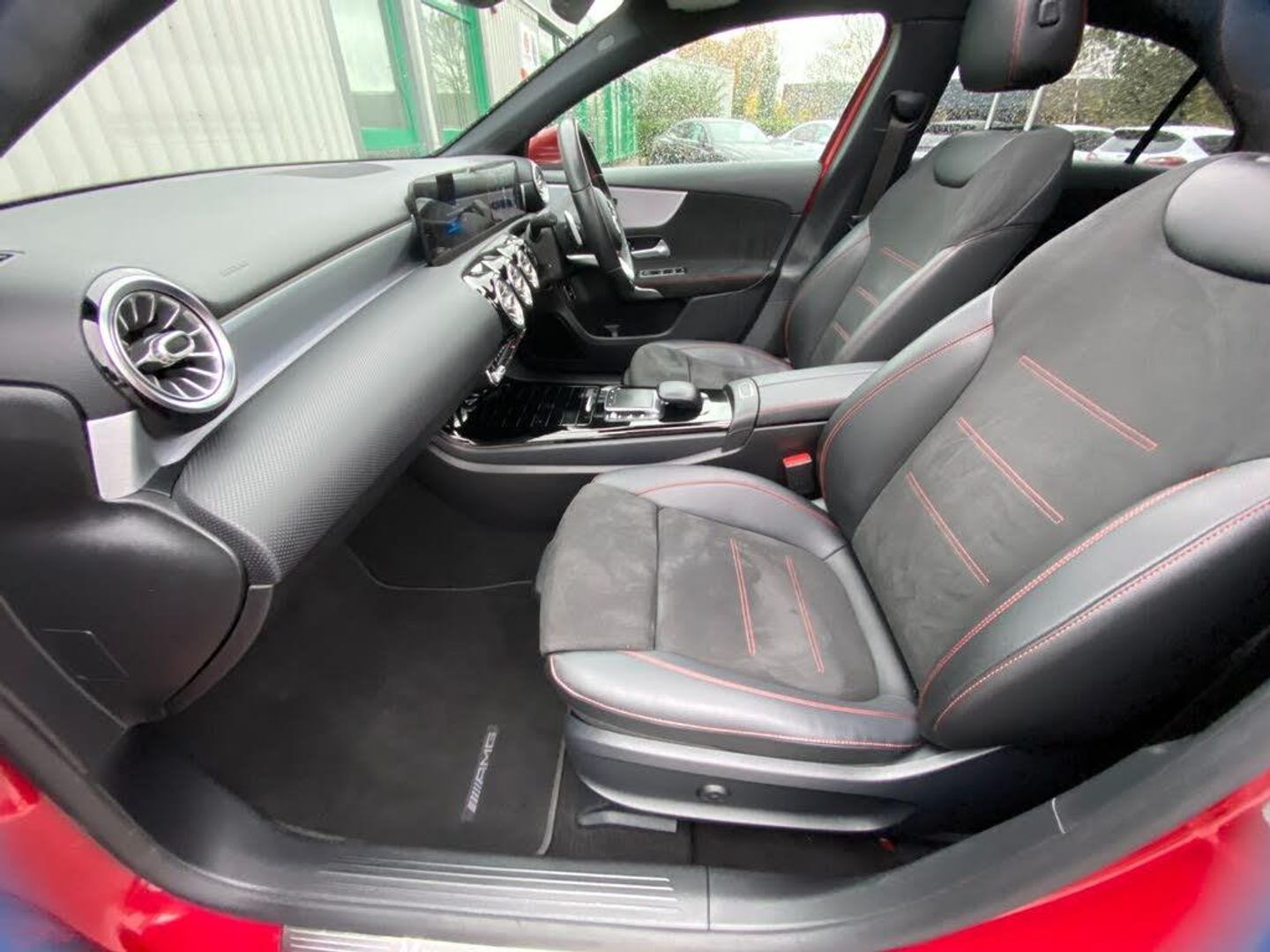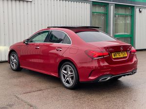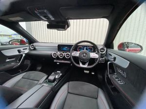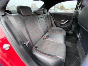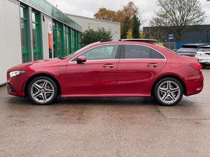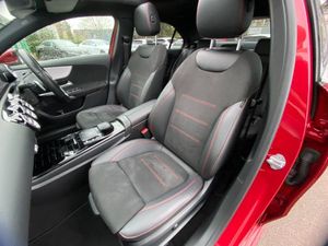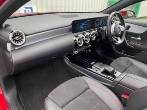10.25" Digital instrument cluster display screen, 10.25" media display, 180 degree rear view camera with parking guidelines, Acoustic ambient protection, Active lane keep assist, Active park assist with parktronic system including front and rear parking sensors, Attention assist, Brake pad wear indicator warning light, Car wash mode, Direct steering, Dual bluetooth interfaces, DYNAMIC SELECT with a choice of driving modes (ECO, Comfort, Sport and Individual), ECO start/stop function, Fluid level warning indicator for fuel, oil, coolant and washer fluid, Hard-disk navigation, Hey Mercedes Voice activation, Lamp failure indicator, MBUX augmented reality for navigation, Mercedes me connect including emergency call system, accident recovery, breakdown and maintenance management, Outside temperature gauge, Owners manual in English, Pre-installation for private car sharing, Pre-installation for Vehicle Monitoring, Pre-installation for Vehicle Setup, Preinstallation for Mercedes Benz link, Service indicator (ASSYST), Smartphone integration with Apple CarPlay and Android auto, Traffic sign assist, Trip computer, Wireless charging, 7.4 kW monophase on board charger, Comfort suspension, Mode 3 charging cable 11 kW, Rear axle multi-link, 10 speakers, 2 USB ports (type C) in rear stowage compartment and one in front of center console, DAB Digital radio, MBUX multimedia system with DAB digital radio and touchpad including satellite navigation, Mercedes-Benz advanced sound system - 225W, 4 Electric Front and Rear windows, Adaptive brake lights, AMG bodystyling - Front apron with splitter in chrome, rear apron with chrome trim and chrome visible trim elements in tailpipe, Black weather strip, Body colour bumpers, Body colour door handles, Body colour side skirt, Body coloured door mirrors, Chrome beltline trim, Diamond radiator grille with chrome pins and silver louvre + chrome insert, Electric adjustable and heated door mirrors with integrated LED side indicators, EQ badging, Exhaust system - Twin visible tailpipes in polished stainless steel, Headlamp assist automatic headlamp activation, Heated glass rear windscreen + timer control, Illuminated front door sill panels with Mercedes-Benz lettering, LED high performance headlamps with integrated LED daytime running lights, LED tail lamp, LED third brake light, Multibeam LED with adaptive highbeam assist plus, Panoramic sliding sunroof, Privacy glass, Radio aerial, Rain sensing windscreen wipers with two sensitivity settings, Rear fog lights, Window line trim strip in chrome, 3 pin charging cable plug, 3 Spoke flat bottom leather multi function steering wheel with perforated leather in grip area, 40:20:40 split folding rear seats, Artico man-made leather/Microfibre Dinamica upholstery with red contrast stitching, Auto Mercedes-Benz child seat recognition sensor, Black air vents with surround in silver chrome, Black roof lining, Brushed stainless steel sports pedals with rubber studs, Charging socket, Controller on centre console with chrome surround, Electrically adjustable front memory seats including lumbar support, Floor mats with stitched edging and AMG lettering, Front centre armrest with storage compartment, Front seat backs luggage nets, Front seat cushion length adjustment, Front sports seats with adjustable head restraints, Galvanished gear shift paddles on steering wheel, Heated front seats, Height/reach adjustable steering column, Interior lighting - 64 colour Ambient lighting, Interior mirror with reading lamps in black and frameless, Pre-entry climate control, Rear armrest with 2 cupholders, Rear head restraints, Seat occupancy sensor for front passenger seat, Stowage compartment in centre console with retractable cover, Sunvisors with illuminated vanity mirrors, Touchpad on center console, Twin front cupholders, Two zone thermotronic luxury automatic climate control, Light and sight pack - A Class, Mirror package - A Class, Seat comfort pack - A Class, 3 rear 3 point seatbelts, ABS with Brake Assist, Active bonnet, Adaptive brake assist with hold function and hill start assist, Black seatbelts, Childproof locks manually operated for rear doors and electrically operated for rear power windows, Crash responsive emergency lighting, Driver and passenger head and side airbags, Drivers knee airbag, Dual stage driver/passenger airbags, Electronic parking brake, ESP curve dynamic assist, ESP with ASR, Front and rear seatbelt reminder, Front brake callipers with Mercedes Benz lettering, ISOFIX and top tether child seat fixing points in two outer rear seats, Perforated front brake discs, Radar based regeneration, Tyre pressure monitoring system, Warning triangle and first aid kit, Window airbags, Alarm system/interior protection/immobiliser, Keyless entry lock/unlock, Keyless Go, Remote central locking and crash sensor with emergency opening function, Urban guard vehicle protection system with immobiliser and interior protection, Light aluminium with longitudinal grain interior trim, 18" AMG 5 twin spoke light alloy wheels in titanium grey with highsheen finish, Summer tyres, Tirefit sealant kit