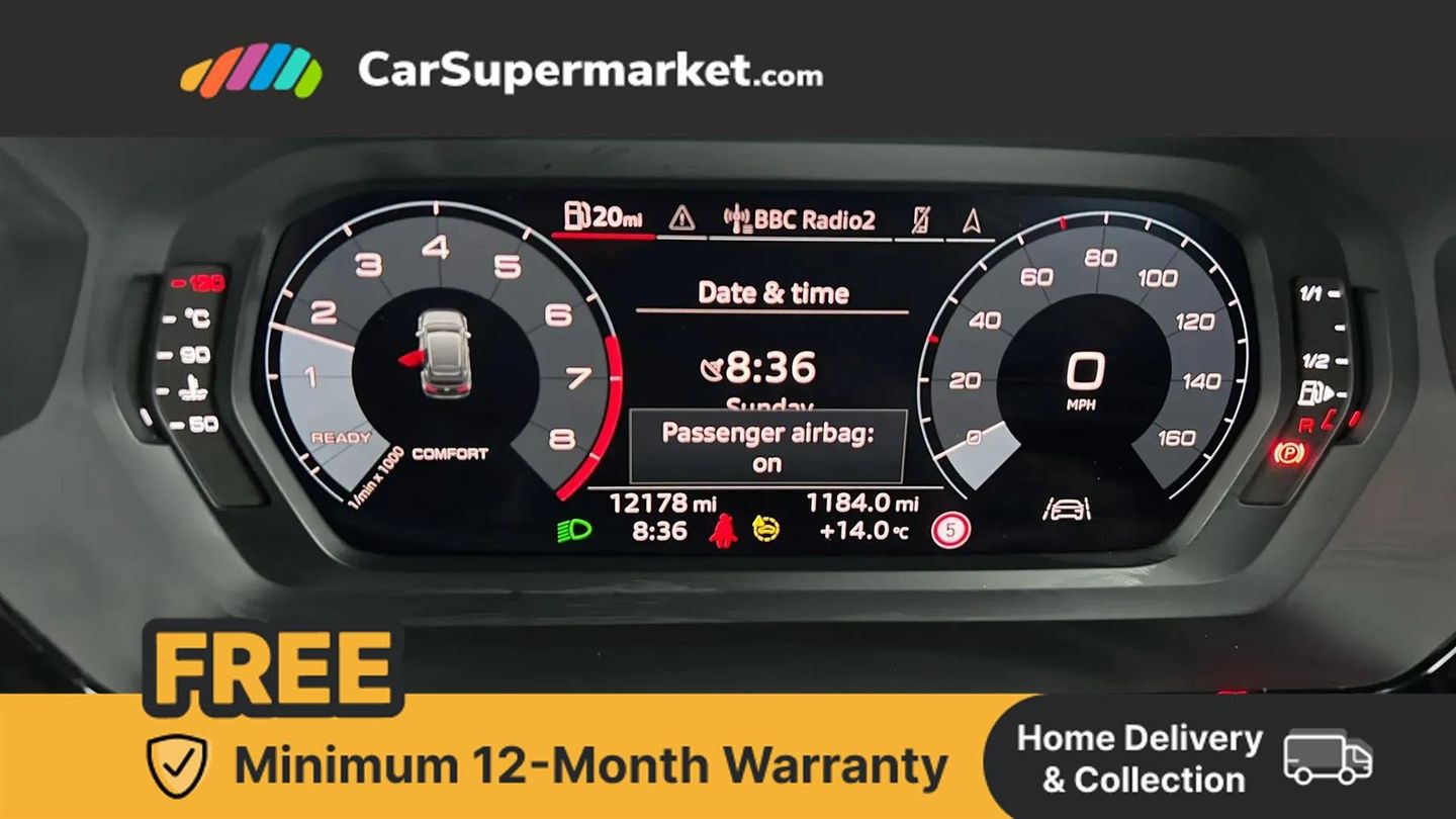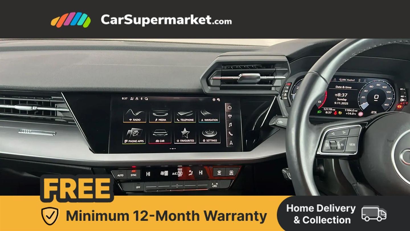 Apple CarPlay/Android Auto, Audi Virtual Cockpit, Bluetooth, Traffic Sign Recognition, Cruise Control, Lane Departure Warning, Sat Nav, Parking Sensors, Digital Radio;This Audi A3 TFSI Sport from 2023 presents an exceptional ownership proposition, having a single owner and boasting an impressively low mileage of just 12,177 miles. Its last service was completed on 7th November 2025 at 12,177 miles. Notable features include a Bluetooth interface for seamless connectivity and rear parking sensors to aid with manoeuvring.