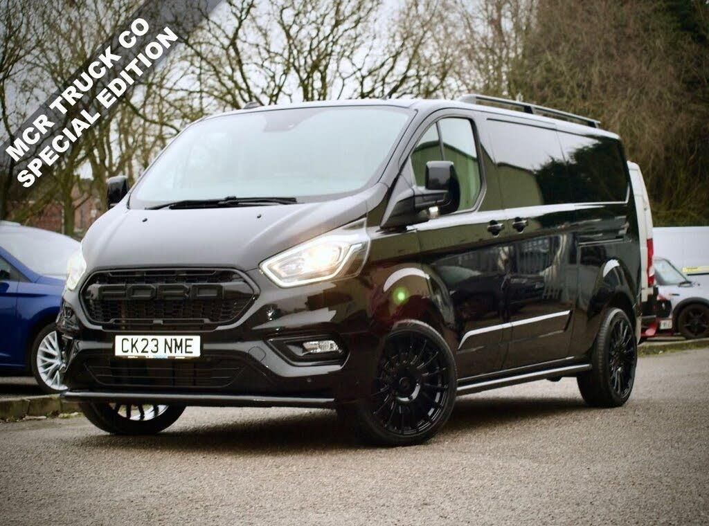 FORD TRANSIT CUSTOM 2.0 300 EcoBlue LIMITED Panel Van, Automatic, L2 H1, Euro 6, finished in Black and presented as an MCR Truck Co Edition. This is the sought-after Limited specification paired with the smooth automatic gearbox and upgraded with the full MCR Truck Co treatment, giving it a far more aggressive and premium stance than a standard Transit Custom. Power comes from the 2.0 EcoBlue diesel engine producing 130ps, offering strong performance while remaining economical and Euro 6 compliant. Externally, the MCR Truck Co upgrades include 20" black alloy wheels, a gloss black Raptor style grille, gloss black chin bar, side steps, roof rails, and a black rear spoiler fitted to the barn doors, transforming the overall look of the van. Inside, the cabin continues the MCR Truck Co theme with custom interior trim featuring grey stitching, adding a bespoke and high-quality finish while retaining the practicality expected from the Limited model. Standard Limited features include air conditioning, alloy wheels, colour coded bumpers, front fog lights, heated windscreen, cruise control, DAB radio, Bluetooth connectivity, multi-function steering wheel, electric windows and mirrors, and front and rear parking sensors. The L2 long wheelbase provides excellent load capacity while remaining comfortable and easy to drive, making this van ideal for business use or as a stylish base for further upgrades. Prepared and presented to a high standard by DCS Automotive. For further details or to arrange a viewing, please get in touch. Whether you're looking to upgrade your current van or start fresh, we can transform any vehicle into a true MCR Truck Co special from alloy wheels and styling packs to full bespoke conversions. Need short-term flexibility? We've got you covered with rental options from 3 to 12 months, giving you a practical solution without long-term commitment. Backed by over 15 years of experience, DCS Automotive Wigan offers handpicked light commercials, tailored finance, and expert body shop services all under one roof. Drive away with confidence - choose MCR Truck Co at DCS Automotive.