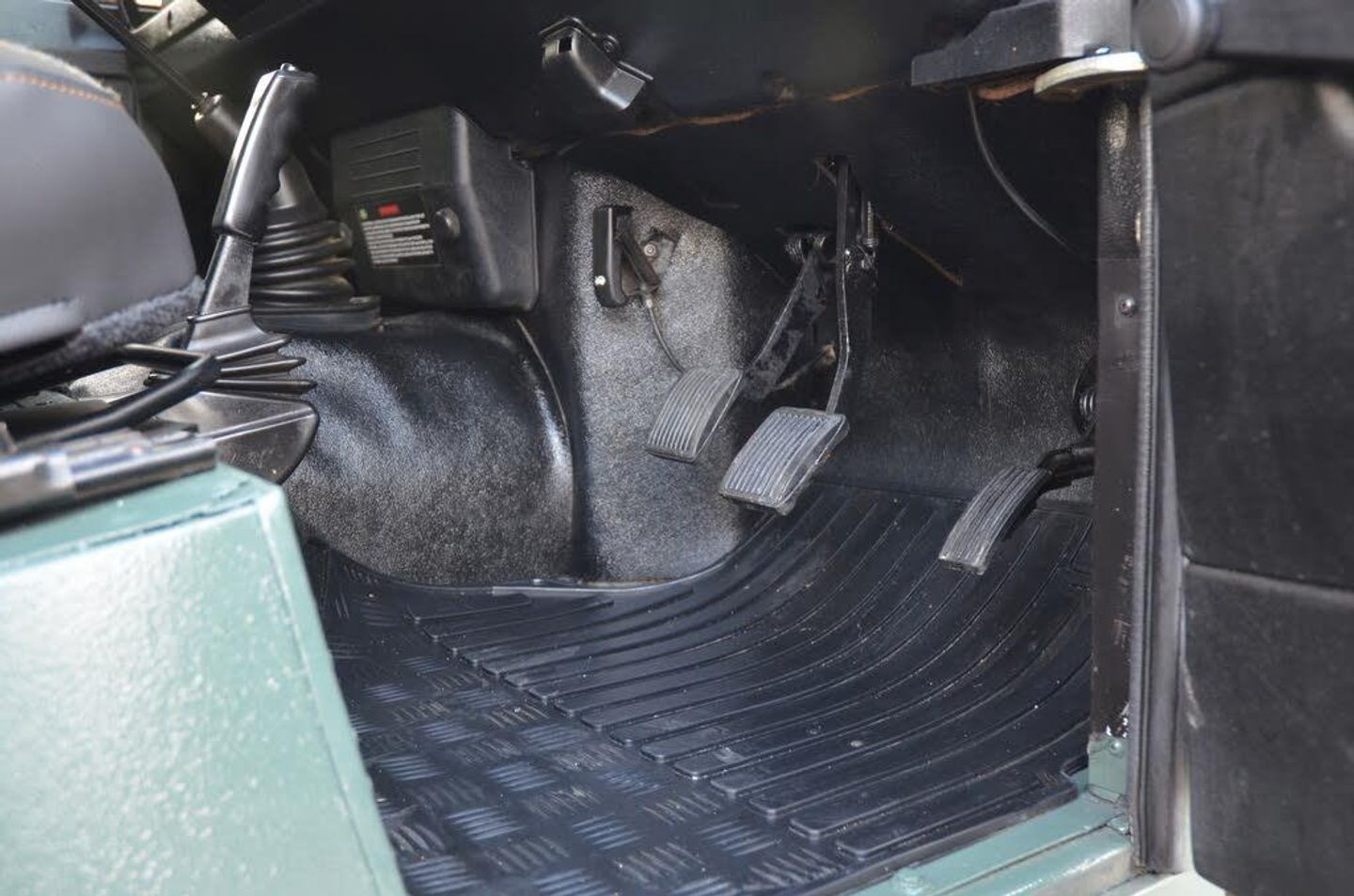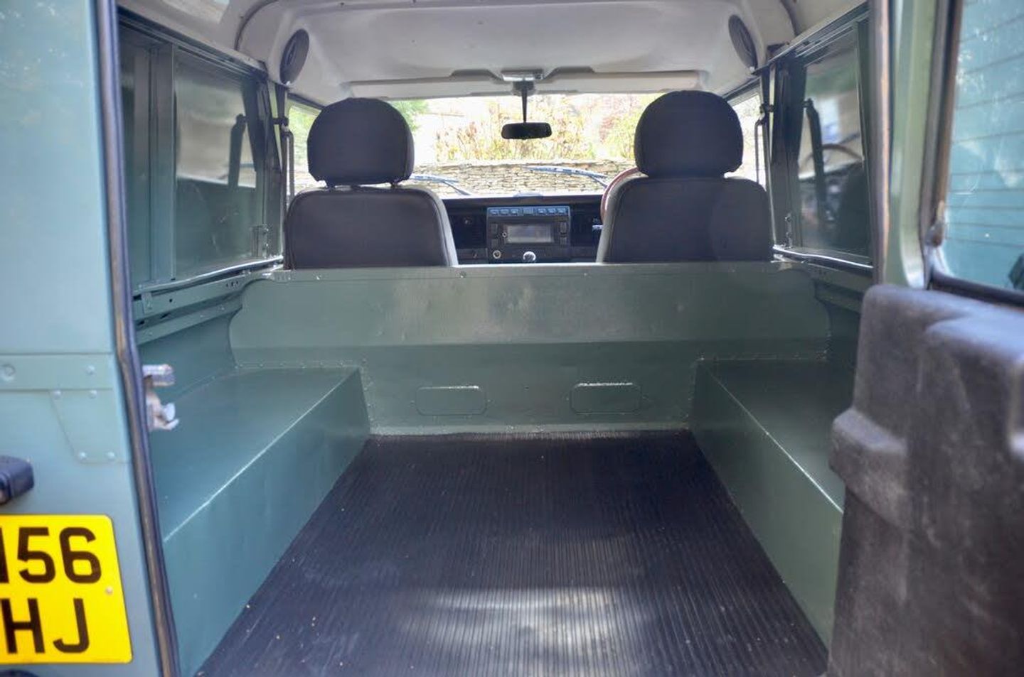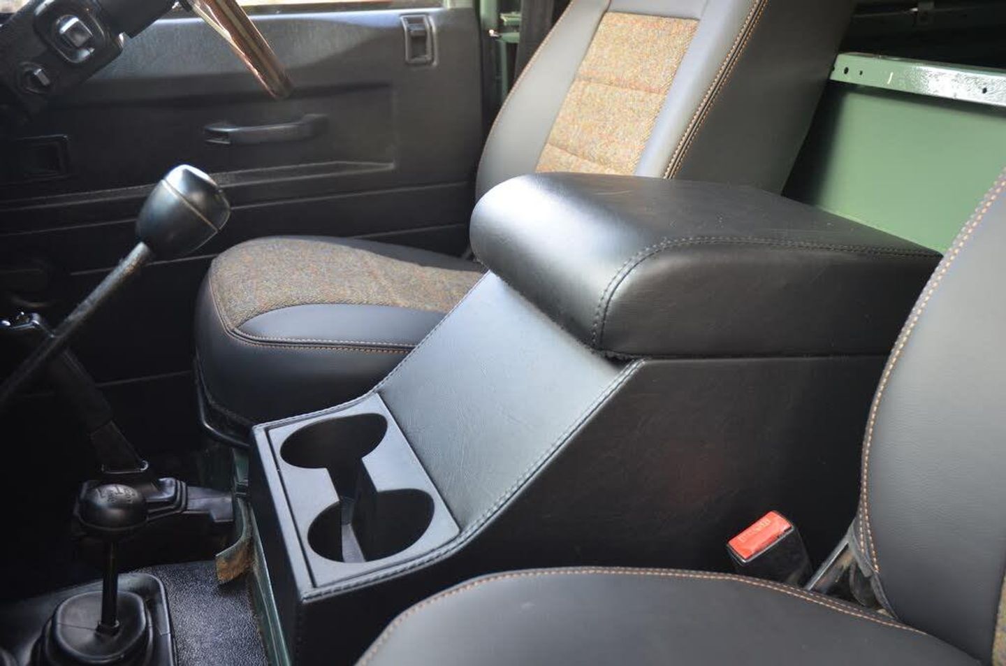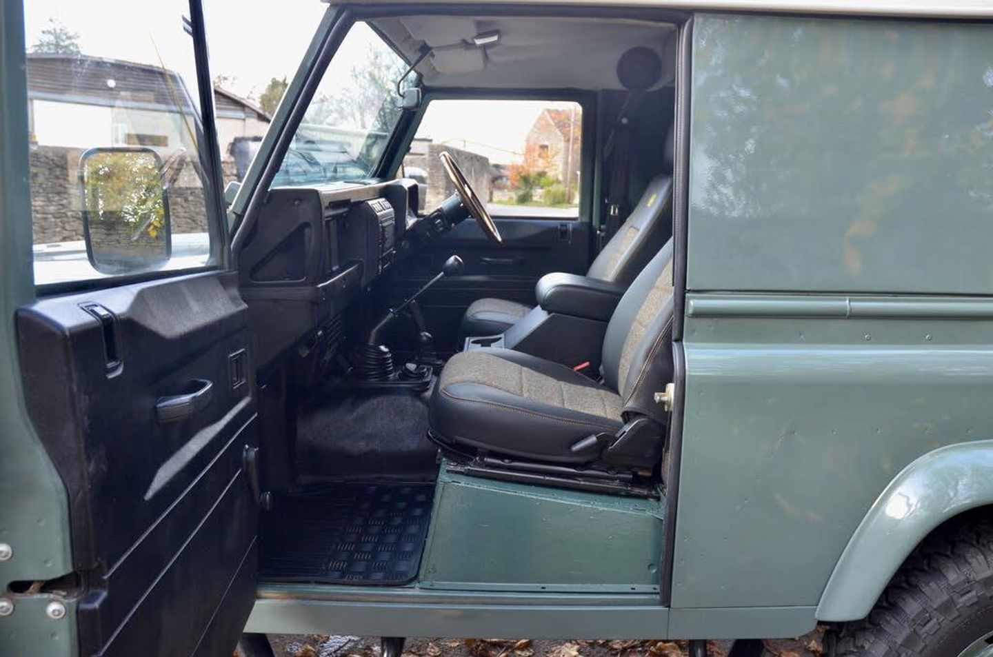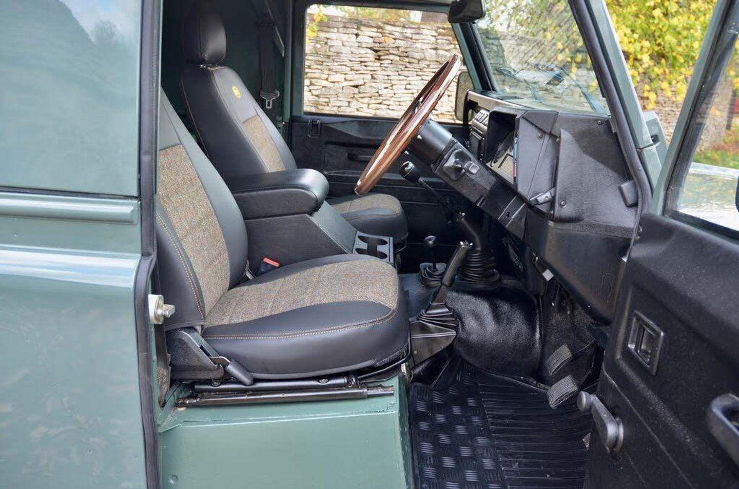 The interior is completed with Heritage style leather and tweed seats to black dash surround and Land Rover floor mats.