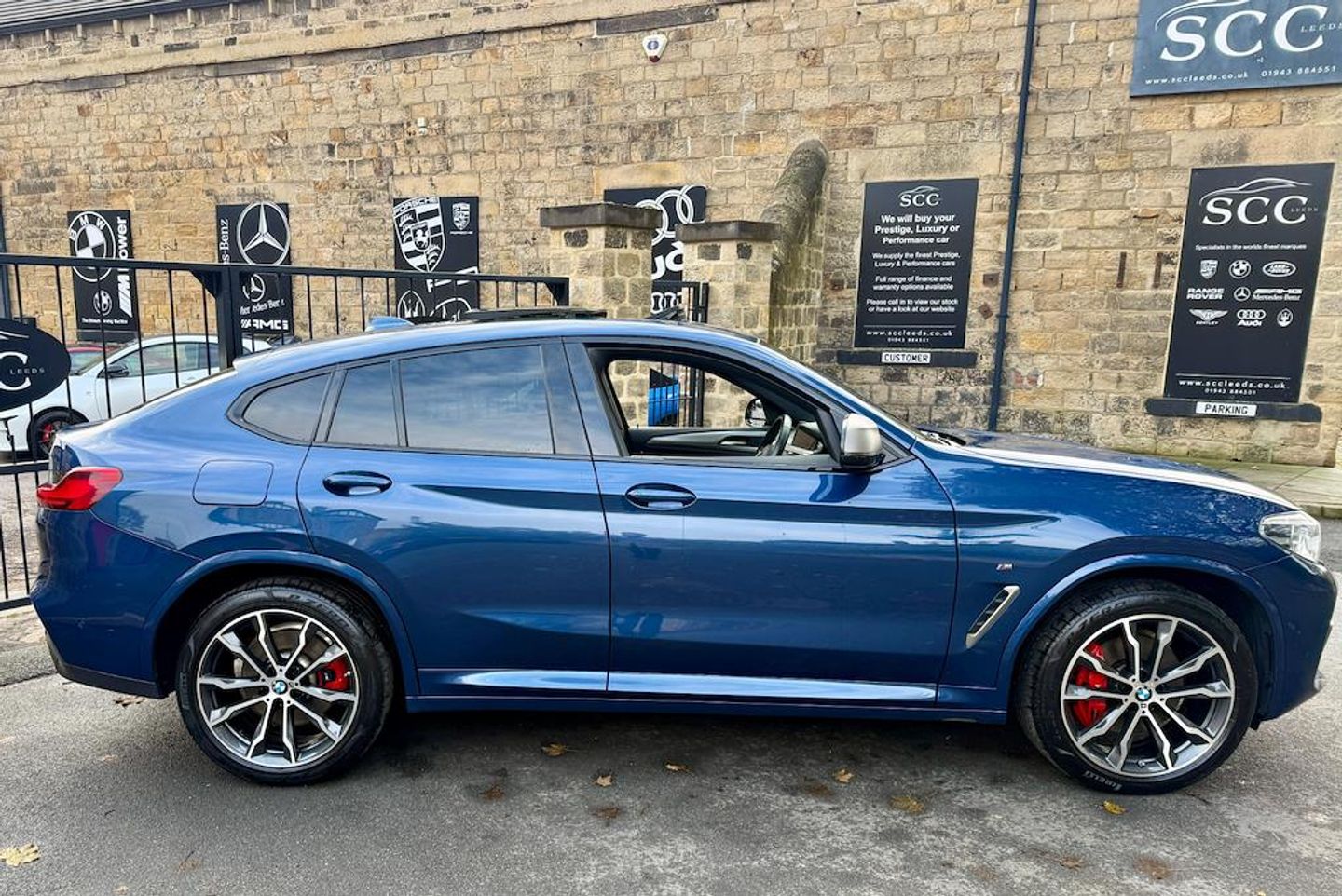 BMW X4 30D M SPORT priced at �33,495, this 2021 model boasts an impressive 3.0L diesel/electric hybrid engine that delivers a powerful 335 BHP while achieving a commendable combined fuel consumption of 43.5mpg. One of the standout features of this vehicle is obviously the Panoramic Glass Sunroof, which is not seen in many of these and absolutely enhances the interior ambiance but also it allows for an abundance of natural light, making every journey a delight. The Vernasca Leather upholstery in Black with Blue Contrast Stitching adds a touch of sophistication and comfort, ensuring that both driver and passengers enjoy a premium experience. For audiophiles, the Loudspeaker System by Harman Kardon provides an exceptional sound experience, allowing you to enjoy your favourite music like never before. Furthermore, the 20-inch Alloy Wheels in M Light Double-spoke Style 699 M - Bicolour Orbit Grey not only enhance the vehicle's sporty aesthetic but also contribute to improved handling and performance on the road. History wise its all BMW - 2022, 2024, 2025 (july), next due 2027 or 17k miles. MOT 15/06/2026. This BMW X4 is equipped with an 8-speed automatic transmission, ensuring smooth and responsive gear changes, further elevating your driving experience. Don't miss out on the opportunity to own this exceptional vehicle. Contact SCC Leeds today at 01943884551 to arrange a viewing or for more information. Experience the perfect blend of luxury and performance with the BMW X4! 12V Power Socket in Front Centre Console,20in Alloy Wheels - M Light Double-spoke Style 699 M - Bicolour Orbit Grey,Acoustic Glazing,Active Guard,Air Conditioning - Automatic,Airbags,Alarm System - Thatcham 1 with Remote Control and Engine Immobiliser,Ambient Lighting,Armrest - Front with Storage Compartment,Armrest - Rear Centre with Two Cupholders,Attentiveness Assistant,BMW Connected Package Professional,BMW ConnectedDrive Online Services,BMW Emergency Call,BMW Individual Headliner - Anthracite,BMW Individual High-Gloss Shadowline,BMW Live Cockpit Professional,BMW Professional Navigation with 10.25in Touch Display,BMW Professional Radio with MP3 Playback Compatibility,BMW Remote Services,BMW TeleServices,Battery Safety Cut Off,Bluetooth Hands-Free Facility with USB Audio Interface and Audio Streaming,Bottle Holders Integrated into Door Trim Storage Compartments - Front - up to 1 litre - Rear - Up to 750ml,Brake Energy Regeneration,Brake Pad Wear Indicator - Front and Rear,Bumper System - Front and Rear,Bumpers - Body Colour,Central Locking Switch for All Doors - Fuel Filler Cap - Luggage Compartment,Check Control Warning System for Monitoring of Lights and Door-Luggage Compartment Open Warning,Child Proof Locking System - Rear Doors,Child Seat ISOFIX Attachment - Rear,Condition Based Service,Control Display - 6.5in Colour Screen,Crash Sensor,Cruise Control with Brake and Speed Limiting Function,Cup Holders - Front - Two with Removable Oddments Tray-Lid,DAB Tuner,DSC - Dynamic Stability Control - Stabilises the Vehicle in Extreme Situations - Controls Traction,Deletion Lumbar Support-Width Adjustment Passenger Side,Digital Cockpit,Direction Indicator - Side Repeaters - Integrated in Exterior Mirrors,Door Handles - Body Colour,Door Sill Finishers - Front - High-Gloss Black with BMW Designation,Drive Performance Control with ECO PRO - Comfort and Sport Modes,Dynamic Brake Lights,EPS - Electric Power Steering,Electric Windows - Front and Rear with Open-Close Fingertip Control - Anti-Trap Facility and Comfort Closing Function,Electro Mechanical Parking Brake,Exhaust Tailpipes- Trapezoidal Split Left and Right,Exterior Air Inlets - Mirror Caps and Air Breather in Cerium Grey,Exterior B Pillar - Black,Exterior Mirrors - Electrically Folding with Anti Dazzle,Exterior Trim - High-Gloss Shadowline,First Aid Kit and Warning Triangle,Full LED L-Shape 3D Taillight,Gear Knob - Leather,Headlining - Anthracite,Heat Protection Glazing with Green Tint,High Level Third Brake Light Using LED Technology,Incorrect Fuelling Protection System,Instrument Cluster,Interior Lighting - Front Centre Over Interior Mirror with Soft-Light - Rear Centre and Front and Rear Footwell,Interior Rear-View Mirror with Automatic Anti-Dazzle Function,Interior Trim - Aluminium Rhombicle with Highlight Trim Finishers Pearl Chrome,Kidney Grille - Cerium Grey Frame with Black High-gloss Vertical Slats,LED Fog Lights - Front,Larger Capacity Fuel Tank,Lights-On Warning by Audio Warning Signal When Ignition is Switched Off,Luggage Compartment - Light,Luggage Compartment Storage,M Aerodynamic Bodystyling,M Leather Steering Wheel,M Sport Brake - Red High Gloss,M Sport Differential,M Sport Suspension,Media Package - BMW Business,Model Designation,OBC - On-Board Computer,Oil Sensor For Level and Grade - Warning by Check Control System,Optimum Shift Indicator,PDC - Park Distance Control - Front and Rear,Parking Assistant,Performance Control,Personal Profile,Rain Sensor with Automatic Headlight Activation,Rear Seat Headrests - Three,Rear Suspension - Five-Link,Remote Control Including Integrated Key - 2,Reversing Assist Camera,Roof Mouldings - Body Colour,Run Flat Tyres,Run-Flat Indicator,Seat Adjustment - Front Electric with Driver Memory,Seat Belt Security Check for Driver and Front Passenger,Seats - Front Heated,Sensatec Dashboard,Shark Fin,Side Armrests - Front and Rear Integrated into Door Trim,Side Exterior M Designation Badges,Side Impact Protection,Split Folding Rear Seat - 40-20-40,Sport Seats - Front,Start-Stop Button with Comfort Go Keyless Engine Start and Auto Start-Stop Deactivation Button,Steering Column with Manual Reach and Rake Adjustment,Steering Wheel - Gearshift Paddles,Storage Compartment - Rear Centre Console and Front-Rear Door Trim,Sun Protection Glass,Sun Visors with Vanity Mirrors and Ticket Holder,Tailgate Operation - Automatic,Three-Point Seat Belts - All Seats,Toolkit Located in Luggage Compartment,Twin Horns,Tyre Pressure Monitor with a Thre
