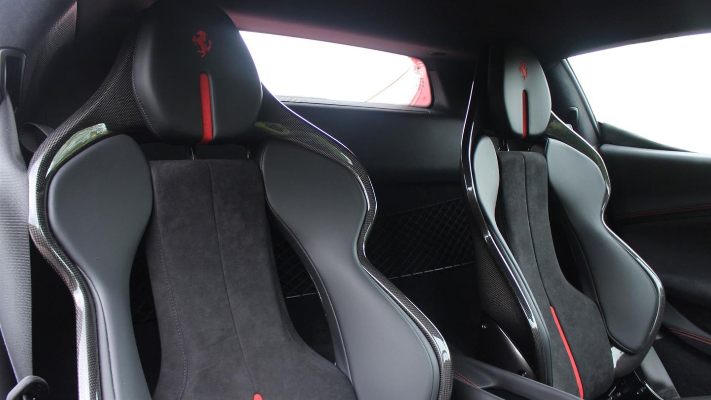 Suspension Lifter,Carbon Fibre Centre Tunnel,Carbon Fibre Steering Wheel and LEDs,Carbon Fibre Dashboard Inserts,Racing Seats in Carbon Fibre,Giallo Brake Calipers,Sports Exhaust Pipes,Scuderia Ferrari Shields,20" Diamond Polished Alloy Wheels,Titanium Wheel Studs,Seat Piping in Alcantara Rosso FX,Cavallinos Stitched on Headrests,Apple CarPlay,Adaptive Front Lights,Auto Dimming Rear View Mirrors,Rear Parking Camera,Front and Rear Parking Sensors,Premium Sound System,Wireless Phone Charger,Nero Carpets,Balance of Service Plan Until September 2030