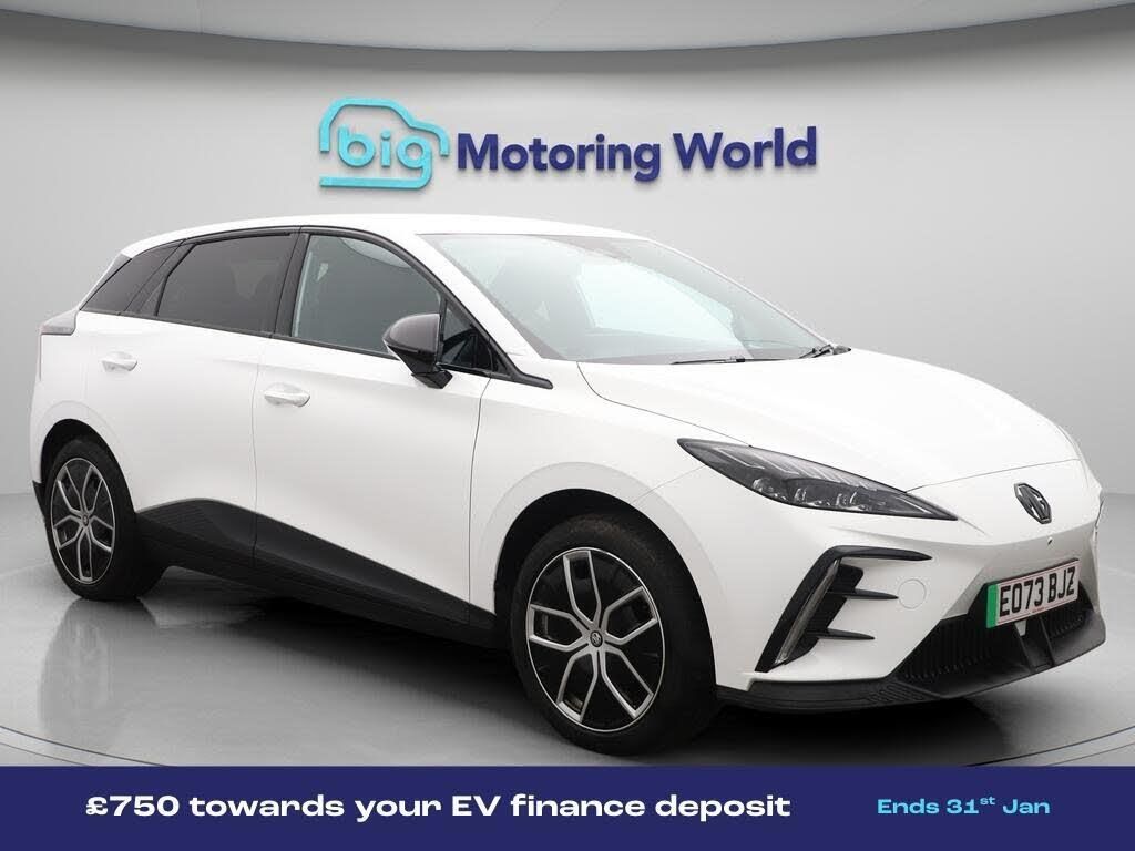 £750 towards your finance depo-Our MG MG4 is finished in White. Specification includes a range of fantastic features including £750 towards your finance deposit, 18'' alloy wheels, Leather Seats, Apple CarPlay, Adaptive Cruise Control, Lane Assist, Android Auto, Privacy Glass, Heated Seats, Rear View Camera Specification information is supplied by CAPHPI and may vary to the actual car. This data does not form any part of a buying contact. Please check specification prior to purchase in-store. The MOT is valid until December 2026, visit bigmotoringworld.co.uk for more photos, a 360 tour, service history and a free HPI report.Were BIG on peace of mind and this White MG MG4 has completed our comprehensive 200 point inspection and passed all checks. Its ready for you to drive away with immediate collection in-store. We include a 90-day warranty as standard plus an option to extend for up to 3 years.Reserve this car exclusively for you, safely and securely at bigmotoringworld.co.uk, with a fully refundable £99 deposit. Test drive before you buy, with no commitment, no hassle and a completely haggle free experience. Still searching and want to see thousands more cars? We are BIG on choice with over 8000 cars to choose from.Visit our award winning web site bigmotoringworld.co.uk.Were Big Motoring World and were BIG on what matters to you.