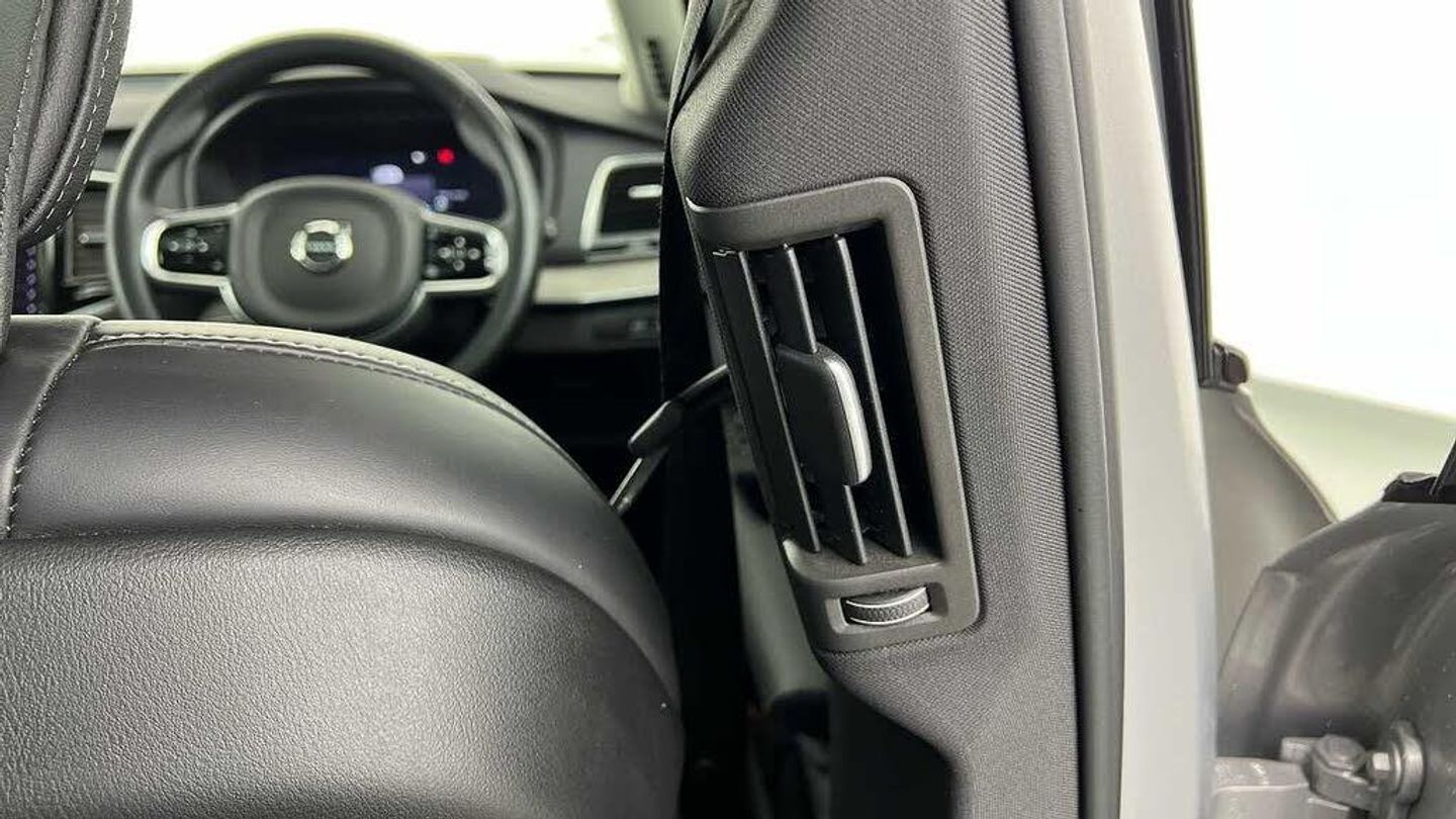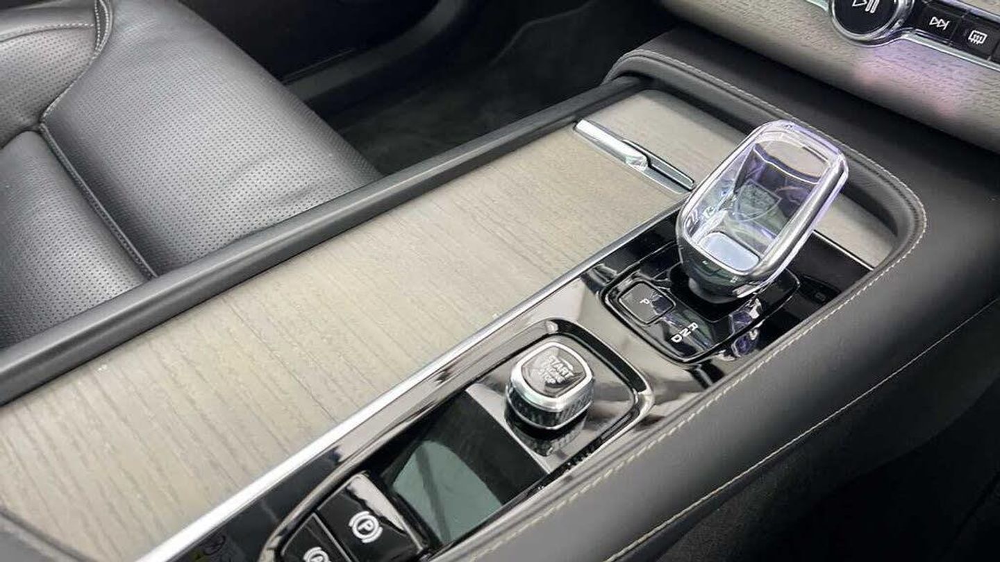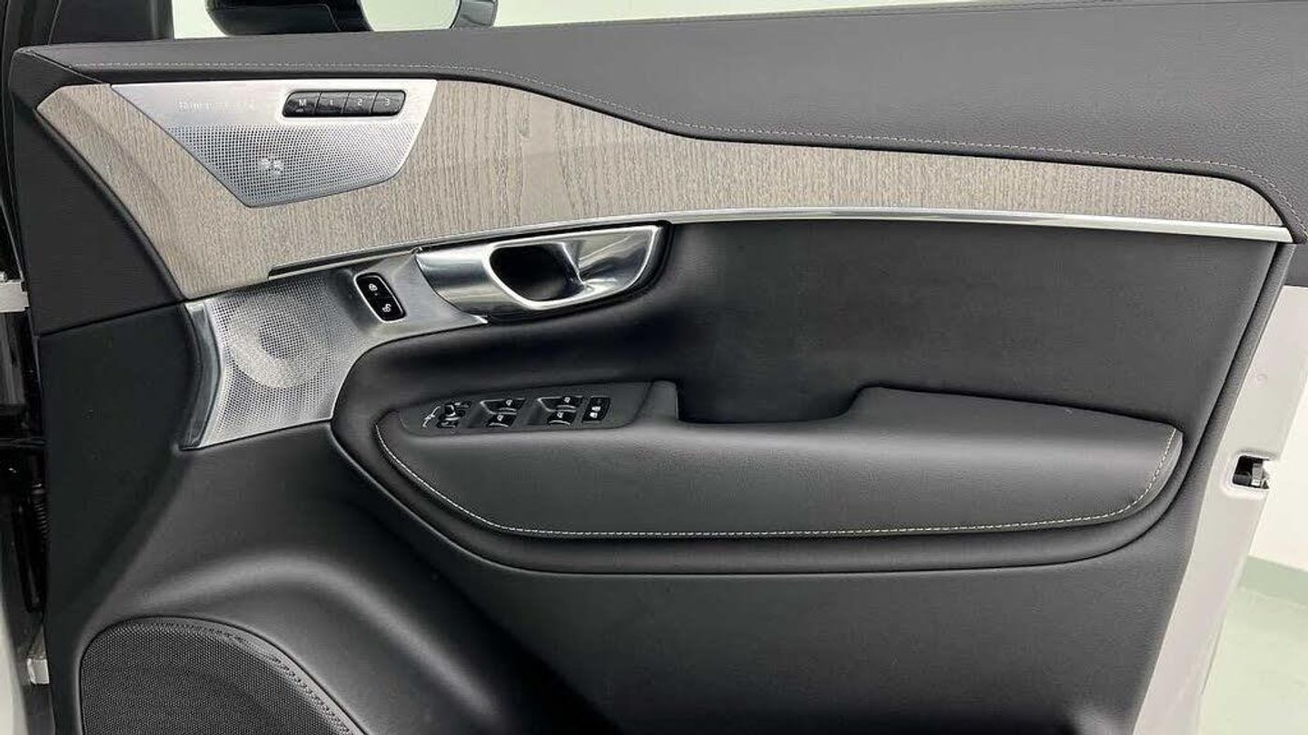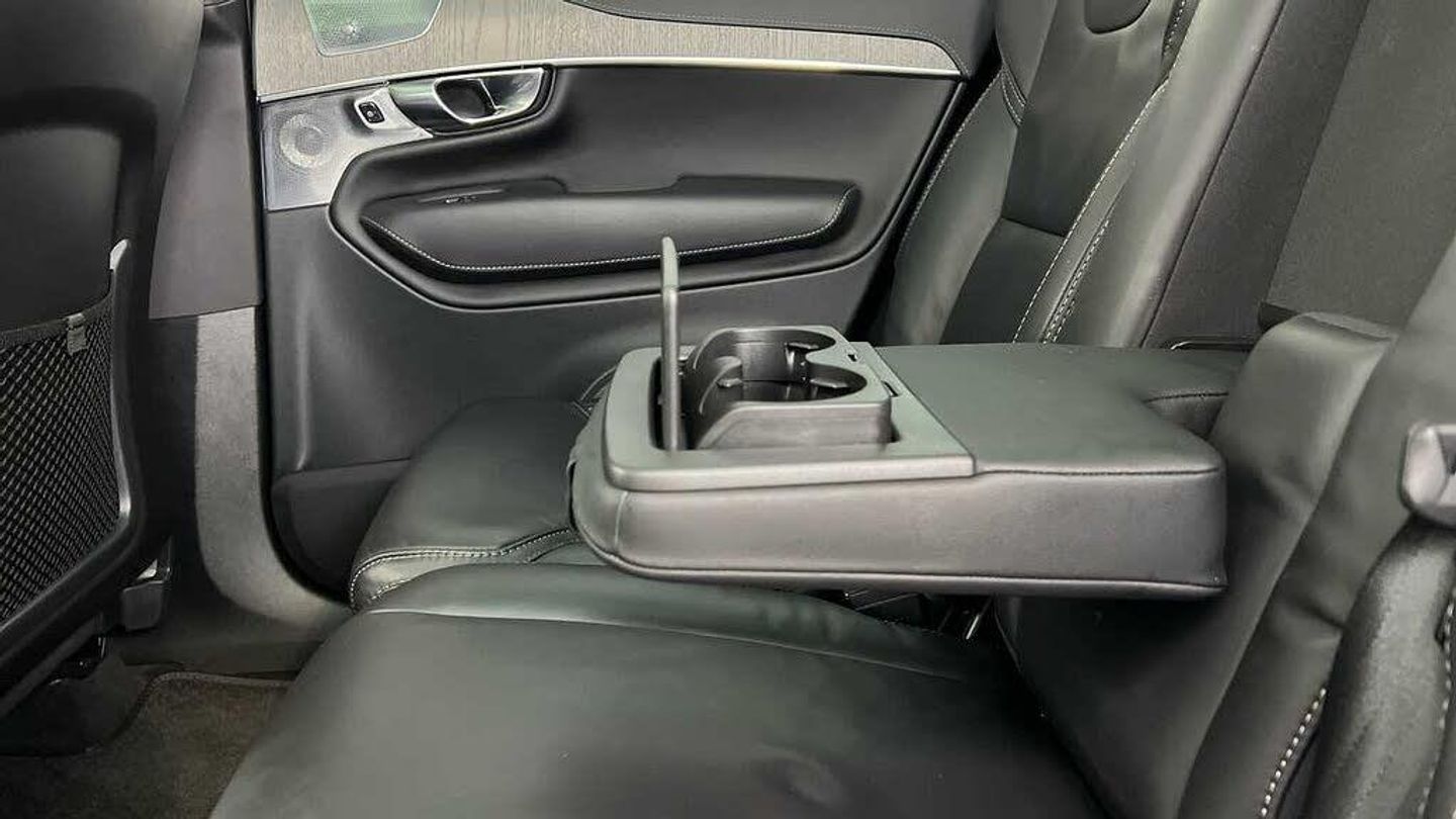 Front seat massage, 22 5-double spoke glossy black diamond cut, Tailored steering wheel. Charcoal, 8-speed Geartronic automatic, Pedals, Crystal gear shift by Orrefors®, Third row air conditioning, Four-zone climate system, Afterrun parking climate, Passenger airbag cut-off switch, Dual-stage airbags, Knee airbag. driver side, Panoramic roof, Blond headlining, Road Sign Information, Lane Keeping Aid and Lane Departure Warning, Front grille with high-gloss black insert, Heated grill emblem, Full-LED headlights, Headlight cleaning, Trailer lamp control, 12.3-inch driver display, Google Assistant. Google Maps and Google Play Store, Adaptive cruise control, Head-up display, Pilot Assist, Intelligent Speed Assist (ISA), Volvo Cars App remote functions, Air-ventilated subwoofer, Digital Audio Broadcasting (DAB+), Bowers & Wilkins High Fidelity audio system, Power retractable door mirrors, Power passenger seat with memory, Wireless phone charging, Central locking controls. front and rear doors, Remote key, Door mirror covers. high-gloss black, Double locking, Tinted rear windows, BLIS and Cross Traffic Alert, Alarm, Power child safety lock, Keyless entry with hands-free power tailgate, Air purifier and remote cabin pre-cleaning, Digital owners manual, Textile mats. third-row, Grey Ash decor, Tailored dashboard and door top panels, Ventilated nappa leather upholstery, Front seat massage, Power driver seat with memory, Power passenger seat, Front seat ventilation, Heated front seats, Heated rear seats, Power folding outer rear head restraints. second row, 7 seats, Mechanical release second seat row, Power side bolsters, Power 4-way lumbar support, Exclusive textile interior cabin floor mats. Charcoal, Protection net, Grocery bag holder, Rear centre armrest, Illuminated vanity mirrors, Interior illumination. high level, Power outlet. load compartment, First-aid kit, Load cover, Rear door sun curtains, Auto-dimmed rear view mirrors, Hidden storage, Power cushion extension. driver, Hill Start Assist, Tyre pressure monitoring, Active air suspension, Oncoming Lane Mitigation, Rear Collision Warning, Hill Descent Control, Slippery road alert, Emergency brake light, Heated steering wheel, Adaptive power steering, 22 5-double spoke glossy black diamond cut, Temporary mobility kit, Lockable wheel bolts, Wiper blades with integrated washers, Body-coloured door handles with ground lighting, Glossy black front decor elements, Tailgate scuff plate. stainless steel, Illuminated sill moulding, High-gloss black side window trim, Roof rails. glossy black, Warning triangle, Laminated side and rear windows, Park assist. front. rear and sides, Ticket holder, Electric cabin heater and cooler, 360° camera, Alcohol lock software (not available in the UK), Protective cap kit. Matt Tech Grey, Charging station cable. 6m, Apple CarPlay, Comfort front seats, 9-inch centre display, Home charging cable. mobile 7m (10A), Whiplash injury protection, Inflatable Curtain, Side impact protection, Intelligent Driver Information System (IDIS), High positioned rear brake lights, ISOFIX mounting points. rear seat, Safety belts, Rain sensor, Steering wheel remote control, Humidity sensor, Start/Stop technology, Bluetooth® connection