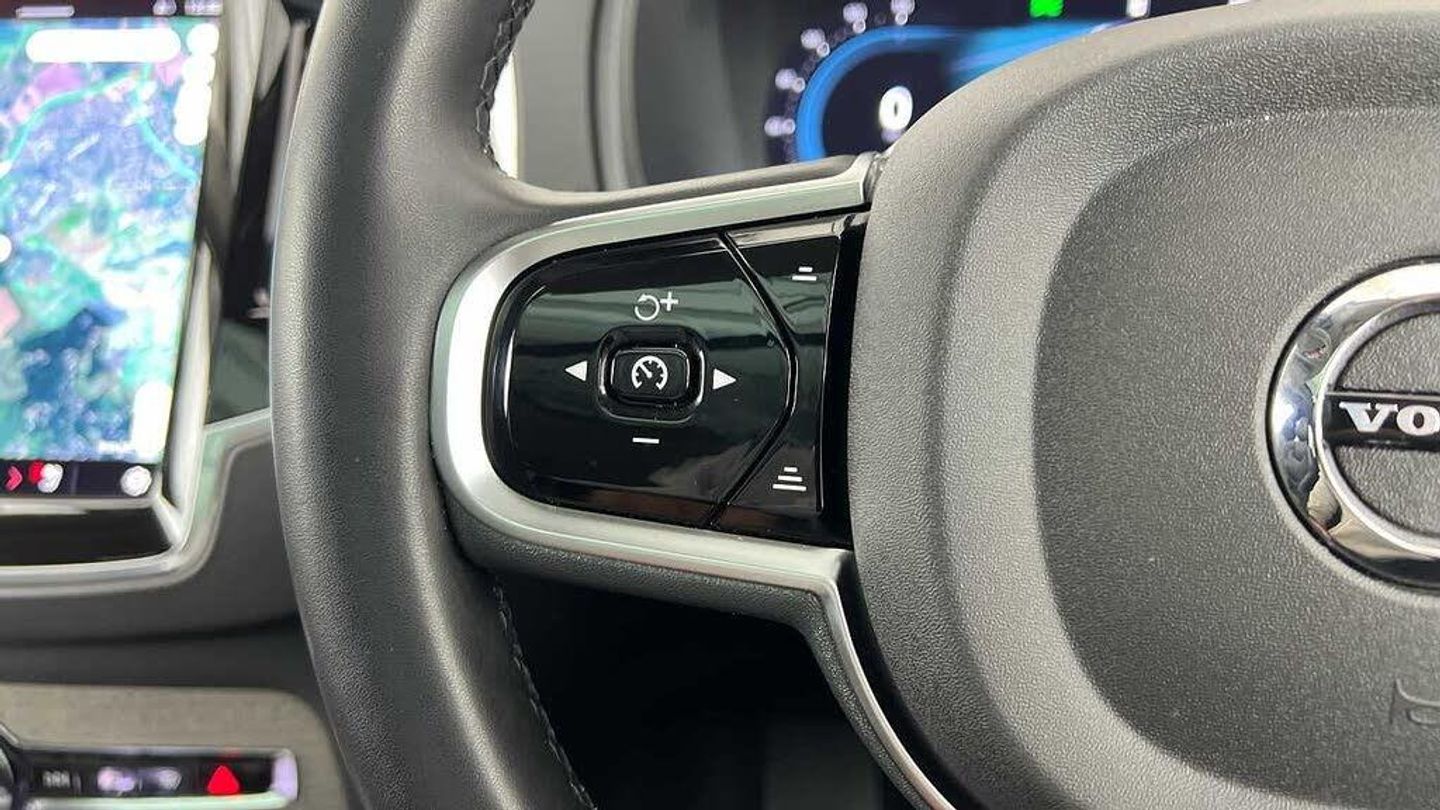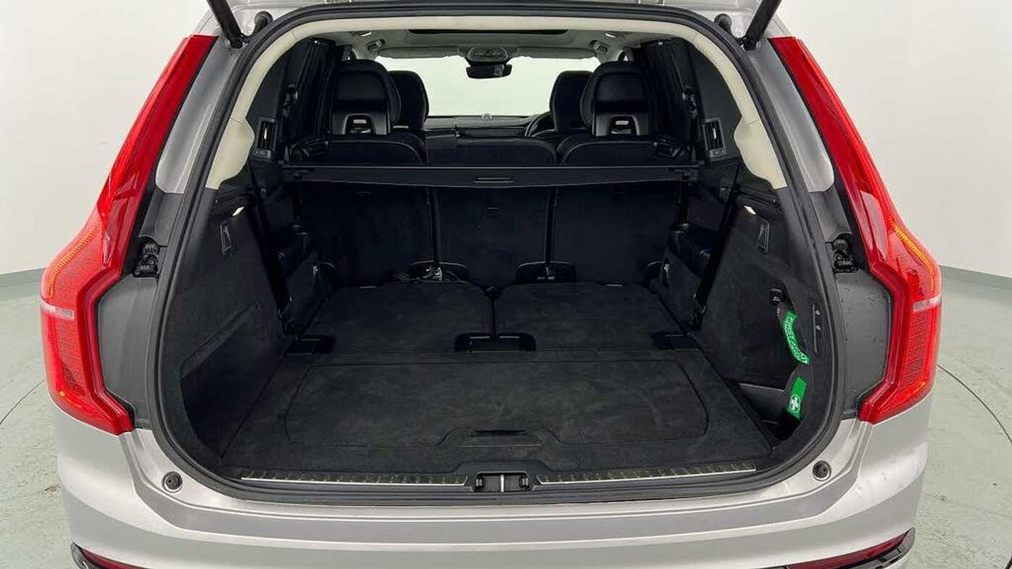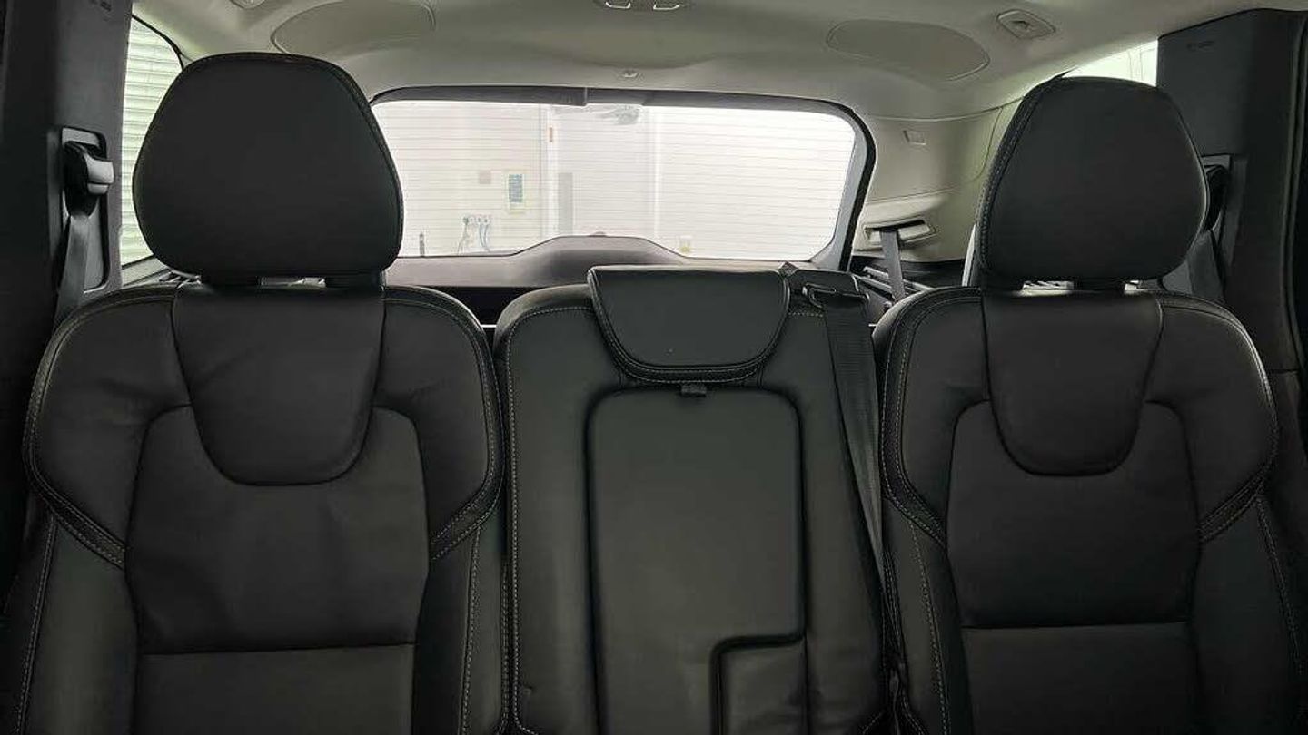 Front seat massage, 22 5-double spoke glossy black diamond cut, Tailored steering wheel. Charcoal, 8-speed Geartronic automatic, Pedals, Crystal gear shift by Orrefors®, Third row air conditioning, Four-zone climate system, Afterrun parking climate, Passenger airbag cut-off switch, Dual-stage airbags, Knee airbag. driver side, Panoramic roof, Blond headlining, Road Sign Information, Lane Keeping Aid and Lane Departure Warning, Front grille with high-gloss black insert, Heated grill emblem, Full-LED headlights, Headlight cleaning, Trailer lamp control, 12.3-inch driver display, Google Assistant. Google Maps and Google Play Store, Adaptive cruise control, Head-up display, Pilot Assist, Intelligent Speed Assist (ISA), Volvo Cars App remote functions, Air-ventilated subwoofer, Digital Audio Broadcasting (DAB+), Bowers & Wilkins High Fidelity audio system, Power retractable door mirrors, Power passenger seat with memory, Wireless phone charging, Central locking controls. front and rear doors, Remote key, Door mirror covers. high-gloss black, Double locking, Tinted rear windows, BLIS and Cross Traffic Alert, Alarm, Power child safety lock, Keyless entry with hands-free power tailgate, Air purifier and remote cabin pre-cleaning, Digital owners manual, Textile mats. third-row, Grey Ash decor, Tailored dashboard and door top panels, Ventilated nappa leather upholstery, Front seat massage, Power driver seat with memory, Power passenger seat, Front seat ventilation, Heated front seats, Heated rear seats, Power folding outer rear head restraints. second row, 7 seats, Mechanical release second seat row, Power side bolsters, Power 4-way lumbar support, Exclusive textile interior cabin floor mats. Charcoal, Protection net, Grocery bag holder, Rear centre armrest, Illuminated vanity mirrors, Interior illumination. high level, Power outlet. load compartment, First-aid kit, Load cover, Rear door sun curtains, Auto-dimmed rear view mirrors, Hidden storage, Power cushion extension. driver, Hill Start Assist, Tyre pressure monitoring, Active air suspension, Oncoming Lane Mitigation, Rear Collision Warning, Hill Descent Control, Slippery road alert, Emergency brake light, Heated steering wheel, Adaptive power steering, 22 5-double spoke glossy black diamond cut, Temporary mobility kit, Lockable wheel bolts, Wiper blades with integrated washers, Body-coloured door handles with ground lighting, Glossy black front decor elements, Tailgate scuff plate. stainless steel, Illuminated sill moulding, High-gloss black side window trim, Roof rails. glossy black, Warning triangle, Laminated side and rear windows, Park assist. front. rear and sides, Ticket holder, Electric cabin heater and cooler, 360° camera, Alcohol lock software (not available in the UK), Protective cap kit. Matt Tech Grey, Charging station cable. 6m, Apple CarPlay, Comfort front seats, 9-inch centre display, Home charging cable. mobile 7m (10A), Whiplash injury protection, Inflatable Curtain, Side impact protection, Intelligent Driver Information System (IDIS), High positioned rear brake lights, ISOFIX mounting points. rear seat, Safety belts, Rain sensor, Steering wheel remote control, Humidity sensor, Start/Stop technology, Bluetooth® connection
