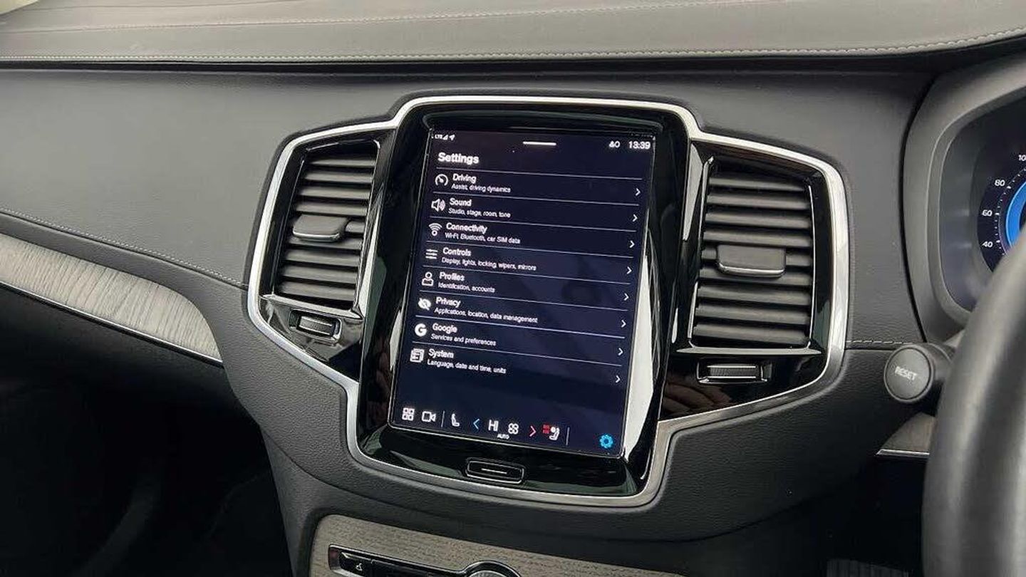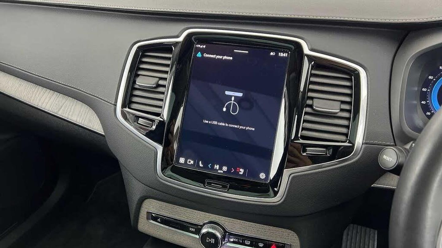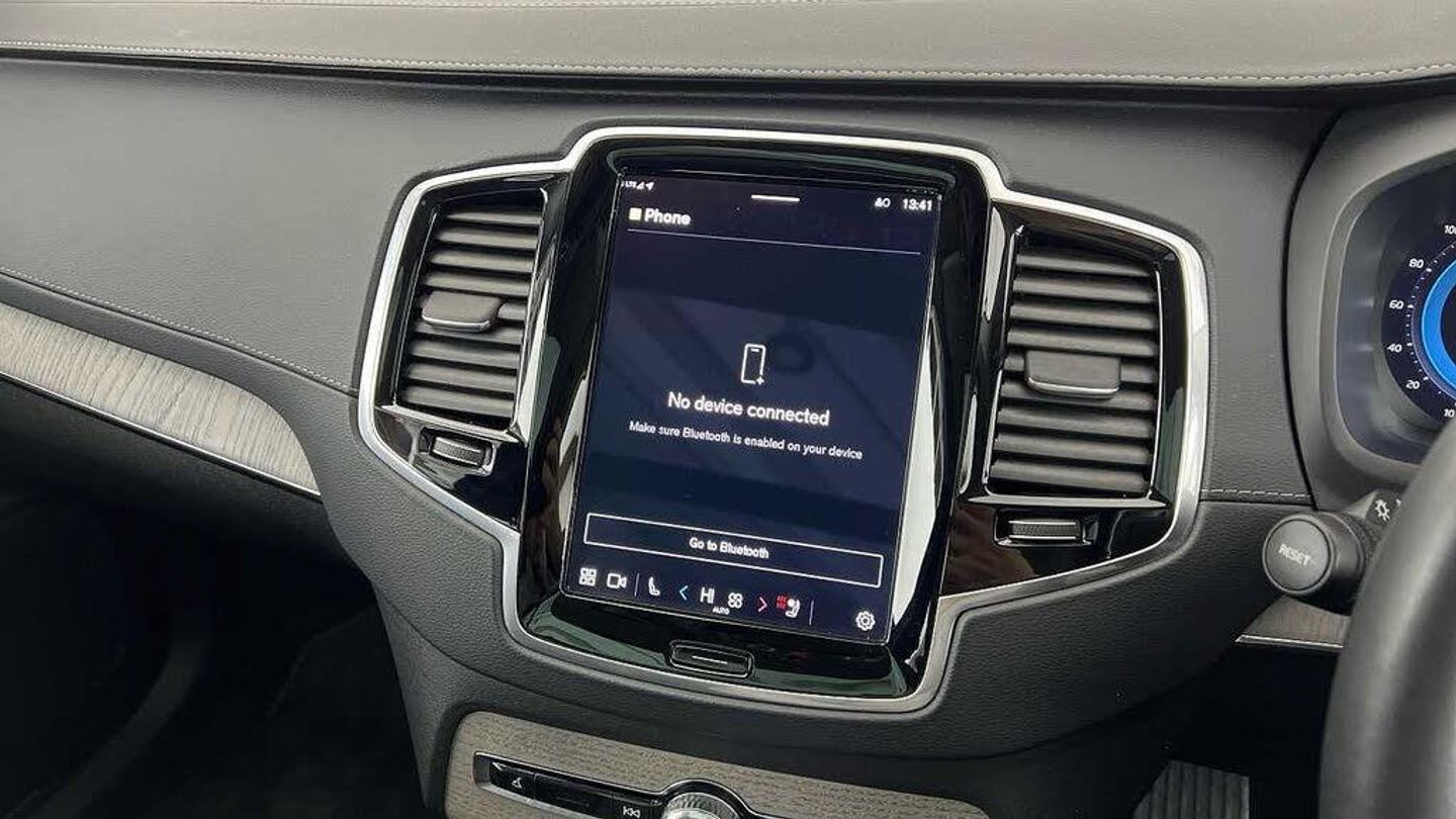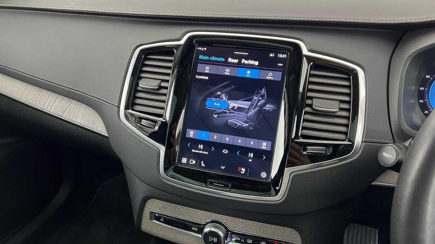 Front seat massage, 22 5-double spoke glossy black diamond cut, Tailored steering wheel. Charcoal, 8-speed Geartronic automatic, Pedals, Crystal gear shift by Orrefors®, Third row air conditioning, Four-zone climate system, Afterrun parking climate, Passenger airbag cut-off switch, Dual-stage airbags, Knee airbag. driver side, Panoramic roof, Blond headlining, Road Sign Information, Lane Keeping Aid and Lane Departure Warning, Front grille with high-gloss black insert, Heated grill emblem, Full-LED headlights, Headlight cleaning, Trailer lamp control, 12.3-inch driver display, Google Assistant. Google Maps and Google Play Store, Adaptive cruise control, Head-up display, Pilot Assist, Intelligent Speed Assist (ISA), Volvo Cars App remote functions, Air-ventilated subwoofer, Digital Audio Broadcasting (DAB+), Bowers & Wilkins High Fidelity audio system, Power retractable door mirrors, Power passenger seat with memory, Wireless phone charging, Central locking controls. front and rear doors, Remote key, Door mirror covers. high-gloss black, Double locking, Tinted rear windows, BLIS and Cross Traffic Alert, Alarm, Power child safety lock, Keyless entry with hands-free power tailgate, Air purifier and remote cabin pre-cleaning, Digital owners manual, Textile mats. third-row, Grey Ash decor, Tailored dashboard and door top panels, Ventilated nappa leather upholstery, Front seat massage, Power driver seat with memory, Power passenger seat, Front seat ventilation, Heated front seats, Heated rear seats, Power folding outer rear head restraints. second row, 7 seats, Mechanical release second seat row, Power side bolsters, Power 4-way lumbar support, Exclusive textile interior cabin floor mats. Charcoal, Protection net, Grocery bag holder, Rear centre armrest, Illuminated vanity mirrors, Interior illumination. high level, Power outlet. load compartment, First-aid kit, Load cover, Rear door sun curtains, Auto-dimmed rear view mirrors, Hidden storage, Power cushion extension. driver, Hill Start Assist, Tyre pressure monitoring, Active air suspension, Oncoming Lane Mitigation, Rear Collision Warning, Hill Descent Control, Slippery road alert, Emergency brake light, Heated steering wheel, Adaptive power steering, 22 5-double spoke glossy black diamond cut, Temporary mobility kit, Lockable wheel bolts, Wiper blades with integrated washers, Body-coloured door handles with ground lighting, Glossy black front decor elements, Tailgate scuff plate. stainless steel, Illuminated sill moulding, High-gloss black side window trim, Roof rails. glossy black, Warning triangle, Laminated side and rear windows, Park assist. front. rear and sides, Ticket holder, Electric cabin heater and cooler, 360° camera, Alcohol lock software (not available in the UK), Protective cap kit. Matt Tech Grey, Charging station cable. 6m, Apple CarPlay, Comfort front seats, 9-inch centre display, Home charging cable. mobile 7m (10A), Whiplash injury protection, Inflatable Curtain, Side impact protection, Intelligent Driver Information System (IDIS), High positioned rear brake lights, ISOFIX mounting points. rear seat, Safety belts, Rain sensor, Steering wheel remote control, Humidity sensor, Start/Stop technology, Bluetooth® connection