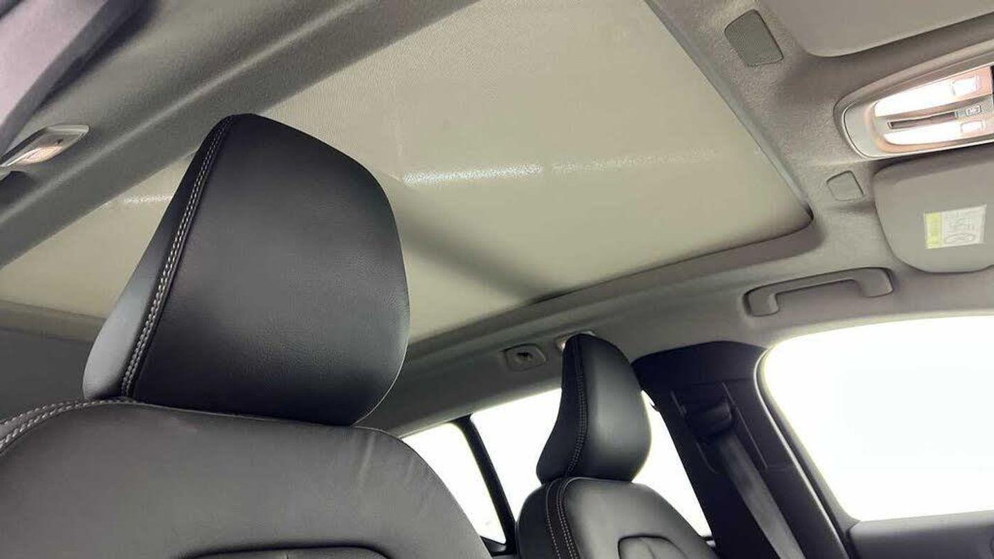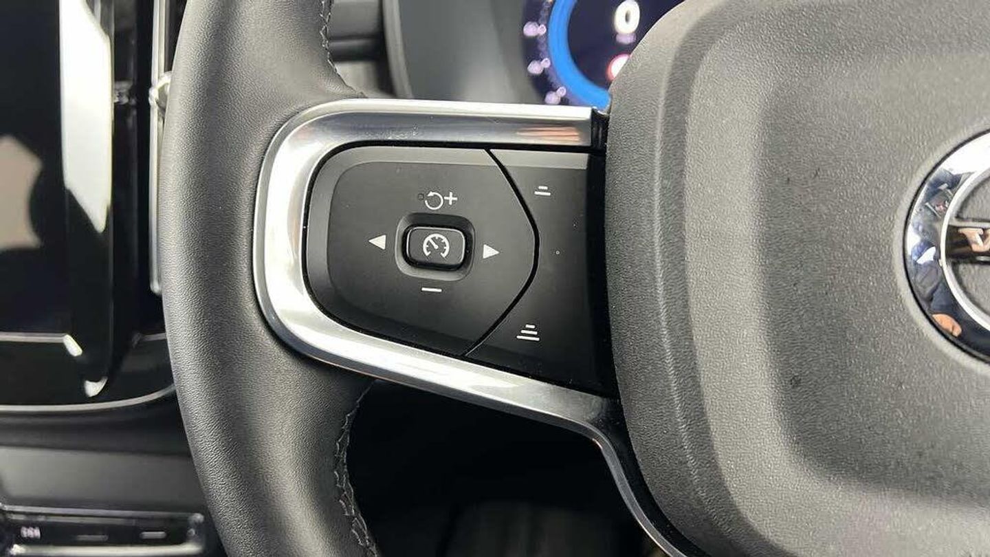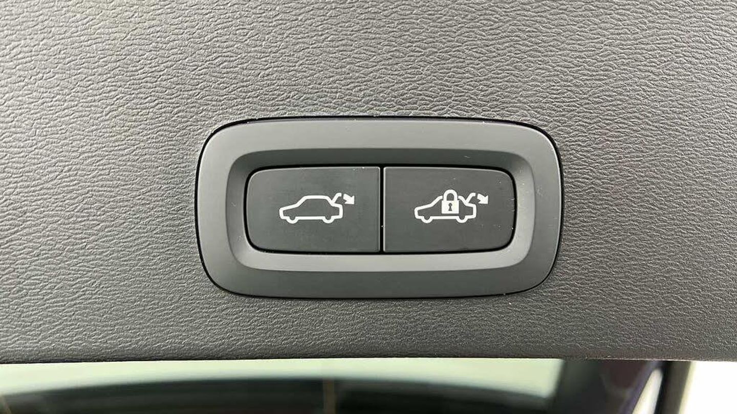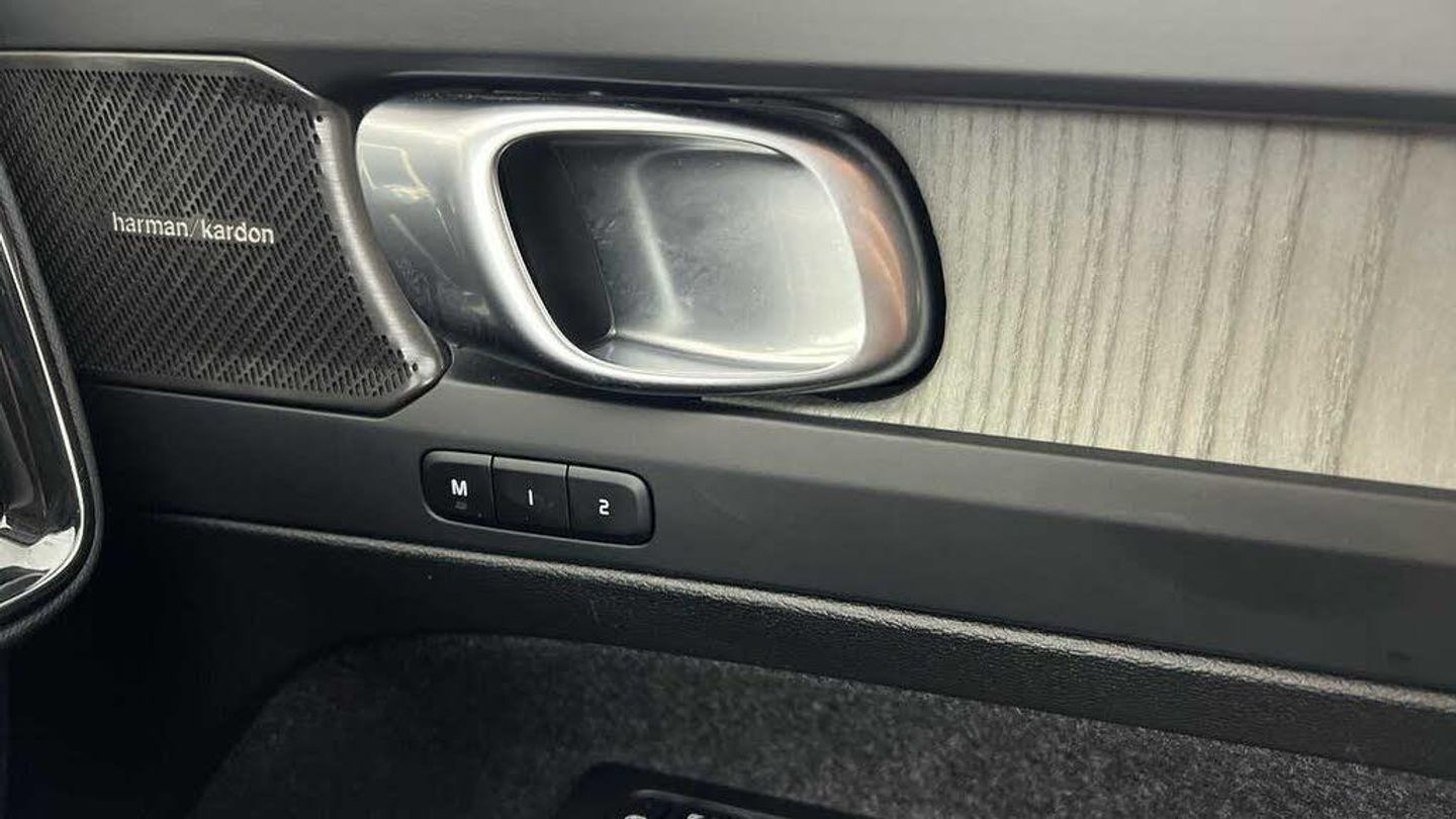 Temporary spare wheel, 20 5-Double Spoke Black Diamond Cut, Crystal gear shift by Orrefors®, Blond headlining, Door mirror covers. high-gloss black, Driftwood decor, Leather upholstery, Tailored steering wheel. Charcoal, 7-speed Dual Clutch automatic, Two-zone climate system, Afterrun parking climate, Passenger airbag cut-off switch, Dual-stage airbags, Knee airbag. driver side, Panoramic roof, Charcoal interior inserts, Road Sign Information, Lane Keeping Aid and Lane Departure Warning, Front grille with high-gloss black insert, Heated grill emblem, Pixel LED headlights, Headlight cleaning, Trailer lamp control, Fog lamps, 12.3-inch driver display, Google Assistant. Google Maps and Google Play Store, Adaptive cruise control, Pilot Assist, Intelligent Speed Assist (ISA), Volvo Cars App remote functions, Air-ventilated subwoofer, Digital Audio Broadcasting (DAB+), Harman Kardon Premium Sound, Power retractable door mirrors, Wireless phone charging, Automatic door locking, Remote key, Small storage. front, Double locking, Tinted rear windows, BLIS and Cross Traffic Alert, Alarm, Power child safety lock, Power tailgate, Keyless entry with hands-free power tailgate, Air purifier and remote cabin pre-cleaning, Folding bag hook, Digital owners manual, Power driver seat with memory, Power passenger seat, Heated front seats, Heated rear seats, Power folding rear head restraints, 5 seats, Mechanical release second seat row, Manual cushion extensions. driver and passenger, Power 4-way lumbar support, Sport textile interior cabin floor mats. Charcoal, Protection net, Foldable load floor with cargo divider and grocery bag, Rear centre armrest, Illuminated vanity mirrors, Interior illumination. high level, Power outlet. load compartment, First-aid kit, Auto-dimmed rear view mirrors, Front centre armrest, Glossy black tunnel console, Chassis, Hill Start Assist, Tyre pressure monitoring, Oncoming Lane Mitigation, Rear Collision Warning, Hill Descent Control, Slippery road alert, Emergency brake light, Heated steering wheel, Adaptive power steering, 20 5-Double Spoke Black Diamond Cut, Temporary spare wheel, Lockable wheel bolts, Hidden tail pipes, Heated windscreen, Body-coloured door handles with ground lighting, High-gloss black side window trim, Roof rails. glossy black, Warning triangle, Volvo tread plates. aluminium, Tempered side and rear windows, Rain sensor, Park assist. front. rear and sides, Ticket holder, 360° camera, Alcohol lock software (not available in the UK), Protective cap kit. Matt Tech Grey, Apple CarPlay, Comfort front seats, 9-inch centre display, Whiplash injury protection, Inflatable Curtain, Side impact protection, ISOFIX mounting points. rear seat, Steering wheel remote control, Humidity sensor, Bluetooth® connection, Safety belts
