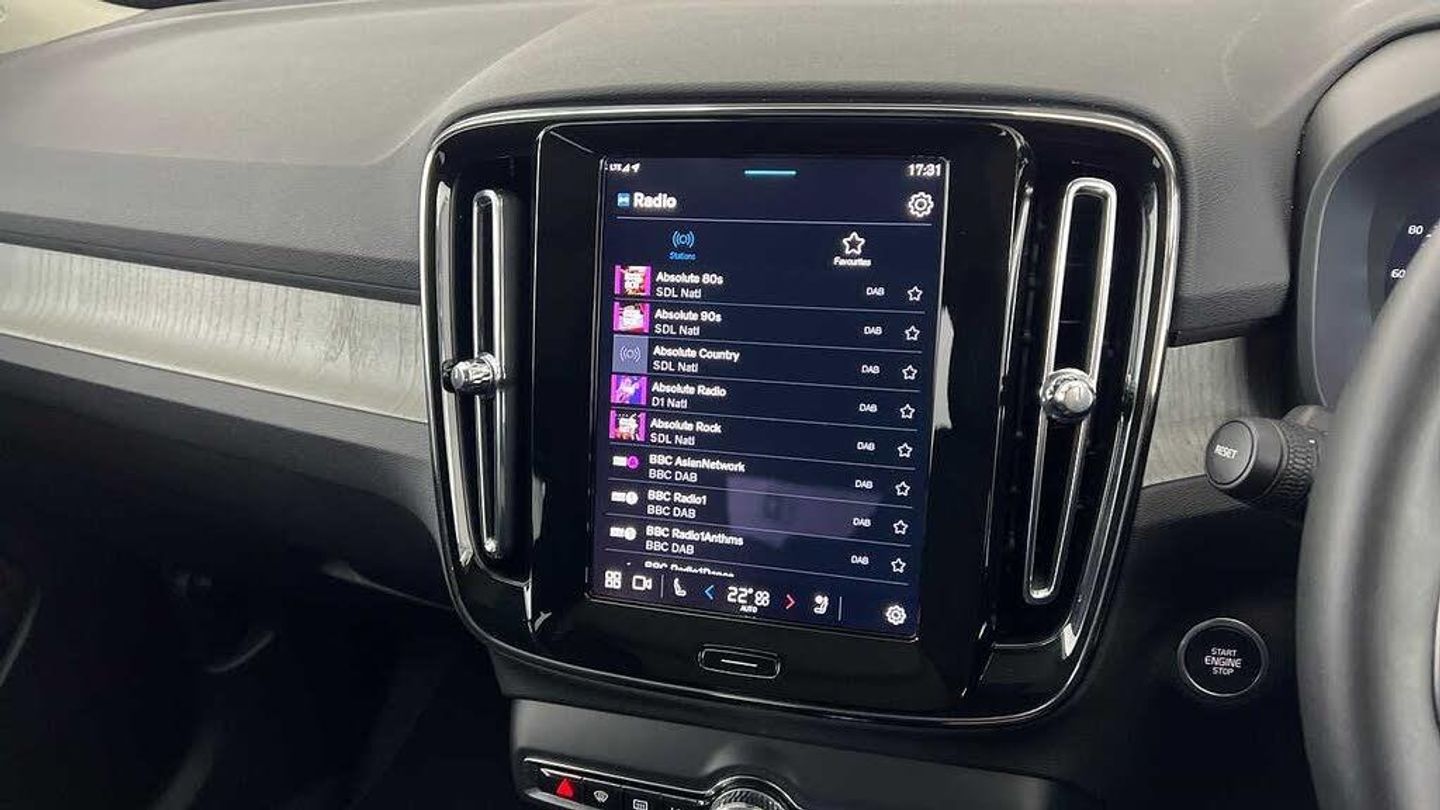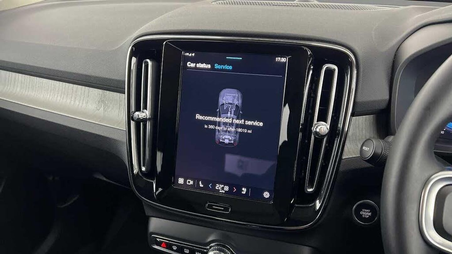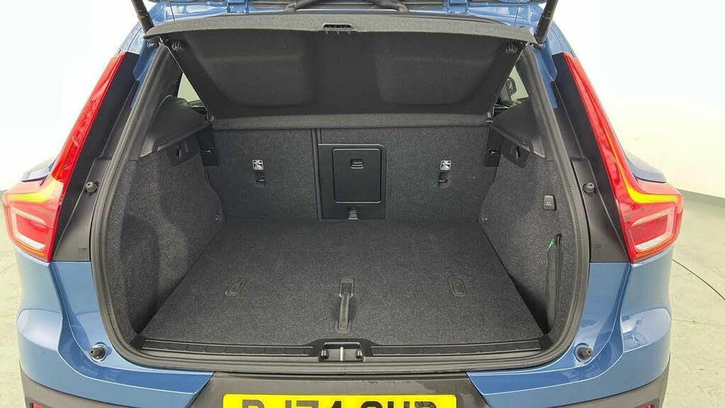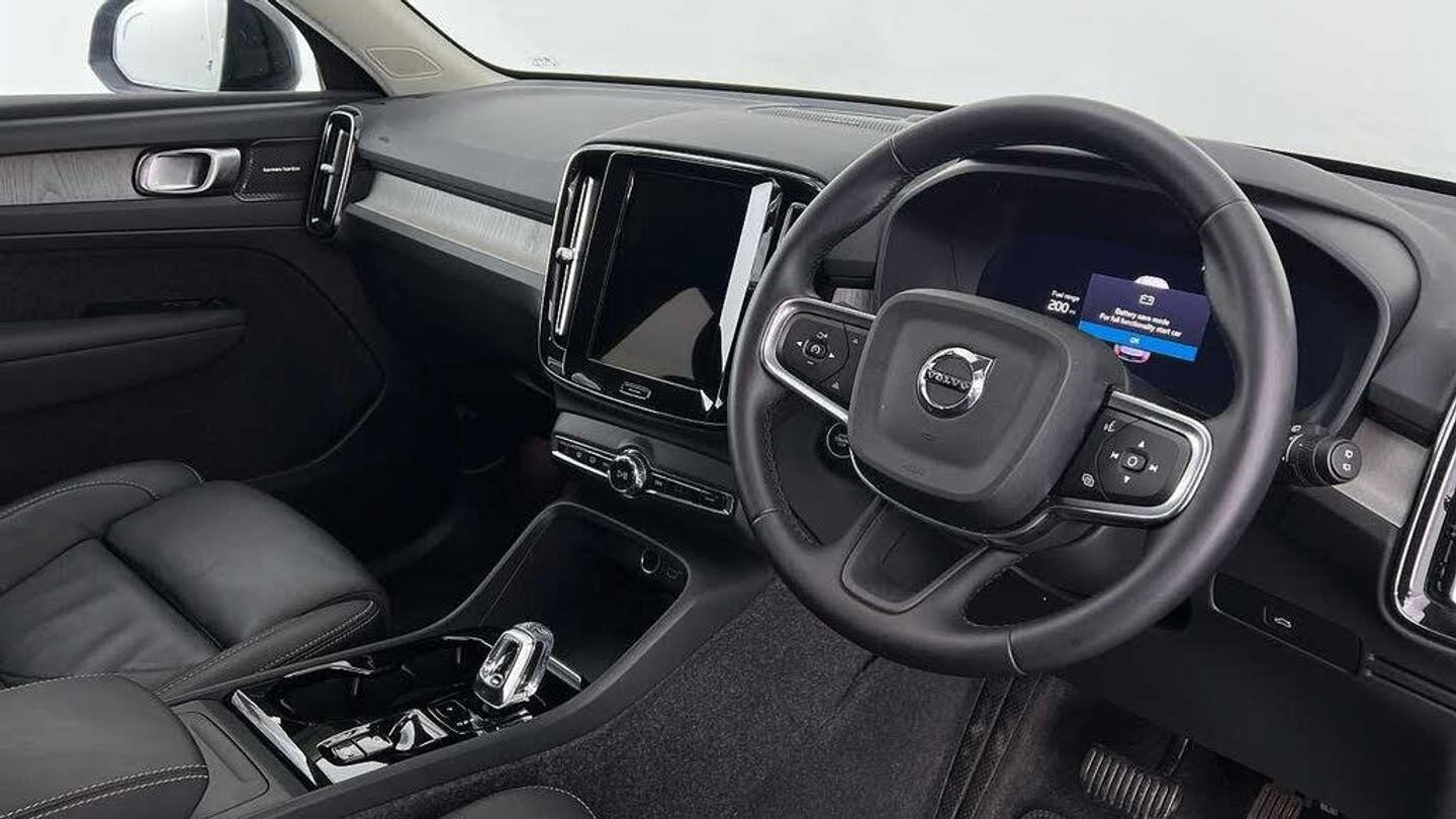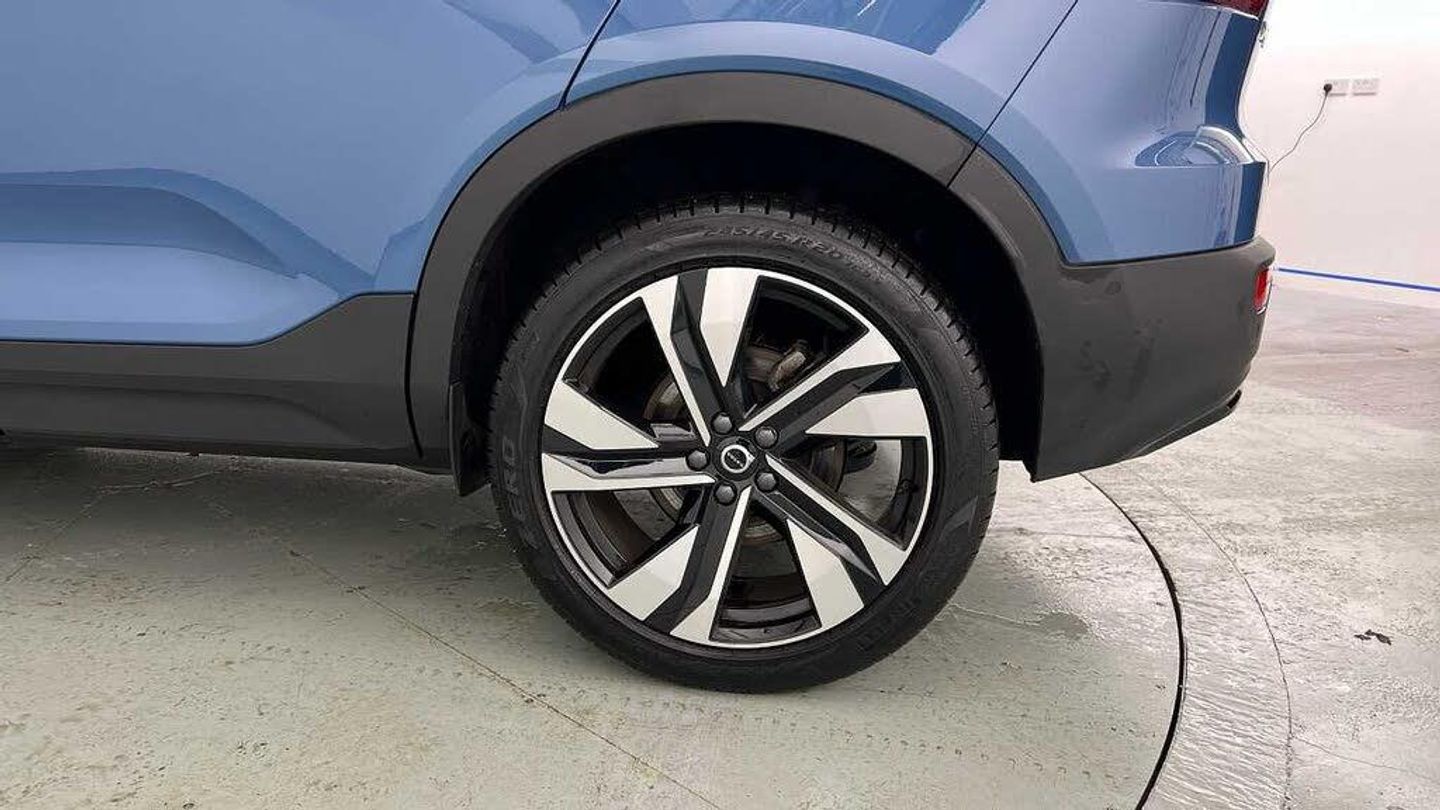Temporary spare wheel, 20 5-Double Spoke Black Diamond Cut, Crystal gear shift by Orrefors®, Blond headlining, Door mirror covers. high-gloss black, Driftwood decor, Leather upholstery, Tailored steering wheel. Charcoal, 7-speed Dual Clutch automatic, Two-zone climate system, Afterrun parking climate, Passenger airbag cut-off switch, Dual-stage airbags, Knee airbag. driver side, Panoramic roof, Charcoal interior inserts, Road Sign Information, Lane Keeping Aid and Lane Departure Warning, Front grille with high-gloss black insert, Heated grill emblem, Pixel LED headlights, Headlight cleaning, Trailer lamp control, Fog lamps, 12.3-inch driver display, Google Assistant. Google Maps and Google Play Store, Adaptive cruise control, Pilot Assist, Intelligent Speed Assist (ISA), Volvo Cars App remote functions, Air-ventilated subwoofer, Digital Audio Broadcasting (DAB+), Harman Kardon Premium Sound, Power retractable door mirrors, Wireless phone charging, Automatic door locking, Remote key, Small storage. front, Double locking, Tinted rear windows, BLIS and Cross Traffic Alert, Alarm, Power child safety lock, Power tailgate, Keyless entry with hands-free power tailgate, Air purifier and remote cabin pre-cleaning, Folding bag hook, Digital owners manual, Power driver seat with memory, Power passenger seat, Heated front seats, Heated rear seats, Power folding rear head restraints, 5 seats, Mechanical release second seat row, Manual cushion extensions. driver and passenger, Power 4-way lumbar support, Sport textile interior cabin floor mats. Charcoal, Protection net, Foldable load floor with cargo divider and grocery bag, Rear centre armrest, Illuminated vanity mirrors, Interior illumination. high level, Power outlet. load compartment, First-aid kit, Auto-dimmed rear view mirrors, Front centre armrest, Glossy black tunnel console, Chassis, Hill Start Assist, Tyre pressure monitoring, Oncoming Lane Mitigation, Rear Collision Warning, Hill Descent Control, Slippery road alert, Emergency brake light, Heated steering wheel, Adaptive power steering, 20 5-Double Spoke Black Diamond Cut, Temporary spare wheel, Lockable wheel bolts, Hidden tail pipes, Heated windscreen, Body-coloured door handles with ground lighting, High-gloss black side window trim, Roof rails. glossy black, Warning triangle, Volvo tread plates. aluminium, Tempered side and rear windows, Rain sensor, Park assist. front. rear and sides, Ticket holder, 360° camera, Alcohol lock software (not available in the UK), Protective cap kit. Matt Tech Grey, Apple CarPlay, Comfort front seats, 9-inch centre display, Whiplash injury protection, Inflatable Curtain, Side impact protection, ISOFIX mounting points. rear seat, Steering wheel remote control, Humidity sensor, Bluetooth® connection, Safety belts