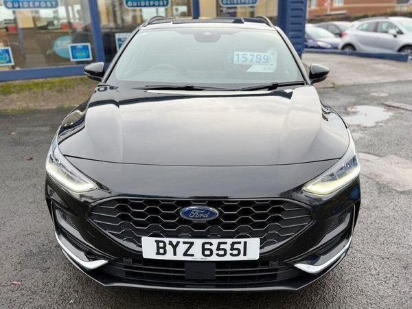 This 2022 Ford Focus ST Line Vignale offers exceptional provenance, having been meticulously maintained with a full dealership service history and only one owner from new. This stylish hatchback is equipped with a responsive 1.0L petrol engine, meeting Euro 6 emissions standards. You'll appreciate the convenience of the Ford Key Free System for keyless entry and start, along with front and rear parking sensors to aid manoeuvring. Inside, enjoy the comfort of dual zone electronic automatic temperature control and the added luxury of the Winter Pack, which includes heated seats and a heated steering wheel. The passenger seat offers 4 way manual adjustment for added comfort.This Focus ST Line Vignale is designed to impress, boasting an impressive fuel economy of 52 mpg, which indicates it is more economical than many similar vehicles. Its low CO2 emissions further highlight its efficiency. To ensure your peace of mind, a 12 month MOT will be provided upon purchase, underscoring the vehicle's excellent roadworthiness. This combination of low ownership, comprehensive servicing, and desirable features makes this Ford Focus a truly compelling choice.-1Owner-Fullford history-22 REG-ALEX SCOTT CARS GUIDEPOST Award Winning Family Run Business Since 1981 TEL 01670 823777