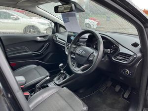 Bluetooth system, Drive mode selector, Electric power steering, Ford easy fuel, Trip computer, Rough road suspension with increased ride height adjust, 2 USB ports, Auxiliary input socket, DAB Digital radio, Steering wheel mounted controls, Active logo front door thershold plates, Auto dimming rear view mirror, Automatic headlights, Body colour bumpers, Body colour door handles, Body colour electric adjustable heated door mirrors with integral indicators, Body colour rear spoiler, Chrome beltline trim, Chrome door handles, Chrome lower window surround, Cornering front fog lights, Electric front windows/one touch facility, Electric rear windows, LED Night signature to rear lights, LED rear lights, Power foldable door mirrors with puddle lights, Quickclear heated windscreen, Rain sensing wipers and auto dimming rear view mirror, Rear privacy glass, Rear wiper, Rugged body styling kit with active front wing badges, Tinted glass, Upper front grille chrome surround, 12V Accessory socket in centre console, 3 spoke leather trimmed steering wheel with audio control, 60/40 split folding rear seat, Adjustable head restraints, Ambient lighting, Boot carpet, Centre console with armrest and illuminated cupholders, Chrome inner door handles, Driver/passenger seat height adj/lumbar support, EATC - Electronic Auto Temperature control, Footwell illumination, Front map reading lights, Front seat and rear pockets, Front/rear floor mats, Heated front seats, Height adjustable driver's seat, Illuminated glovebox, Leather gear knob, Leather trimmed handbrake handle, Load area light, Luxury woven headliner, Overhead console with sunglasses holder, Part Leather upholstery with heated front seats, Pollen filter, Rake/reach adjustable steering wheel, Rear centre head restraint, Driver assistance pack - Fiesta/Titanium/Titanium X/Active B+O/Active X/ST-Line X, NCAP Pack - Fiesta, Rear view camera pack - Fiesta, 3 point seatbelts on all rear seats, ABS+EBA, Curtain airbags, Driver and passenger airbags, Drivers knee airbag, Electronic stability control with hill start assist, Front passenger airbag deactivation, Front side airbags, Seatbelt warning, Tyre pressure monitoring system, Ford keyfree system with Keyless entry and keyless start with two remote keys, MyKey system, Remote central locking & engine immobiliser, Thatcham Cat.1 alarm, 17" 5 spoke alloy wheels with rough metal machined finish