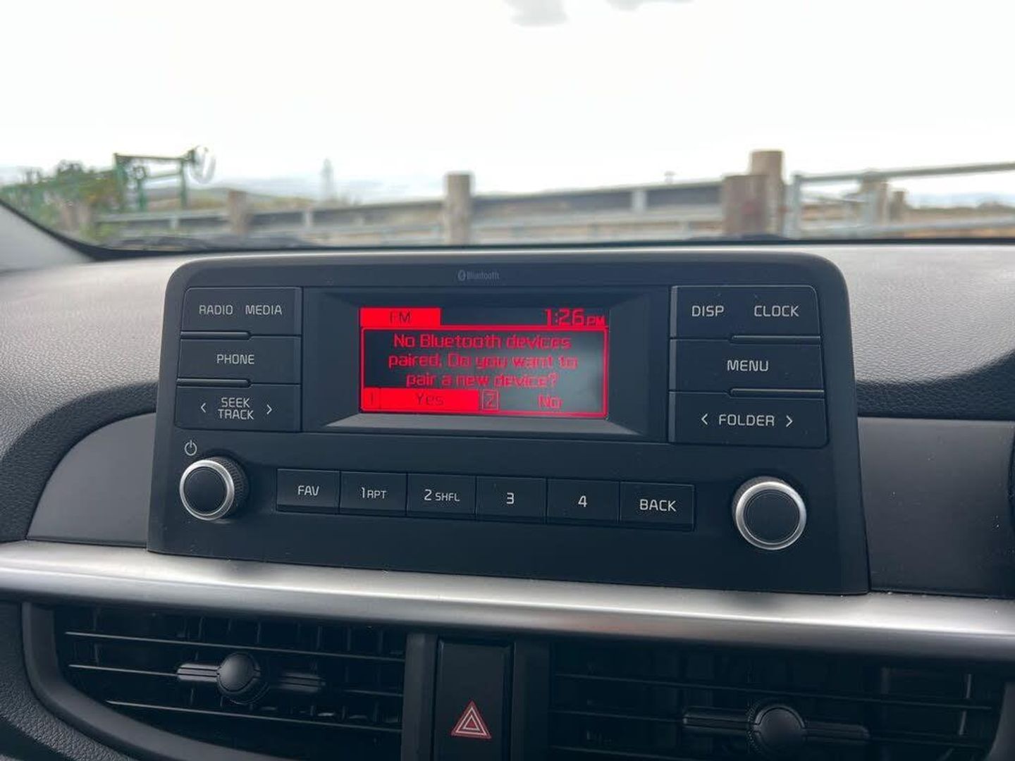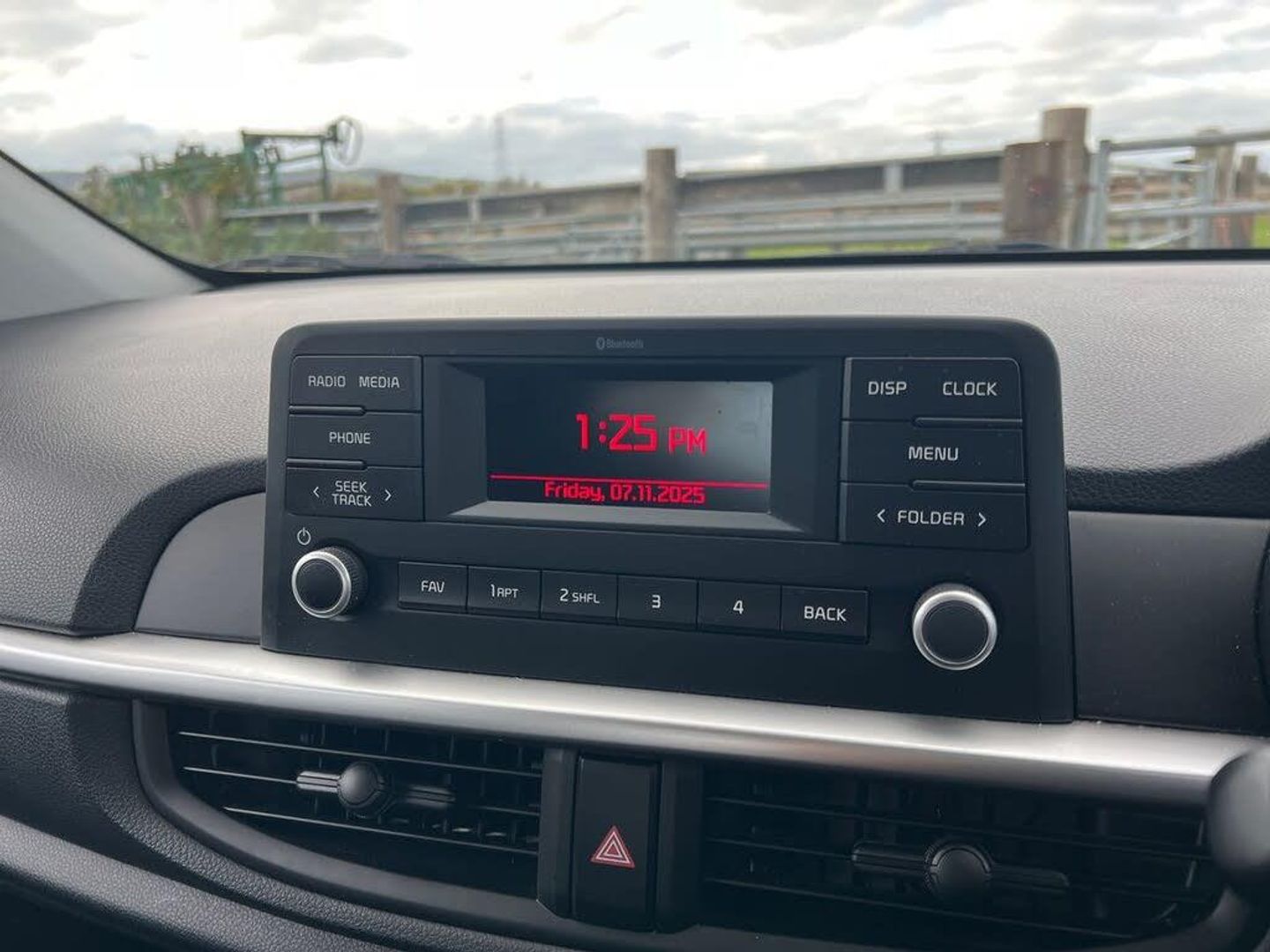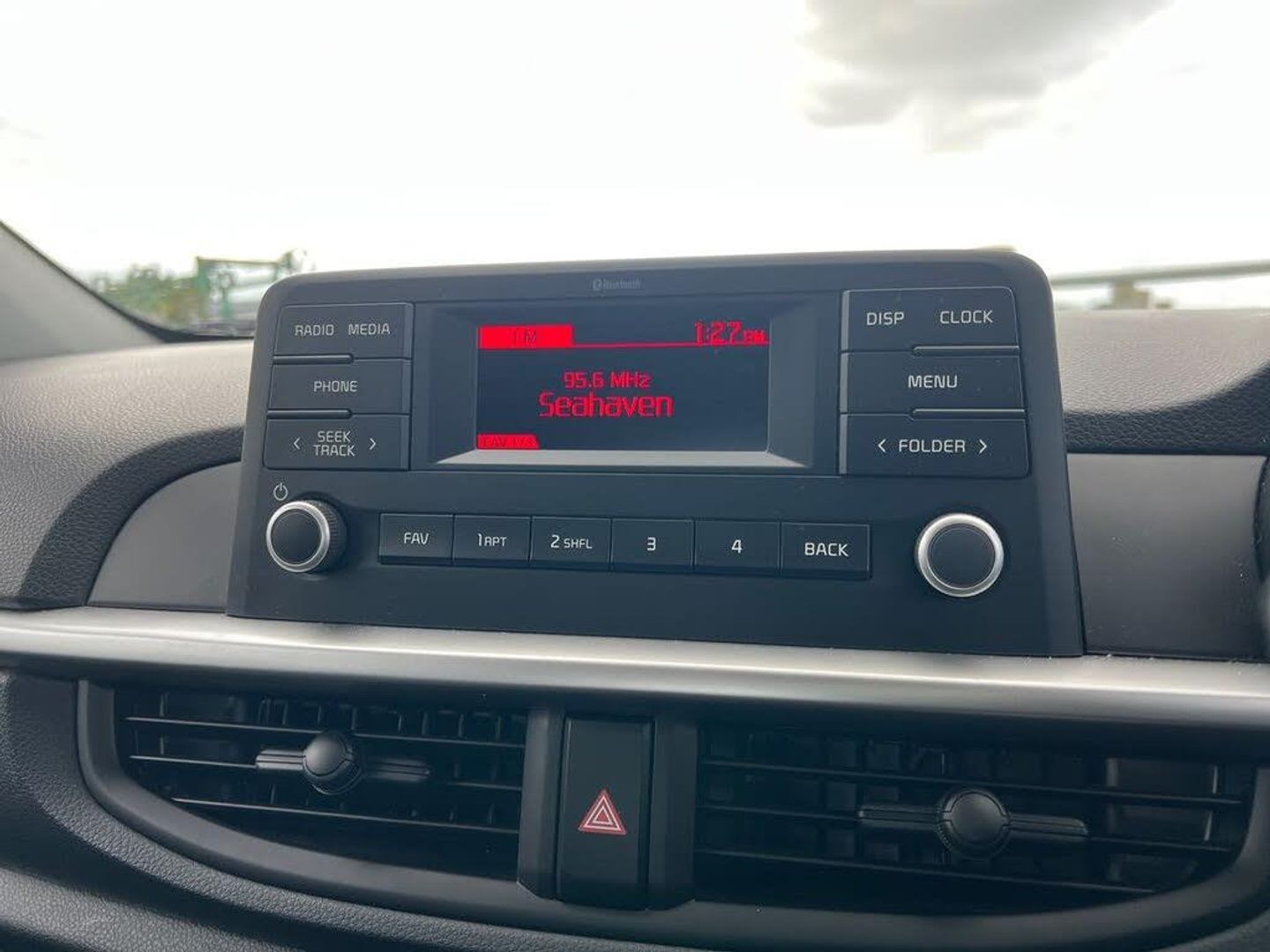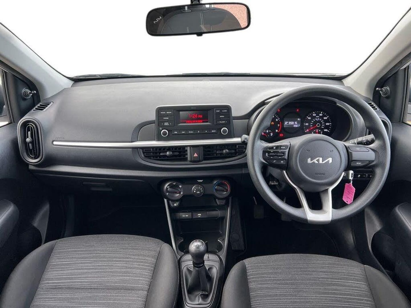 3.8" monochrome audio display with RDS and DAB, Emergency call service, Emergency stop signalling system, External temperature gauge, Motor driven power steering, Tachometer, Tailgate, Trip computer, 2 speakers, Bluetooth with music streaming, Steering wheel mounted controls, USB ports for connection of a media device, Automatic headlight control system, Black grille with silver surround, Body colour bumpers, Day/night rear view mirror, Daytime running lights, Front electric windows with drivers auto up and down function, Headlamp levelling, Heated rear window, High mount brake light, Manually adjustable door mirrors, MFR - Multi Focus Reflector halogen headlights with black bezel, Rain sensor, Rear fog lights, Rear side wing doors, Rear wash/wipe, Speed variable front wipers, Tinted glass, Visible VIN plate, Welcome and follow-me home light functionality, 1 x rear coat hook, 12V power point front, 2 seat bench in 2nd row, 3 x passenger assist grips, 60/40 split/folding 2nd row of seats, All round height adjustable headrests, Black interior door handles, Cloth upholstery, Cupholders in centre console, Driver and front passenger sunvisor with vanity mirror, Front cabin lights, Glovebox, ISOFIX Child seat top tethers and anchor fixings, Luggage area light, Luggage area parcel shelf, Single front passenger seat, Slide/reclining front seats, Tilt adjustable steering wheel, Advanced Driver Assistance Pack - Picanto, 2 x 3-point rear seatbelts, ABS/EBD, Automatic unlocking of doors in case of impact, Dual front airbags, ESC + BAS + VSM + HAC, Front passenger airbag cut-off switch, Front seatbelt pretensioners + load limiters, Hill hold control, Knee airbags, Rear child proof door locks, Seatbelt warning, Side impact protection, Torque vectoring brake based and straight line stability (SLS), Traction control, Twin curtain airbags, Twin front side airbags, Tyre pressure monitoring system, Anti theft alarm, Engine immobiliser, Folding key, Remote central door locking, 14" steel wheels with cover, Tyre mobility kit