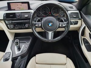 BMW Online services, BMW remote services, BMW Teleservices, Brake pad wear indicator warning light, Check control system, Door/boot open warning, Front/rear Parking distance control, iDrive controller and display with 6.5" monitor, Lights on warning, Oil temperature gauge, On board computer, Outside temperature display, Real time traffic information, Run flat indicator, Service interval indicator, Stop/start button, Drive Performance Control, Electronic differential lock, Sports function on gearbox with steering wheel mounted gearshift paddles, Bluetooth audio streaming, BMW professional radio/CD/MP3, DAB Digital radio, 2 speed adjustable intermittent wipers with wash/wipe function, Auto dimming rear view mirror, Body colour bumpers, Body colour door handles, Body colour door mirrors, Body colour roof mouldings, Chrome kidney grille with black vertical slats, Door sill finishers, Dual chrome exhaust, Electric adjustable heated door mirrors, Electric front windows/one touch facility, Follow me home headlights, Heat insulating tinted glass, Heated windscreen washer jets, High gloss shadow line, LED daytime running lights, LED front fog lights, M aerodynamic bodystyling, Rain sensor including auto headlights activation, Welcome lighting, Windscreen with grey shadeband, 12V sockets in front centre console and passenger footwell, 3 spoke leather M sport multifunction sports steering wheel, 4 grab handles, Anthracite headlining, Anthracite Velour floor mats, Dual zone climate control, Folding front centre armrest with storage compartment, Folding storage compartment with glasses holder + coin tray, Front cupholders x 2, Front door storage with bottle holder, Front head restraints, Front sports seats with electric side bolster adjustment, Front/rear armrests within door panels, Glovebox with lid, Heated front seats, Integrated rear head restraints, ISOFIX child seat preparation+airbag deactivation, Lashing eyelets in boot, Leather gearknob, Leather handbrake grip, Reach + rake adjustable steering column, Rear centre armrest with 2 cupholders, Storage compartment in rear centre console, Toolkit located in luggage compartment, Extended lights package - 4 Series, Media pack - Professional - 4 Series, ABS/EBD, Automatic Stability Control (ASC), BMW emergency call, Brake energy regeneration, Cornering brake control (CBC), Crash Sensor - activates hazard/interior lighting + unlocks doors, Driver seatbelt warning indicator, Driver/Front Passenger airbags, DSC+, Dynamic brake control, Dynamic Traction Control - DTC, Front passenger airbag deactivation, Front seatbelt force limiters, Front seatbelt pretensioner, Front side airbags, Hill start assist, ITS head airbags for front/rear, Side impact protection, Tyre pressure monitor, Warning triangle and first aid kit, Central locking including fuel filler and boot, Drive away door locking, Electronic immobiliser, Remote control Thatcham category 1 alarm, Run flat tyres