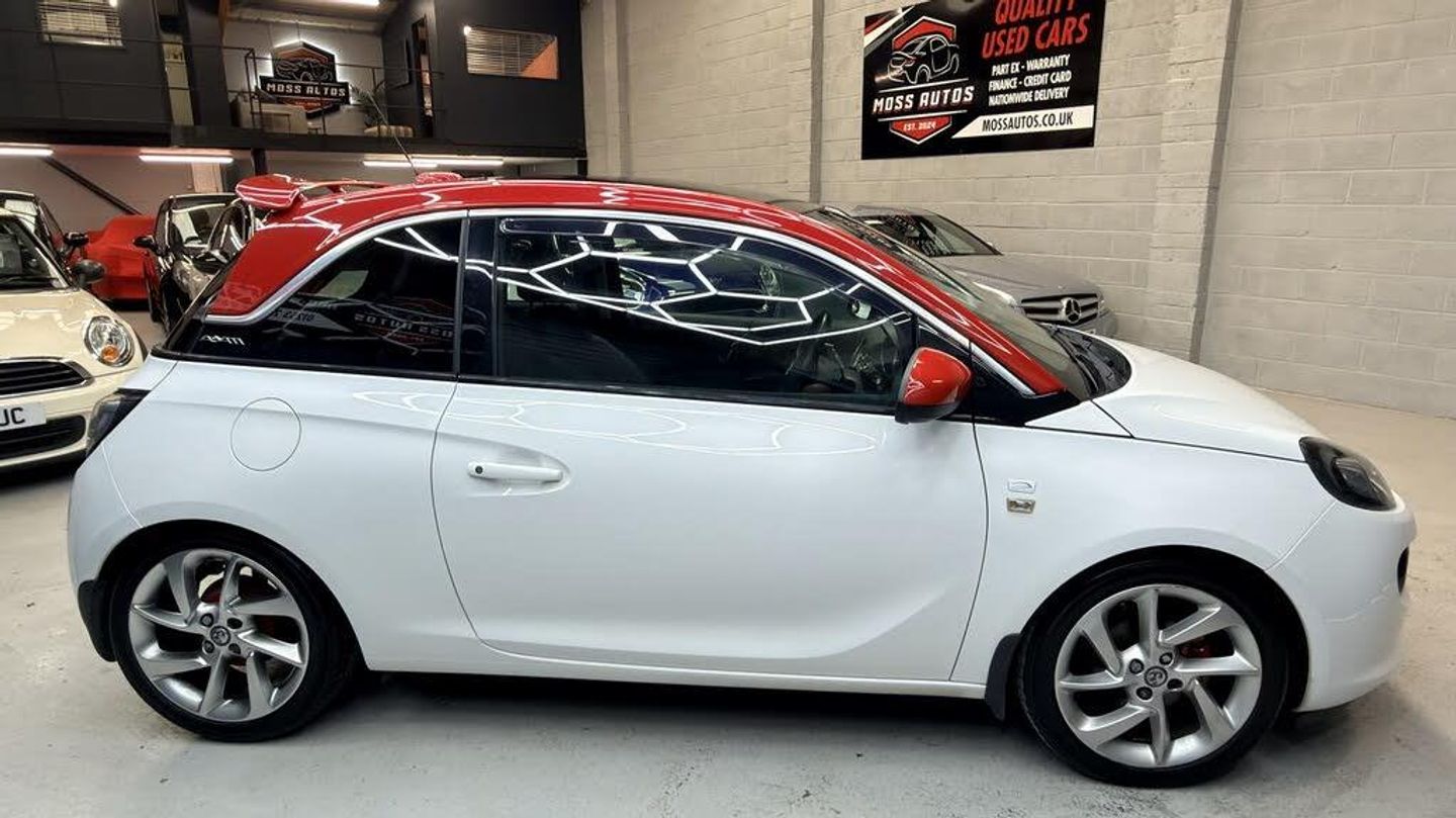 Vauxhall Adam 1.2 Jam White with Red Roof | Pan Roof | 4,395, Registration: SM65 DYF, Mileage: 96,000 miles, Transmission: Manual, Fuel Type: Petrol, Engine Size: 1.2 L, Doors: 3, Owners: 2 Previous, Condition: Fantastic Throughout, Colour: White with Contrasting Red Roof & Mirrors, Price: 4,395, , Vehicle Overview, Moss Autos of Poulton-le-Fylde proudly presents this eye-catching Vauxhall Adam 1.2 Jam, finished in gloss white with a contrasting red roof and mirrors, complete with a glass panoramic roof a brilliant combination of fun styling and everyday practicality. With just 2 owners from new and 96,000 miles, this Adam is in fantastic condition inside and out. Its a real head-turner that drives superbly, making it an ideal first car or perfect economical runabout. , Specification & Features, 1.2 L Petrol Engine Economical & Cheap to Insure, 5-Speed Manual Gearbox, White Body with Red Roof & Mirrors, Glass Panoramic Roof with Sun Blind, Alloy Wheels, Air Conditioning, Bluetooth / USB / AUX Connectivity, DAB Digital Radio, Cruise Control & Speed Limiter, Multi-Function Steering Wheel, Electric Windows & Mirrors, Split-Folding Rear Seats, , Maintenance & Condition, Recently Serviced & Valeted, Fantastic Condition Throughout, Drives Beautifully Retail Ready to Go, Ideal First Car or City Commuter, , Finance Options, Affordable HP Finance Available, Low or Zero Deposit Options, Competitive Rates, Quick Approval Drive Away the Same Day, , Call 01253 228619, WhatsApp 07841 487807, www.mossautos.co.uk, Moss Autos Fuelled by Passion. Powered by Family. Trusted by You.