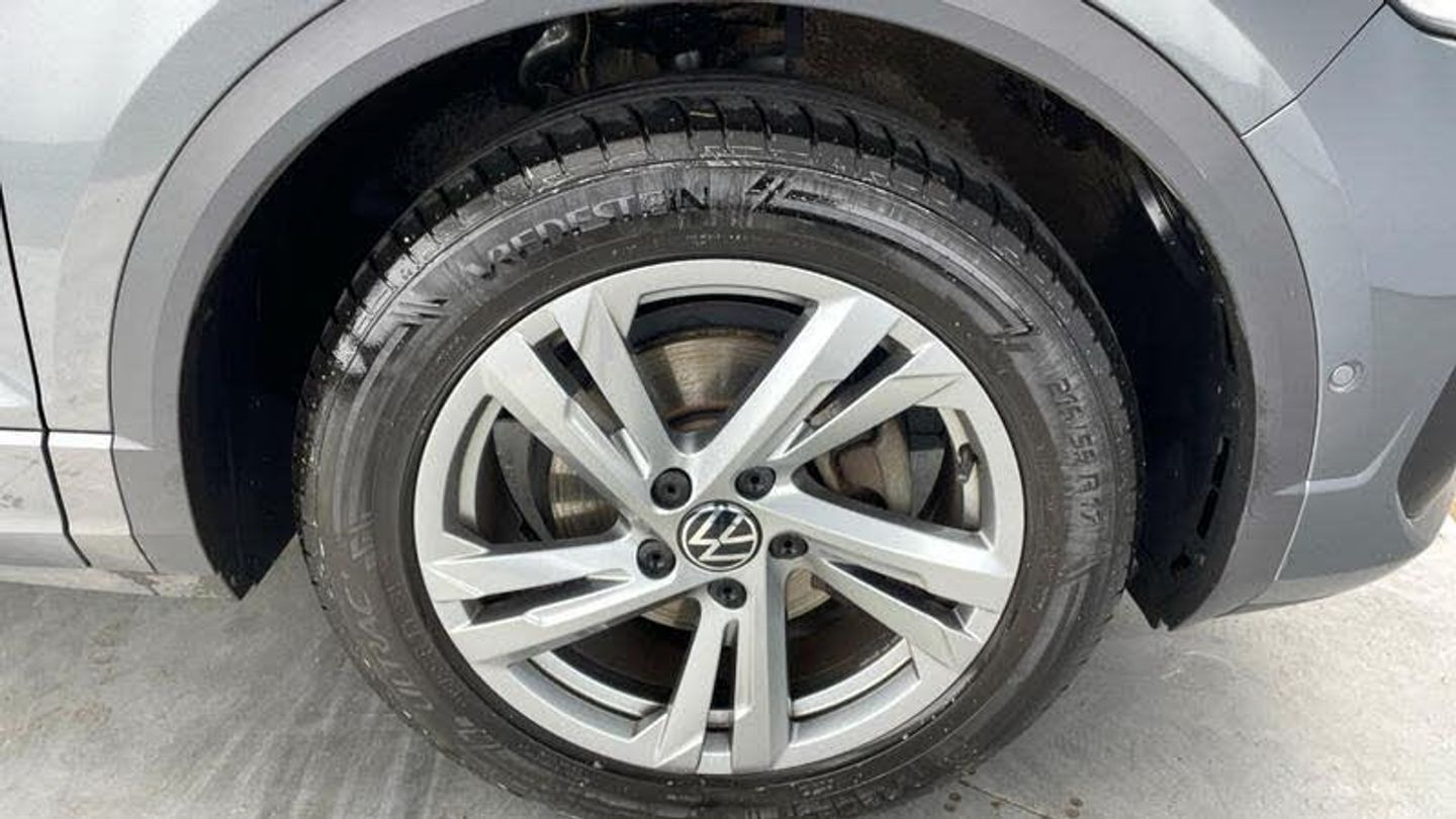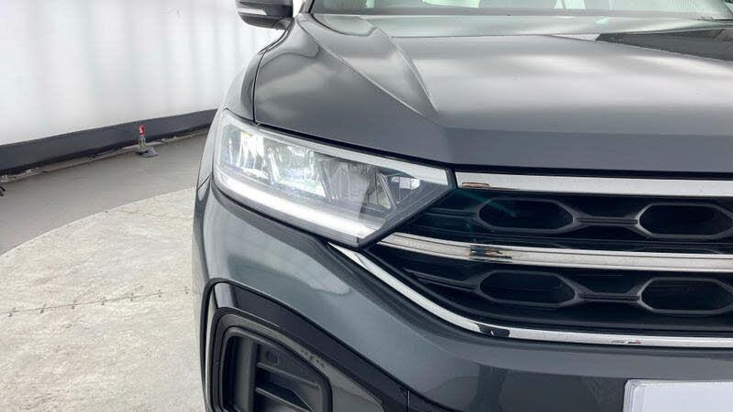 Metallic - Indium grey, Front windscreen wiper with intermittent wipe and 4 position delay, Heated rear window, Rear wash/wipe with intermittent wipe setting, Extended roof spoiler, External USB type C socket and charging sockets, R-Line design body coloured bumpers, Rear side wing doors, 3rd brake light, Automatic hazard lights activation under emergency braking, Automatic headlight control with LED separate daytime running lights with coming/leaving home function, LED Plus headlamps, LED rear number plate lights, LED tail lamp rear comination lamps, ABS, Electronic parking brake, Electronic Stability Control (ESC) inc EDL (Electronic Differential Lock) and ASR (Traction Control), Front assist with city emergency braking and pedestrian monitoring, Rear disc brakes, Volkswagen roadside assistance, Driver alert system with fatigue detection, Modified key software - reduce switch off time for key status change to Long no motion, Park assist including front and rear parking sensors, Auto dimming interior rear view mirror, Exterior mirrors aspherical on driver side, convex on front passenger side, Remote electrically foldable door mirrors, puddle lights and reverse activated passenger's door mirror, 3 point height adj front seatbelts + pretensioners, 3 point seatbelts in outer rear with ECE label, Child locks on rear doors, Driver and front passenger safety-optimised head restraints, Drivers seatbelt reminder, Front and rear passengers curtain airbag system including front side airbags, Front seat side impact airbags, Single tone horn, Front + rear carpet mats, Air care climatronic air conditoning system with active combination filter and 2-zone temperature control, 12V power socket in centre console, 4 load lashing points in luggage compartment, Black roof lining, Chrome plated radiator grille inserts, air vent surrounds and light switch surrounds, Drawer under drivers seat, Front cupholders x 2, Front scuff plates with R logo, Load-through provision with cup holder when folded down ('Unsplit rear seat bench, split folding backrest, with centre armrest), Storage compartment in left and right luggage area, Storage compartment in rear doors, Storage compartments in driver and front passenger doors, Variable boot floor, height adjustable and removable, Front reading light, Instrument lighting, white adjustable panel illumination, Interior light delay, Luggage compartment lighting, Sunvisors with illuminated vanity mirrors, Online services, Wireless app connect, Front and rear 6 speakers, Music playback - MP3, WMA and AAC files, Premium USB cable in choice of either Apple or Android smartphone compatibility, SD card slot, Simultaneous pairing of 2 compatible mobile devices, Title and cover art display, We Connect and We Connect Plus functionality, Tailgate/trunk lid release from outside, 10.25 Digital cockpit pro, Driver tips and journey analysis, Emergency call service, Service interval indicator, Think blue trainer driver tips and journey analysis, Warning sound and light for front seatbelts unfastened, Battery regeneration during braking, Start/stop function with battery regeneration, Driver assistance pack without proactive passenger protection - T-Roc, 3 seat bench in 2nd row, Single front passenger seat, Alarm with interior protection, An, [Audio and Communications]Bluetooth mobile phone interface, [Drivers Assistance]Tyre pressure loss indicator, [Exterior]Power windows with comfort operation and circuit breaker, Rear exhaust tailpipe, Rear fog light on one side and reversing lights on both sides, [Illumination]LED rear combination lamps, [Interior]Rain sensor, Door and side trim panel with leatherette insert, Front centre armrest, Leather gearshift handle, Stainless steel pedals, Front footwell illumination, Interior ambient lighting and surround lighting, Diversity antenna for FM reception, 3 rear head restraints, [Safety and Security]Hill start assist, Lane keeping system Lane Assist, Driver and front passenger airbag with