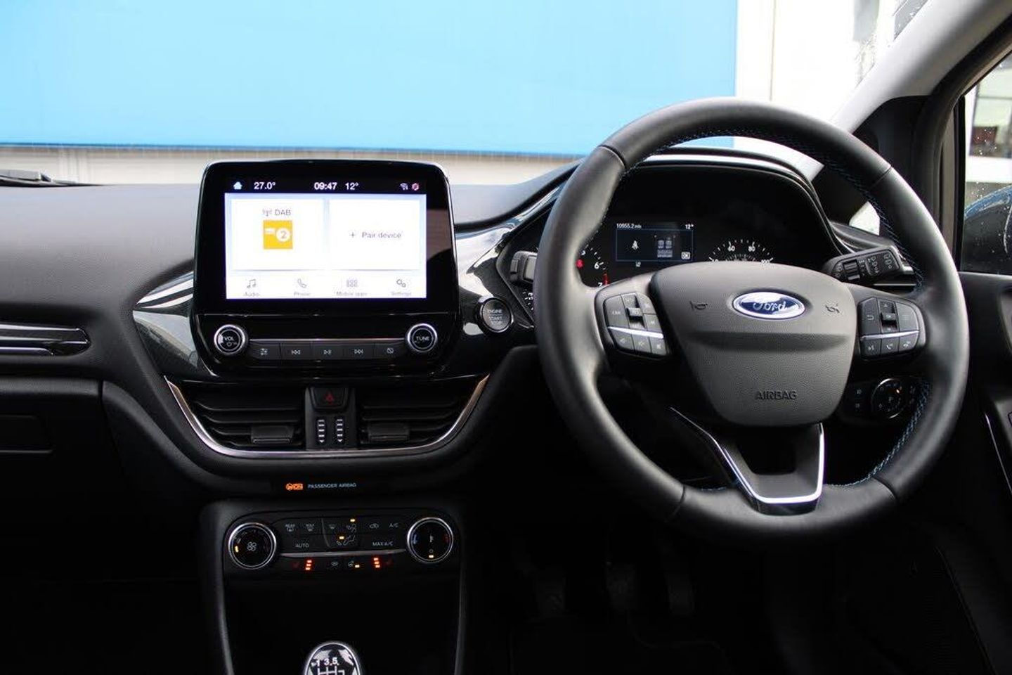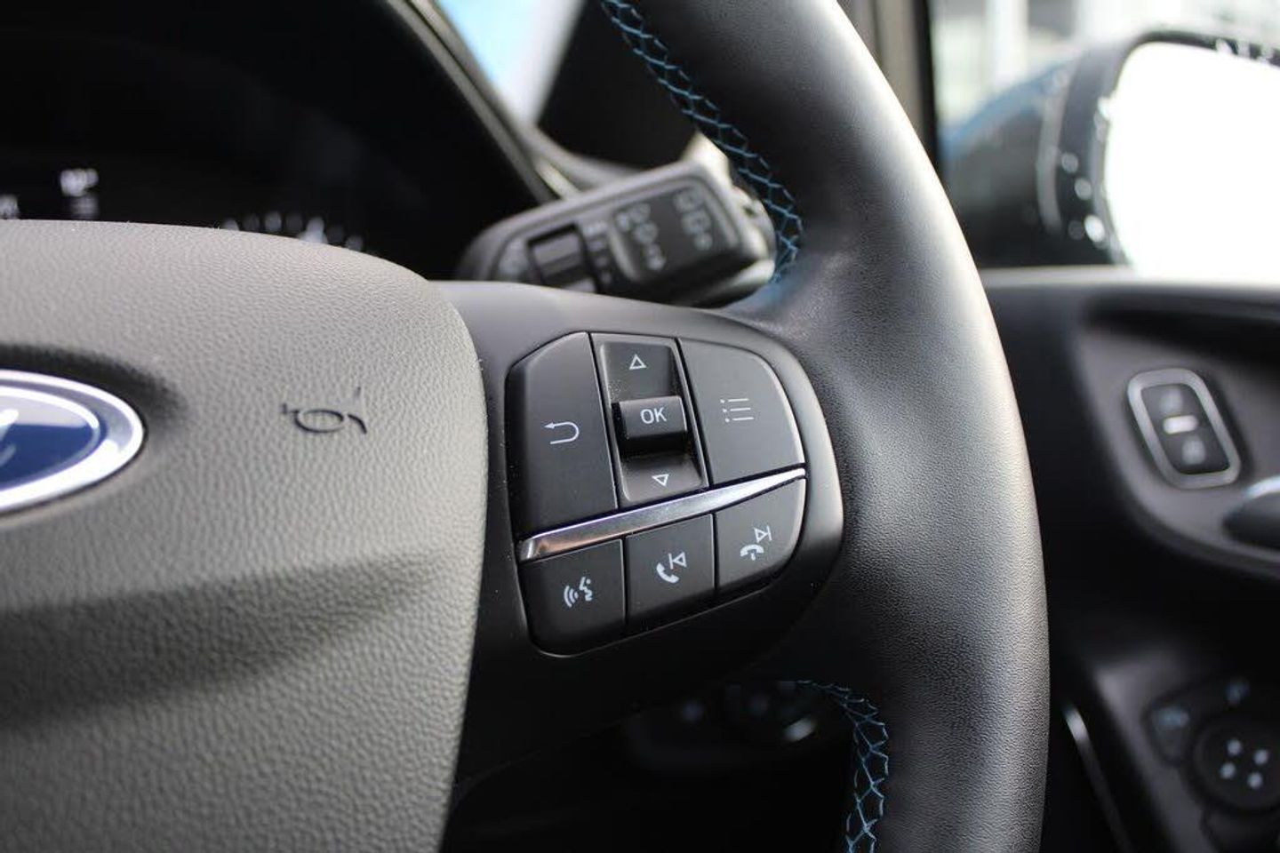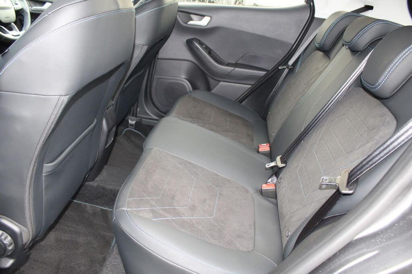 Driver alert system, Electric power steering, Ford easy fuel, Lane keep assist, Lane keeping aid, Rear parking distance sensors, Rear view camera, Selectable drive modes (Normal, Sport, Track), Trip computer, 3rd brake light, Auto high beam, Automatic headlights, Body colour bumpers, Body coloured electrically operated with side indicators, Electric front windows/one touch facility, Electric rear windows, LED rear lights, Quickclear heated windscreen, Rain sensing wipers and auto dimming rear view mirror, Rear privacy glass, Rear side wing doors, Rear wiper, Rugged bodystyling kit with active front wing badges, 3 rear headrests, 3 seat bench in 2nd row, 4 way manually adjustable passenger seat, Adjustable head restraints, Centre console with opening armrest, 2x cupholders, 12v and USB, EATC - Electronic Auto Temperature control, Leather gear knob, Manual 4-way driver seat adjust, Premium floor mats, Sensico partial premium leather upholstery with blue stitching, Sensico wrapped steering wheel, Single front passenger seat, Ford keyfree system with Keyless entry and keyless start, MyKey system, Remote central locking, Thatcham alarm with power door dead locks