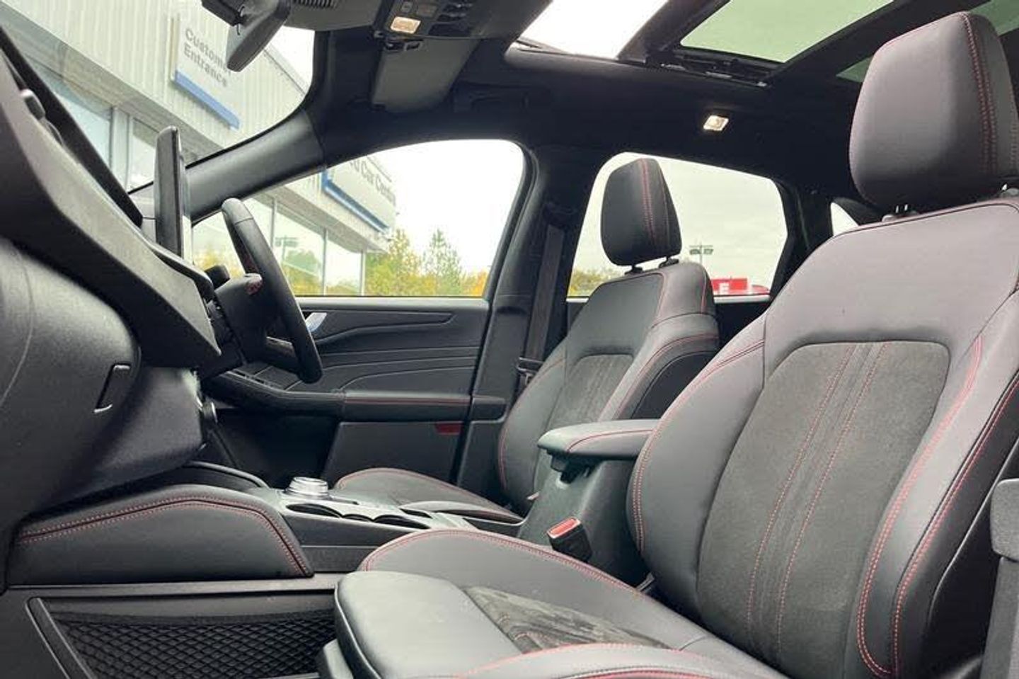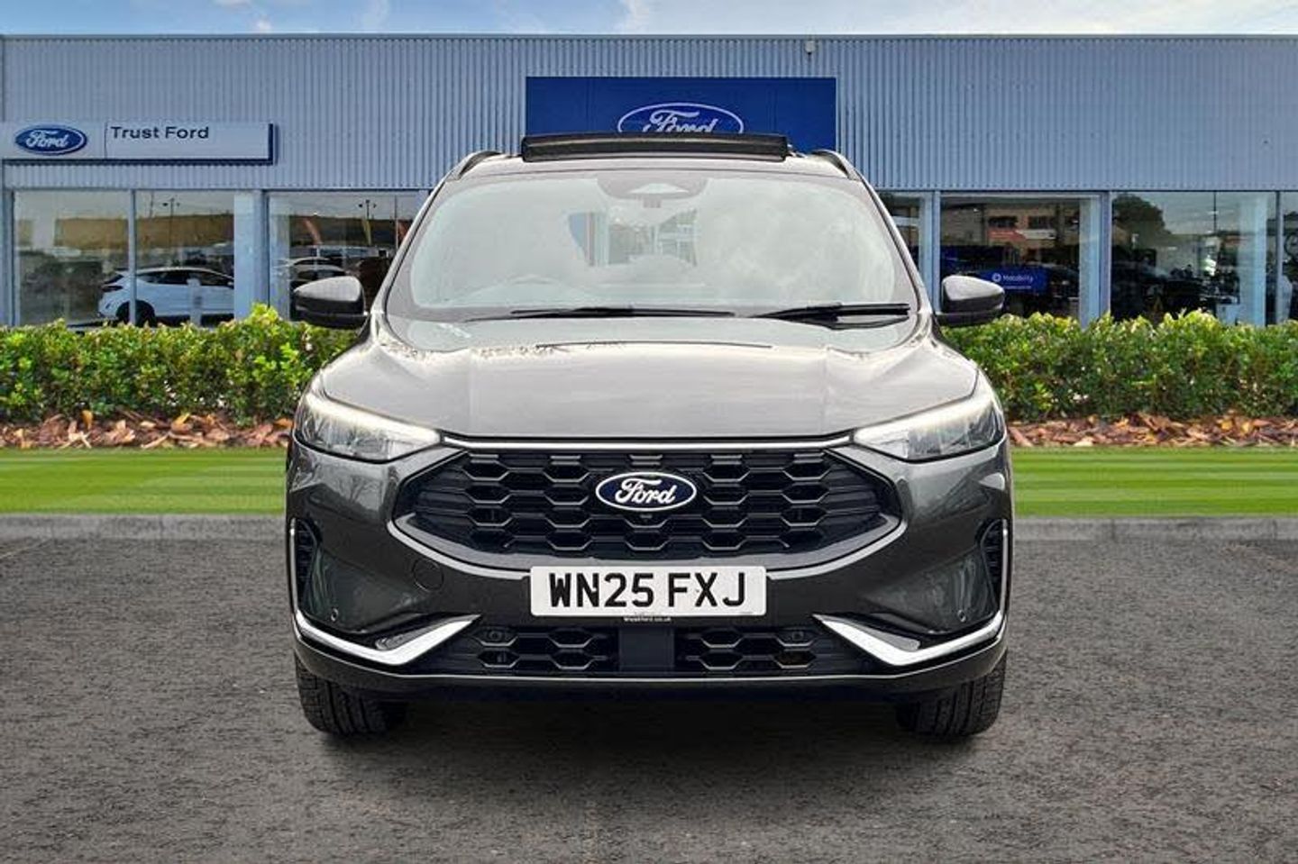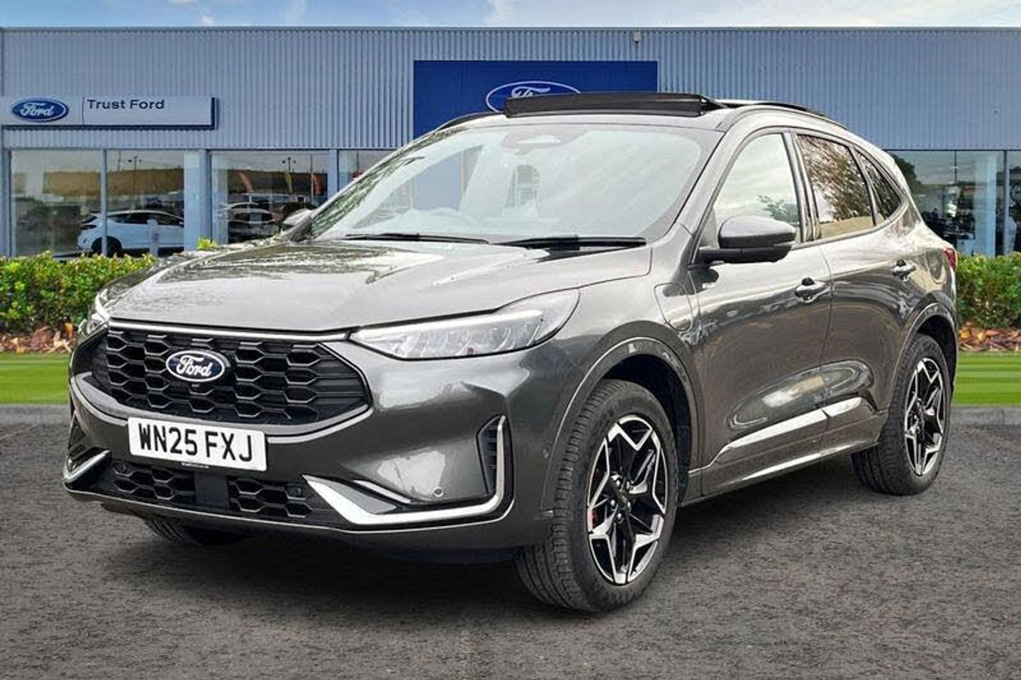 12-Way Ergonomic Power Adjust Driver's and Passenger's Seat, 12V Power Point in Floor Console, 12v Power Point in Cargo Area, 12v Socket - Voltage Regulator, 19in Alloy Wheels - ST-Line- Ebony Black - Machined Finish, 2nd Row Sliding Seats, 360 Degree Camera, ABS - Anti-lock Braking System, Acoustic Vehicle Alert System - AVAS, Adaptive Cruise Control, Air Conditioning - Electronic Automatic Temperature Control - EATC, Airbag - Driver and Front Passenger Side, Airbag - Front Passenger Deactivation Switch, Airbags - Driver and Front Passenger, Airbags - Front and Rear Side Curtain, Aluminium - Finish Front Scuff Plates with ST-Line Script, Aluminium Foot Pedals - ST-Line Design, Ambient Lighting, Auto Dimming Rear View Mirror, Auto Wipers, Automatic Door Relocking, Black Roof Rails, Centre Console with Electronic Parking Brake, Child Locks - Manual on Rear Doors, Cross Traffic Alert, Digital Colour 12.3in Instrument Cluster, Driver Assistance Pack, Driver and Passengers Sun Visor with Illumination, Dual Exhaust Tailpipes with Unique Brushed Stainless Steel Finish, EPAS - Electric Power Assisted Steering, Electric Parking Brake with Auto Hold, Electrical Charging Point in Second Row, Engine Immobiliser - SecuriLock, Enhanced Electronic Stability Control - ESC with Traction Control - Emergency Brake Assist - EBA - Hill Start Assist - HSA and Trailer Sway Control, Exterior Door Handles - Body Coloured, Ford Easy Fuel System, Ford Keyfree System - Keyless Entry with Ford Power Starter Button, Ford SYNC 4 Navigation, Front Seats - 2-Way Manual Height Adjust Passive Head Restraints, Front Seats - Drivers and Passengers Seatback Map Pockets, Front Seats - Sports Style V-shape with High Bolster, Front Windows - Laminated Glass, Front and Rear Bumper - Sporty Body Colour with Rear Ebony High-Gloss Insert, Front and Rear Floor Mats with Red Stitching, Front and Rear Parking Sensors, Full LED Headlamps, Gearshift - Automatic - Electronic Rotary Gearshift Dial, Glovebox Lights, Handsfree Power Tailgate, Headlights - Automatic Follow Me Home Lighting, Headlights - Automatic High Beam Assist, Headlights - Levelling System - Manual, Headlights - Unique Bending, Headliner - Sports Dark, Heated and Power Folding Door Mirrors - Puddle Lights - Memory Function - Camera, High-Mounted Brake Light, Kuga Badge, LED Daytime Running Lights, LED Fog Lights - Front, Lane Keeping Aid with Lane Departure Warning, Large Rear Spoiler, Load Compartment - Lights, Load Compartment - Tie Down Hooks, Load Compartment Carpet, Locking Wheel Nuts, Lower Bodyside Moulding - Body Colour, Lower Door Frame Beltline - Black, Mini Overhead Console with Sunglasses Holder Bin, MyKey, Pop-Out Door Edge Protectors, Power Door Deadlocks - Double Locking, Power Door Locks, Power Opening Panoramic Roof, Pre-Collision Assist with Autonomous Emergency Braking, Quickclear Heated Windscreen, Rear Duct on B-Pillar, Rear Lights - LED, Rear Privacy Glass, Rear Seat - 60-40 Split Folding Seats, Rear Seat Centre Head Restraint, Rear Seats - 2-Way Head Restraint Up-Down, Rear Seats - Folding Centre Armrest with Integrated Cup Holder, Rear Seats - Sliding Seat Adjust Tracks - Fore-Aft, Red Brake Calipers, Remote Tailgate Release, Removable Package Tray, Rocker Panel Mouldings - Body Colour - ST-Line Design, ST-Line Badge on Left and Right Side Wings, ST-Line Bodystyling Kit, ST-Line Front and Rear Bumper Moulding - Body Colour, Seat Belt - Drivers - Front Passenger and Rear Seat Belt Reminder Alert, Seat Belts - Front 3-Point Seatbelts with Load Limiter, Seat Belts - Front Height Adjustable, Seat Belts - Rear Retractable Rear Belt - 3-Point All Positions, Seats - ISOFIX Mounting Provision for Child Seats - Outer Seats Only, Selectable Drive Modes, Single Rear Fog Light, Standard Home Charging Cable - 3-Pin Domestic Socket 230V, Steering Column - Locking Electric, Steering Column - Rake and Reach Adjustment, Steering Wheel - ST-Line Sports-Style Perforated Sensico-Trimmed with Red Stitching