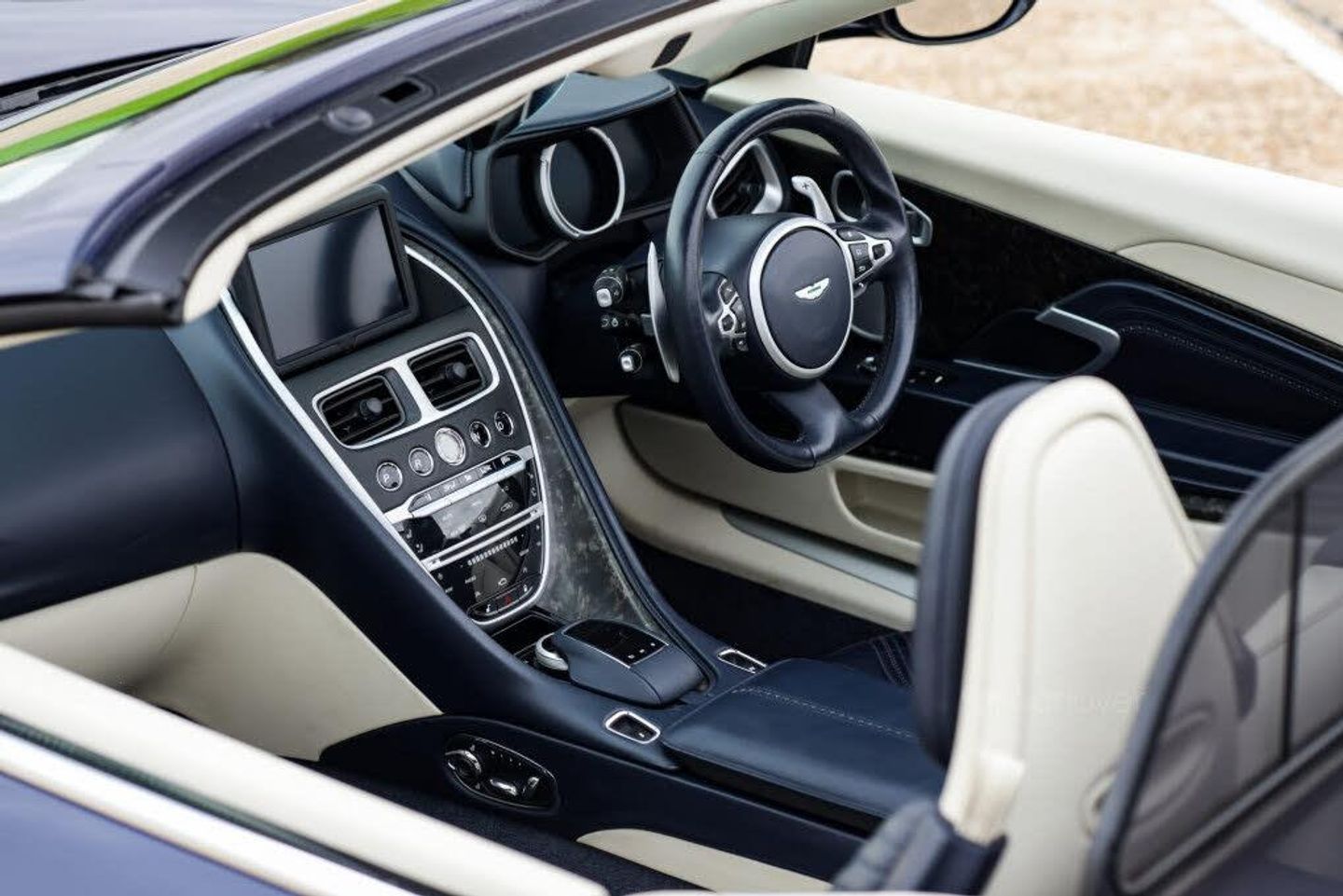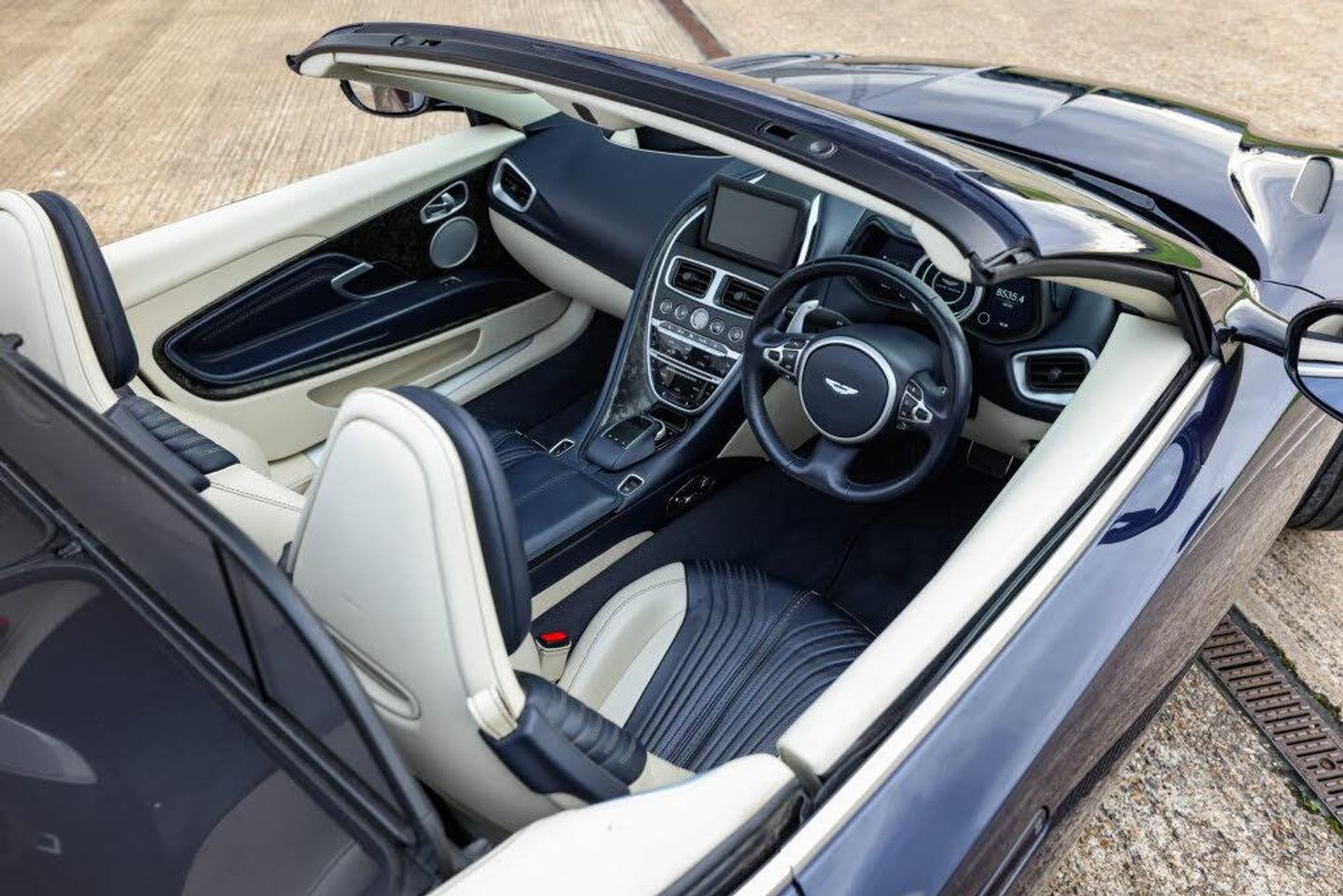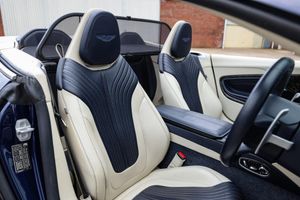 Finished in exquisite Mariana Blue metallic, this open-top grand tourer epitomises timeless Aston Martin elegance. Its two-tone Dark Night and Ivory leather interior perfectly complements the exterior, enveloping occupants in an atmosphere of refined luxury and understated exclusivity.